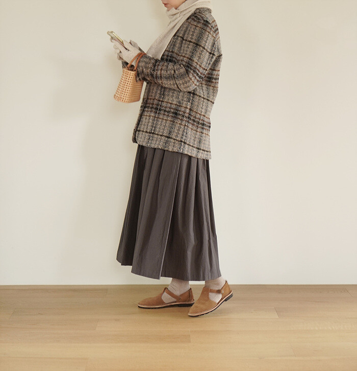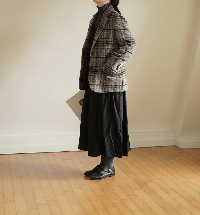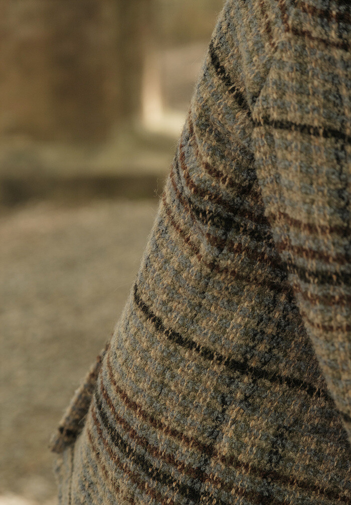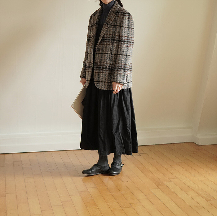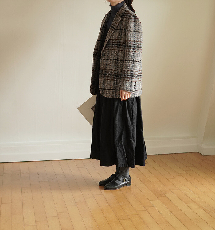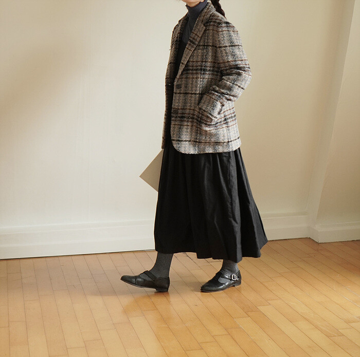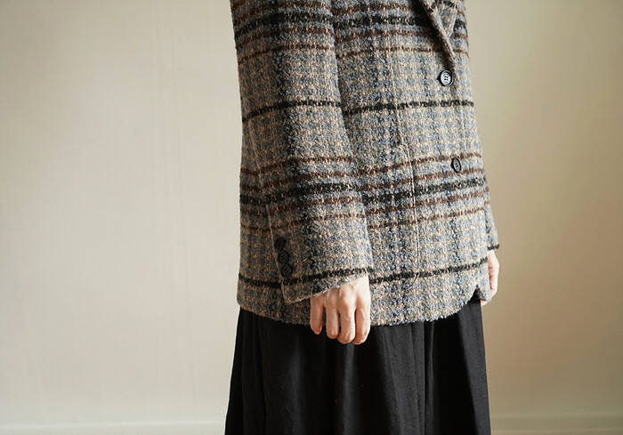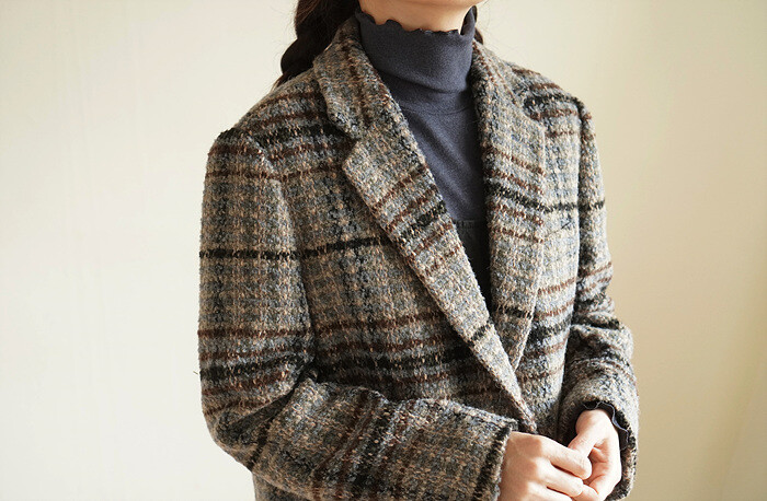 넓은 체크 간격을섬세하게 재단해 매칭하였습니다.
