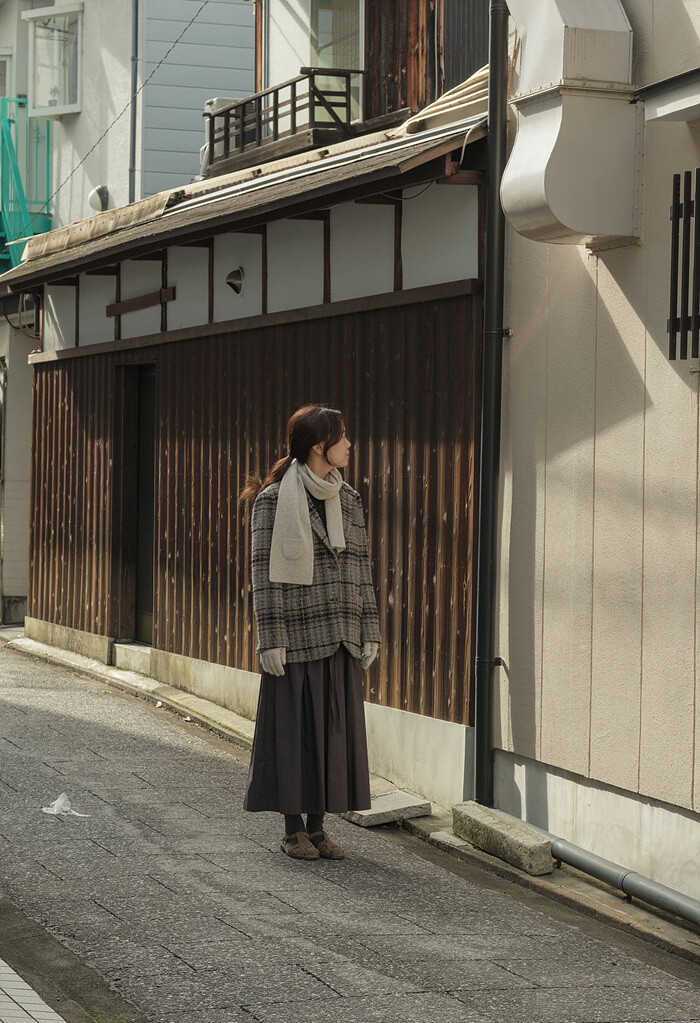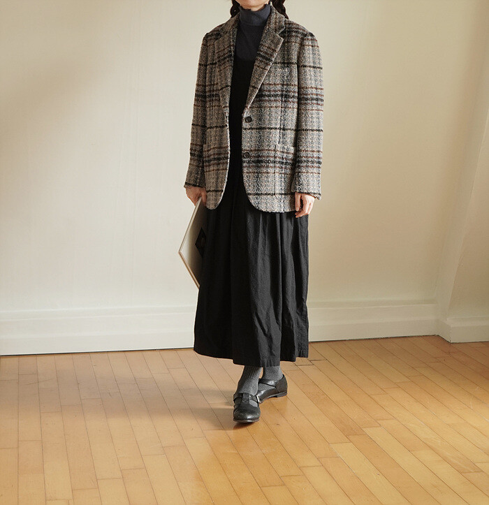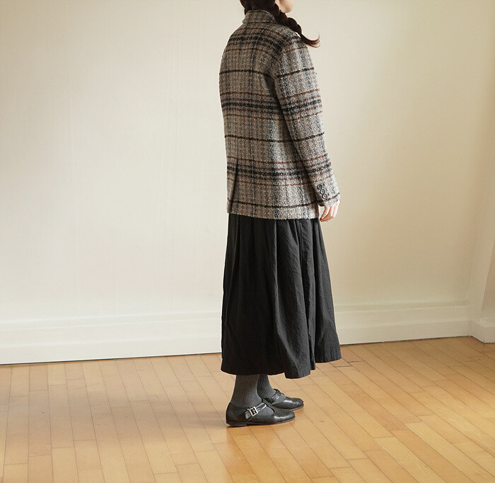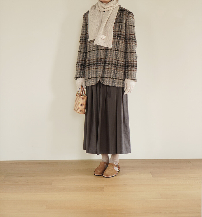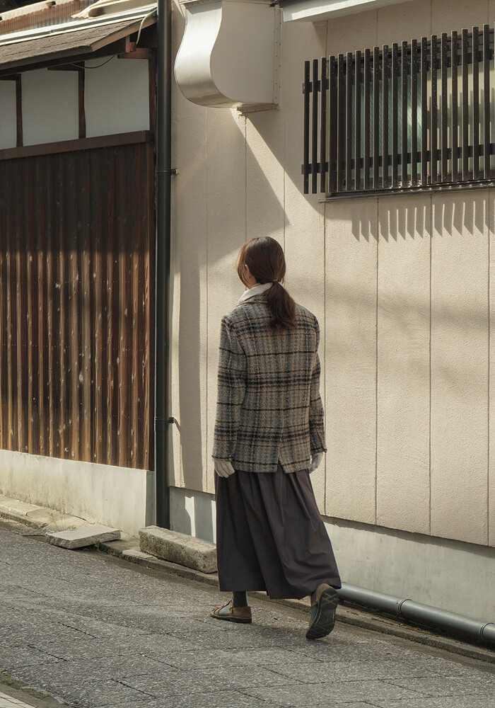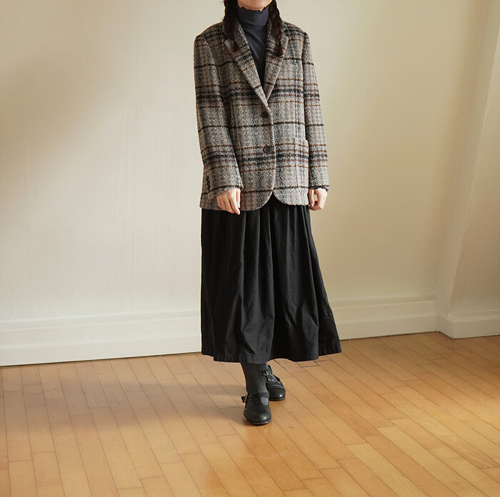 넓은 체크 간격을섬세하게 재단해 매칭하였습니다.