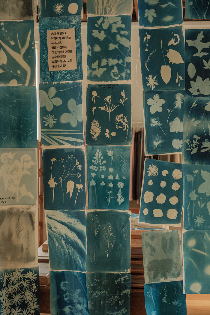 식물들을 cyanotype , 청사진 프린팅 기법을 통해