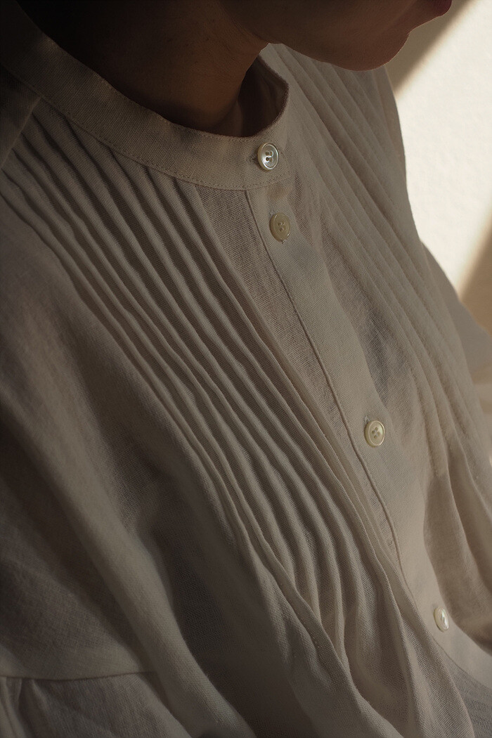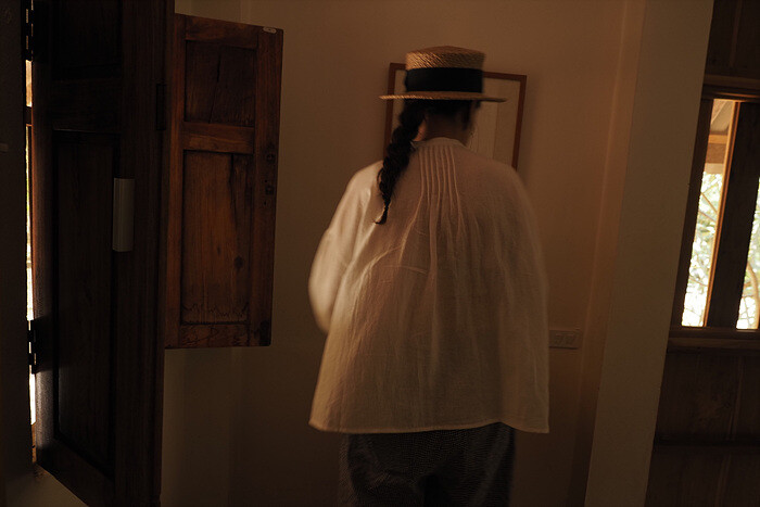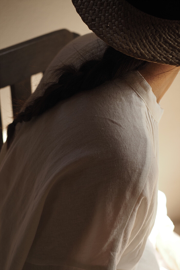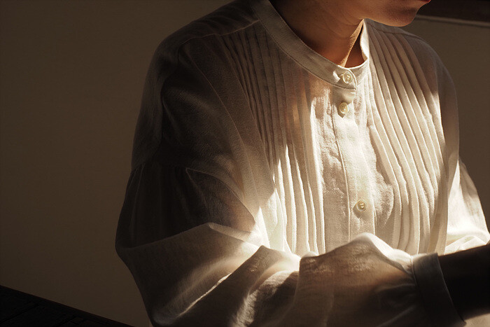 소재의 느슨한 짜임 위로 햇살이 비춥니다.