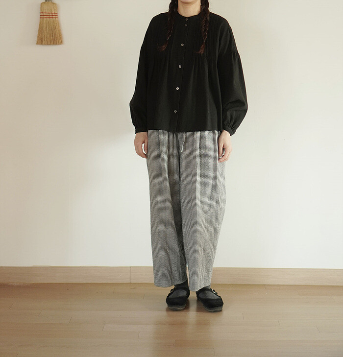 박시 팬츠 블랙 컬러와 함께 착용했습니다.