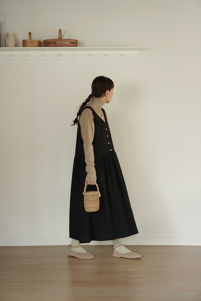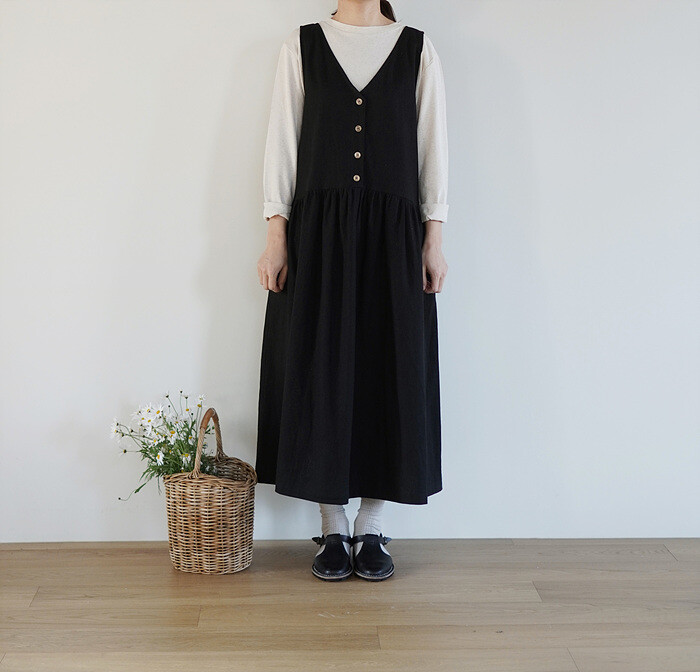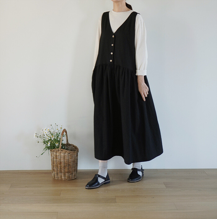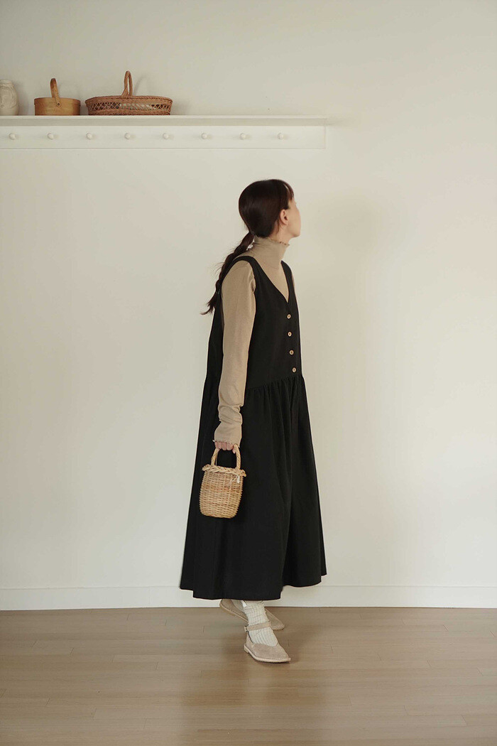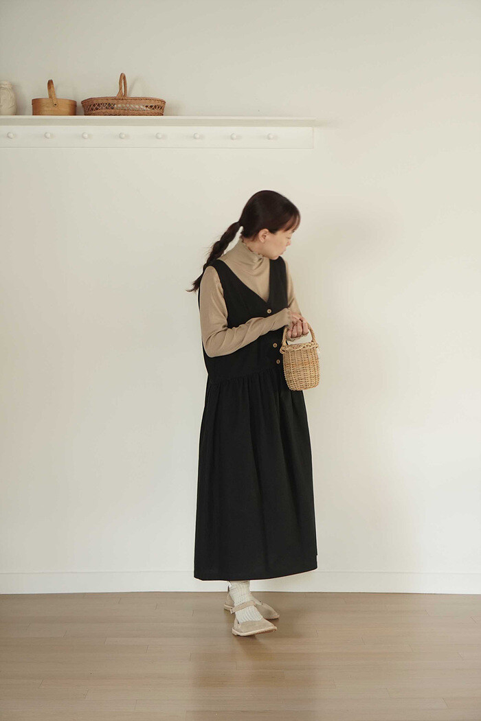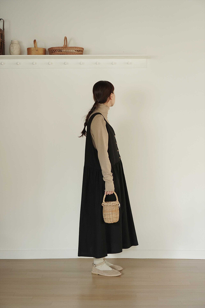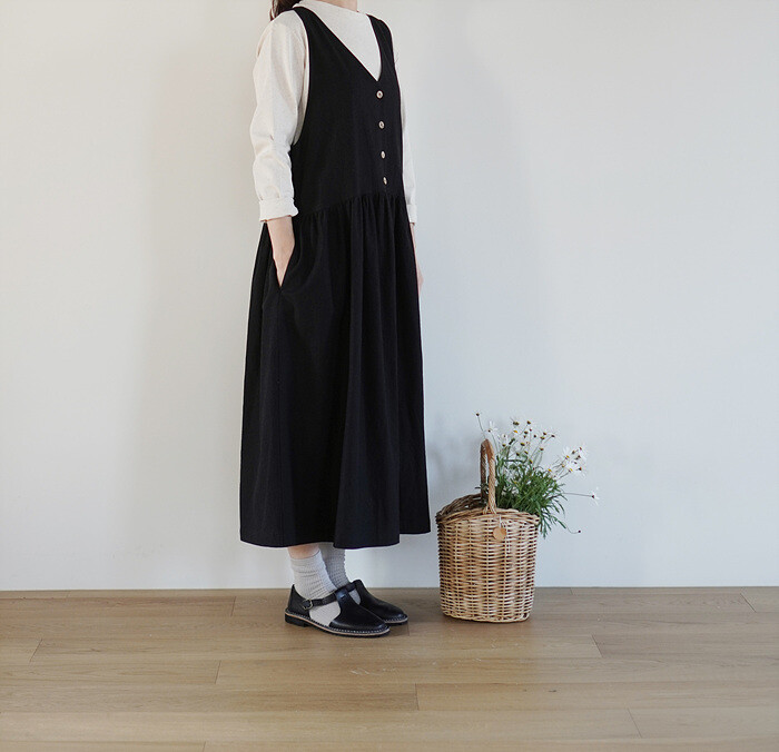 레이어드 원피스의 단추 여밈 디자인 입니다.