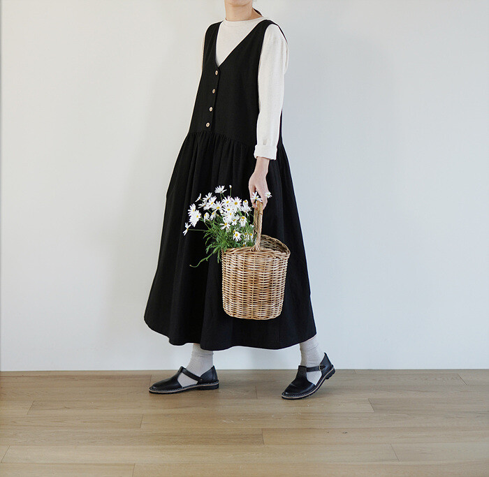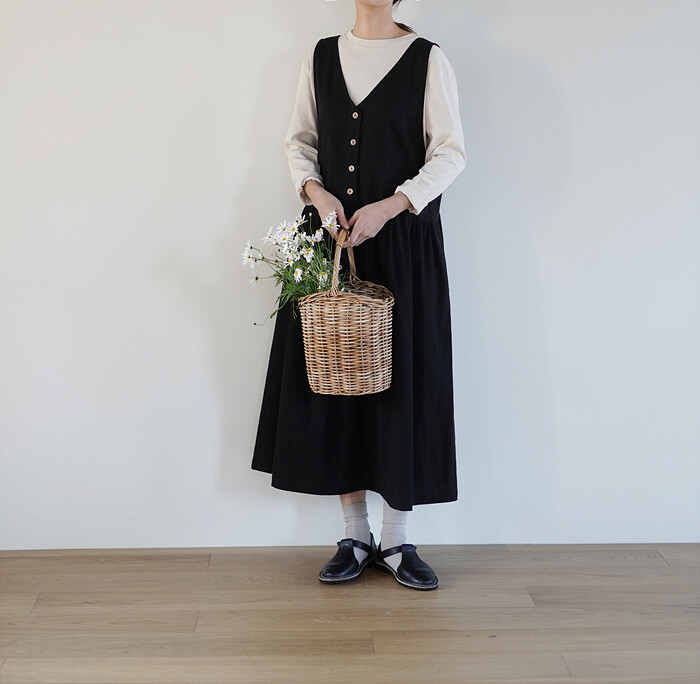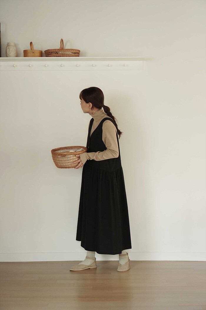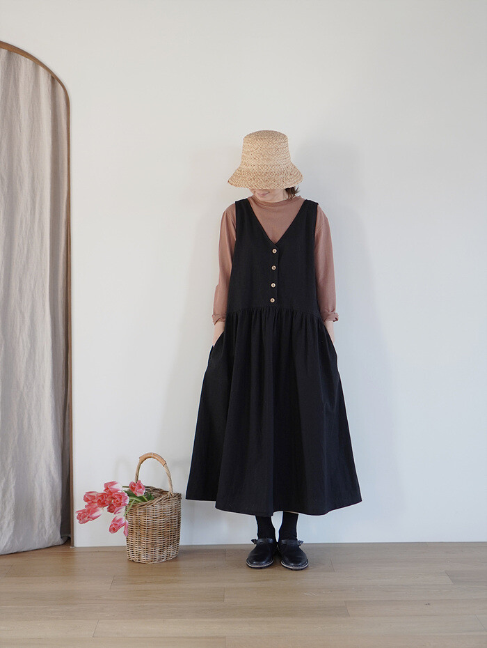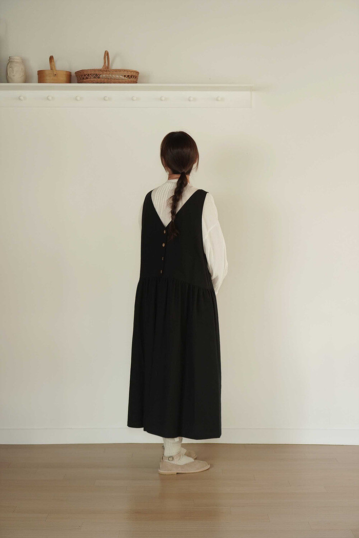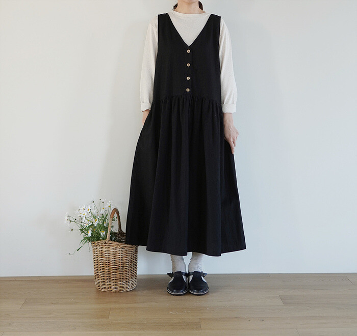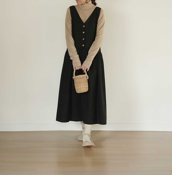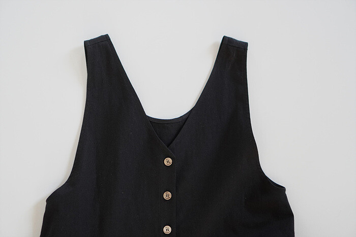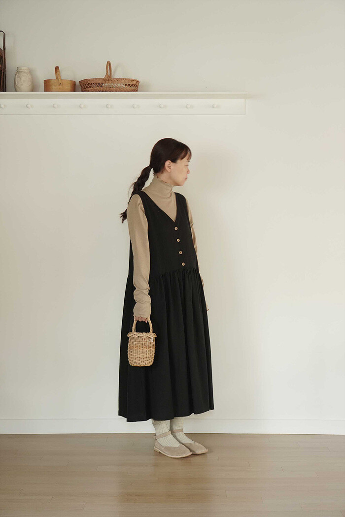 레이어드 원피스의 단추 여밈 디자인 입니다.