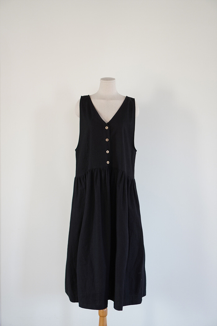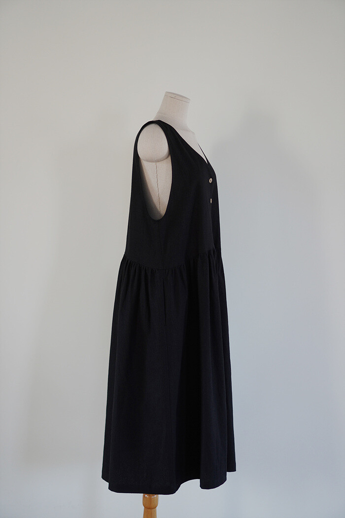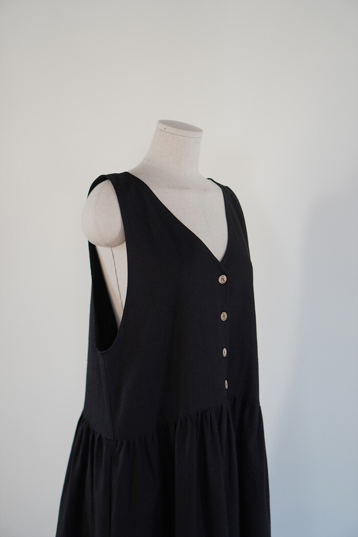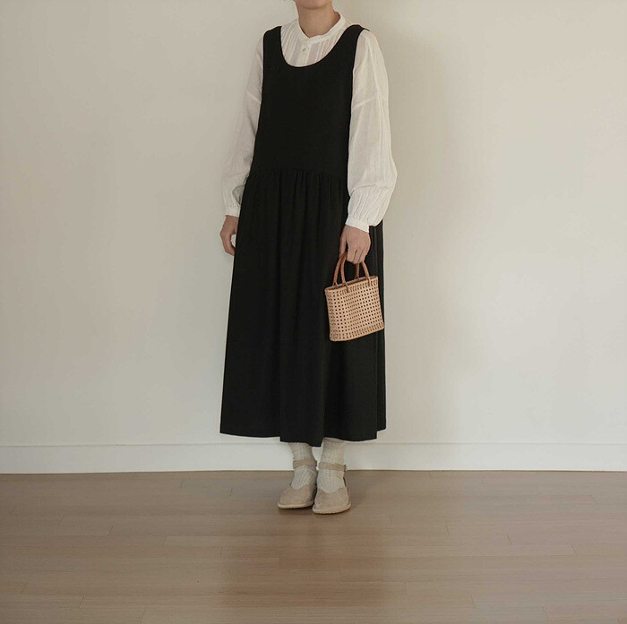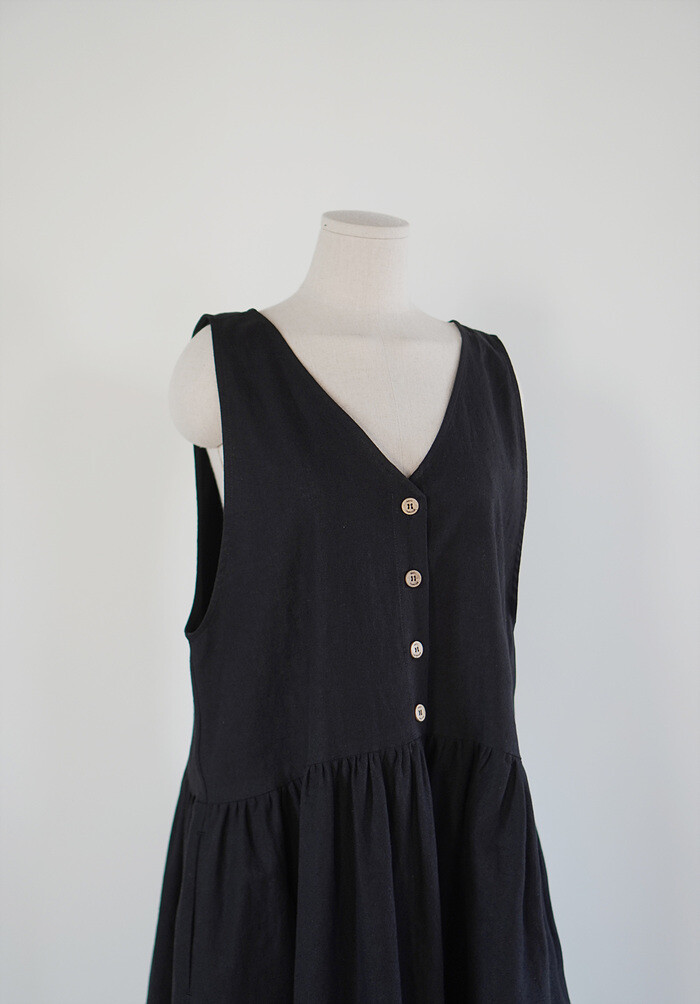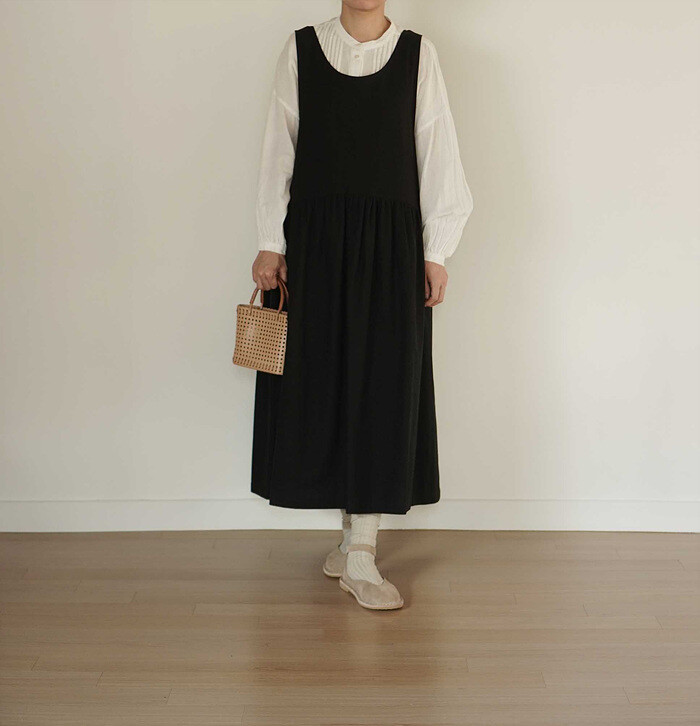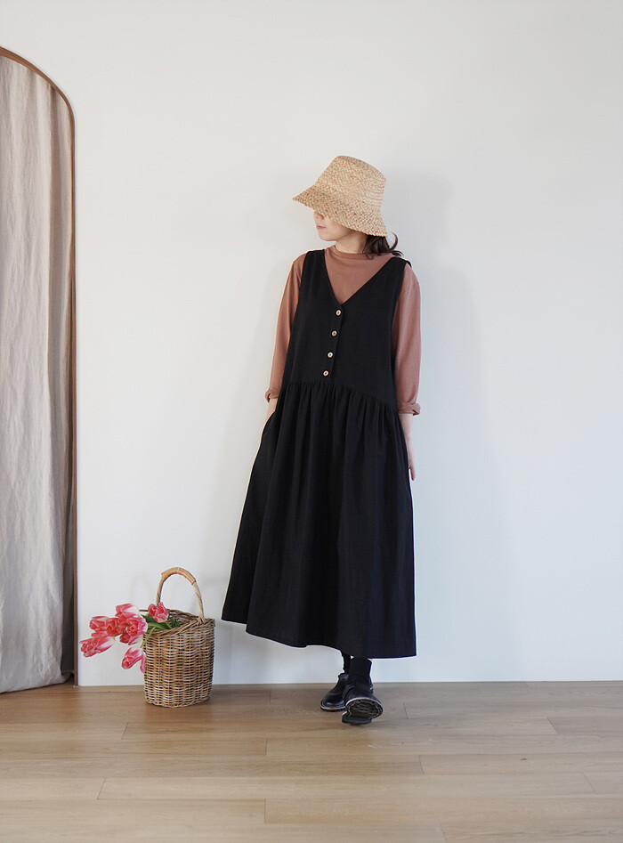 레이어드 원피스의 단추 여밈 디자인 입니다.
