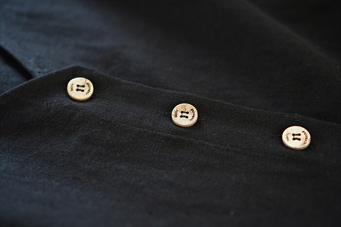 v넥의 여밈은 코코넛 단추로 마감되었습니다
