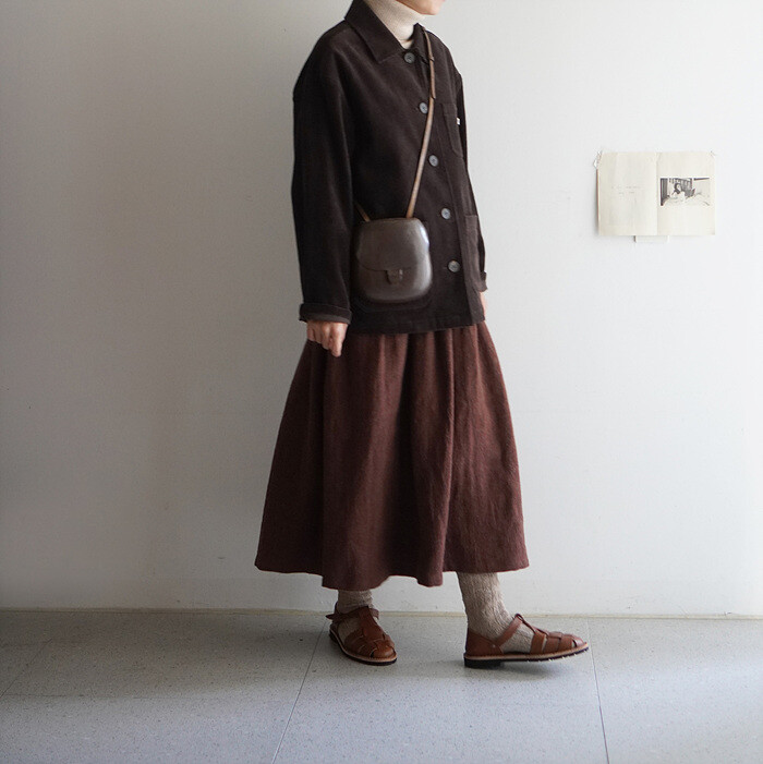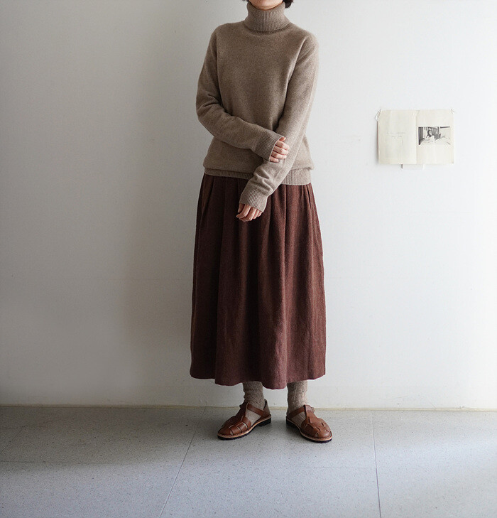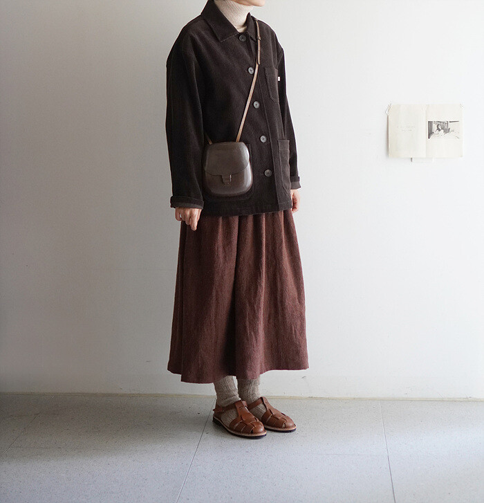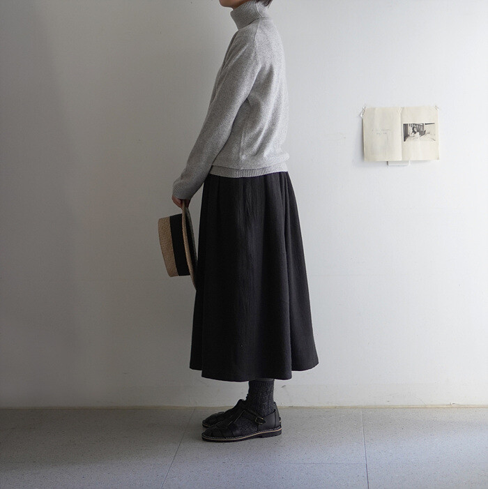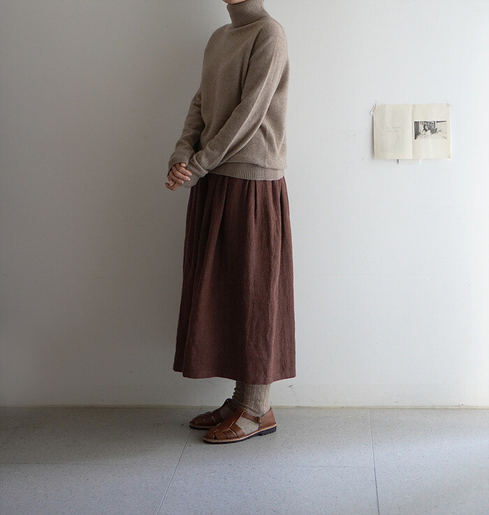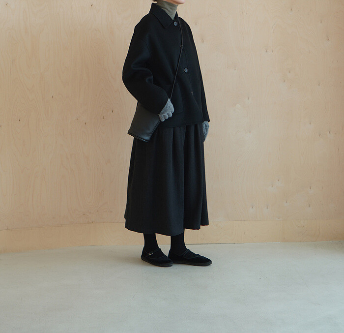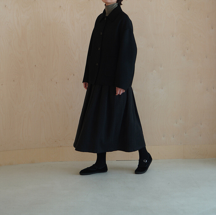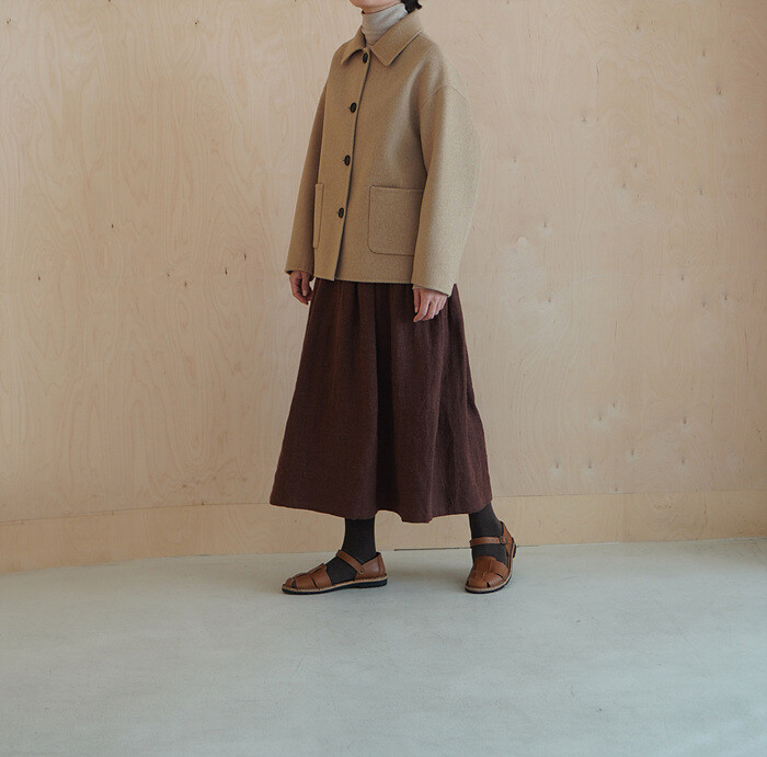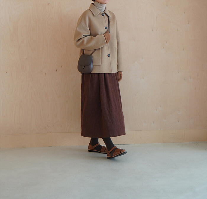 두께감이 있는 울 / 린넨 혼방 소재입니다