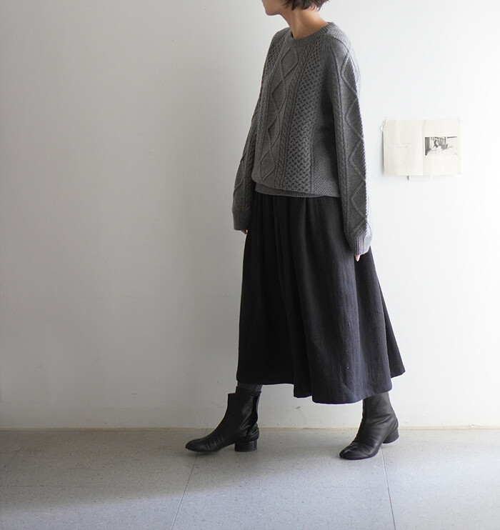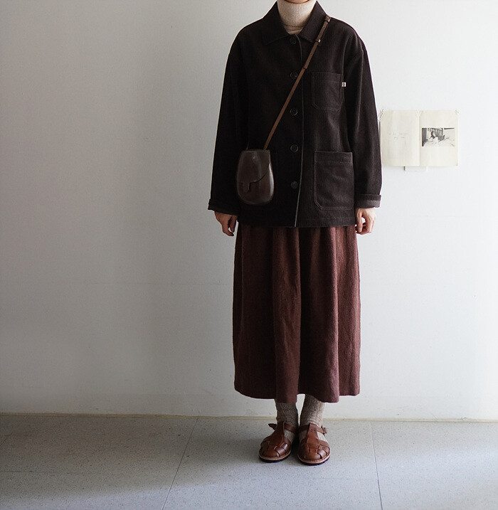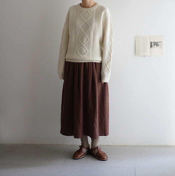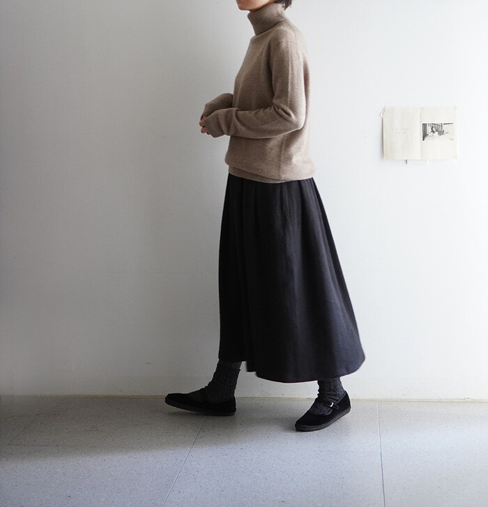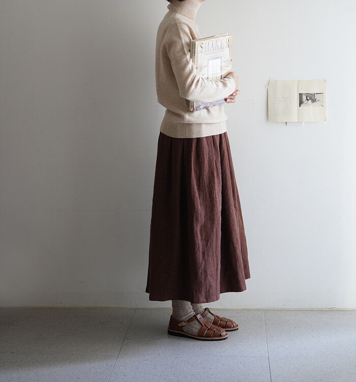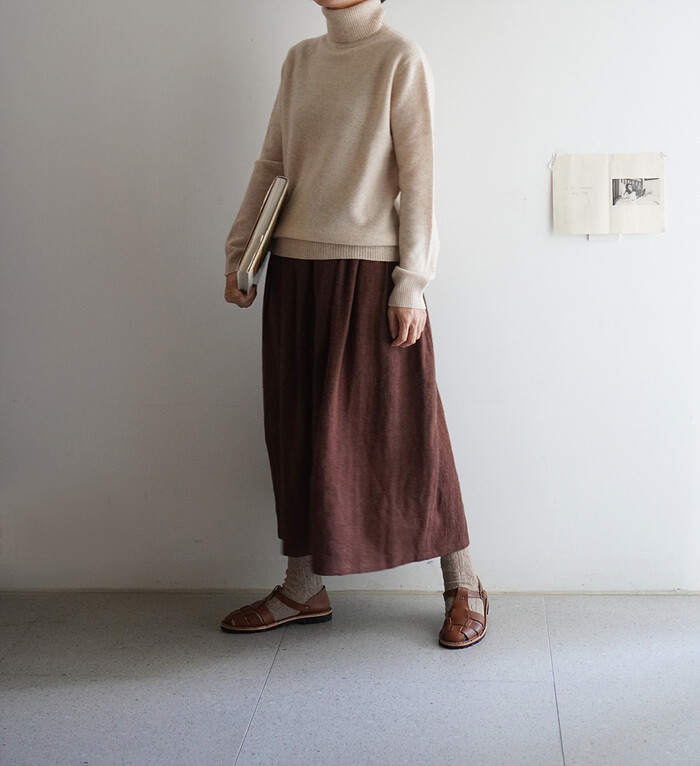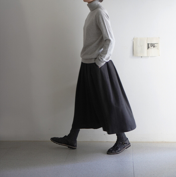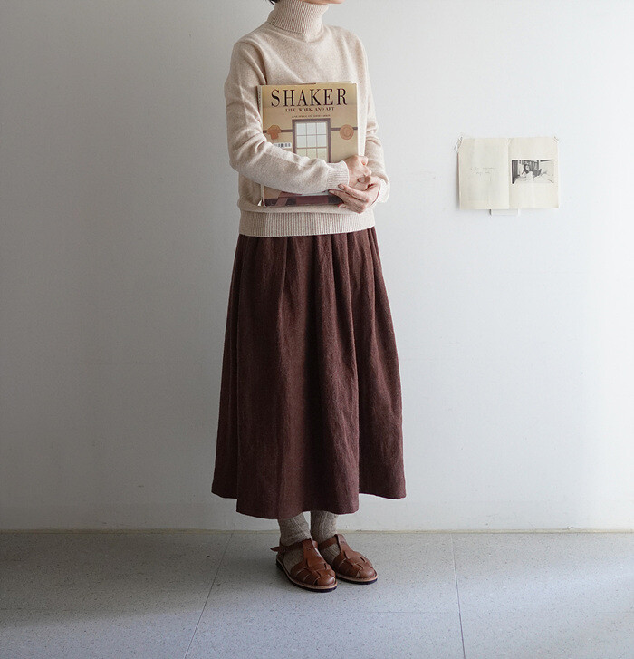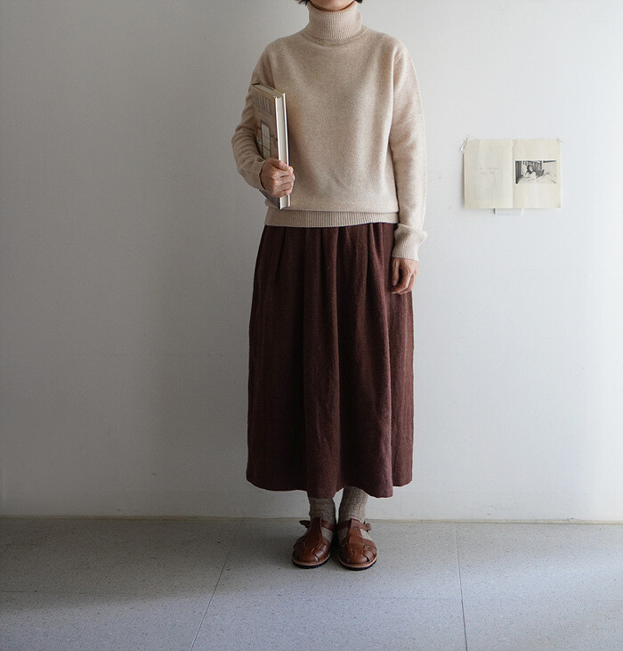 두께감이 있는 울 / 린넨 혼방 소재입니다