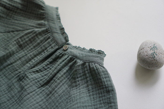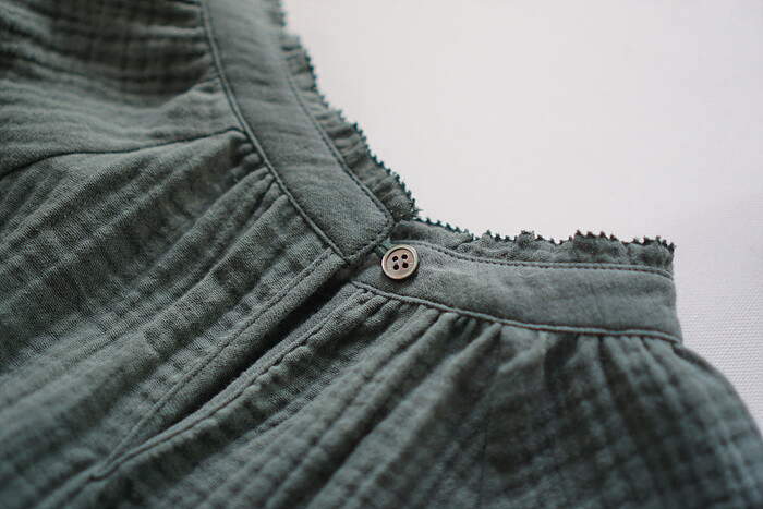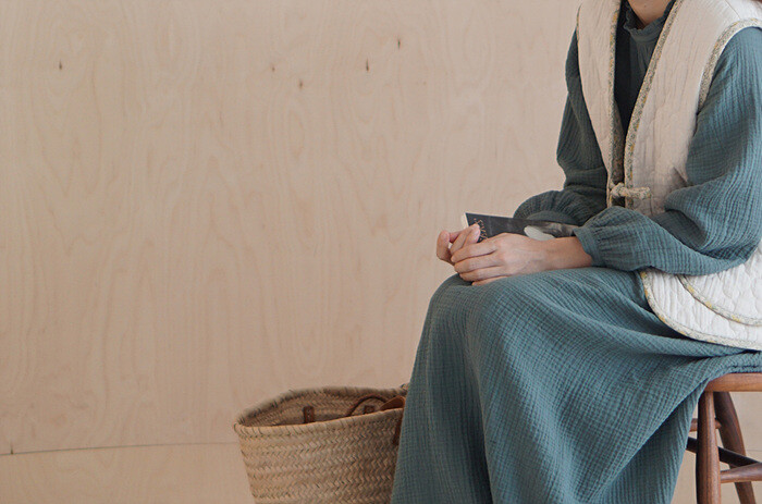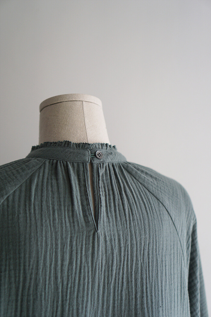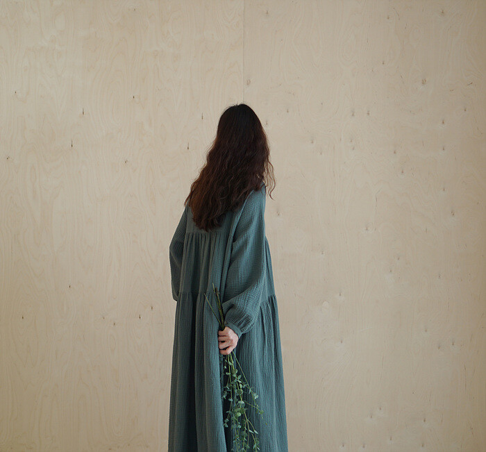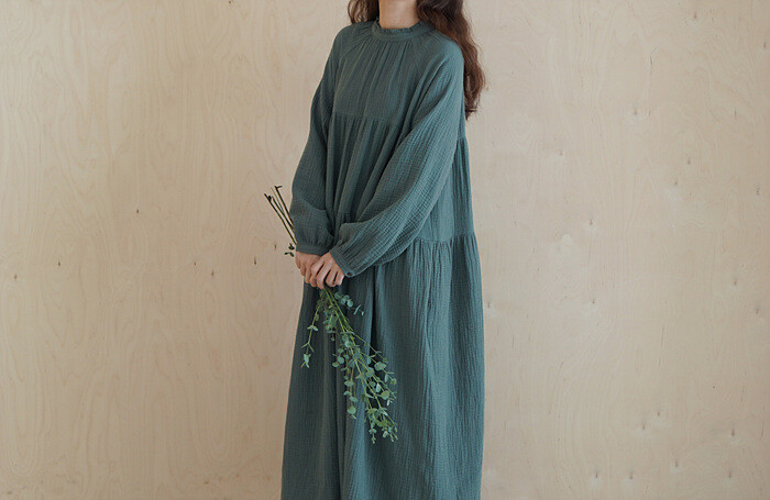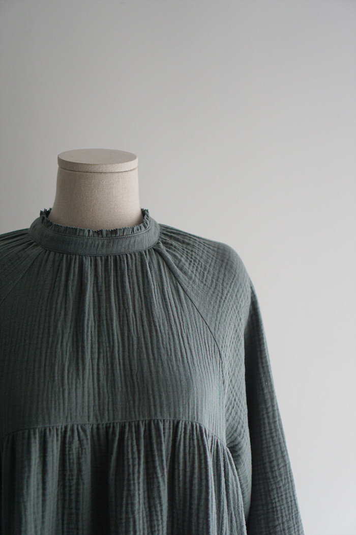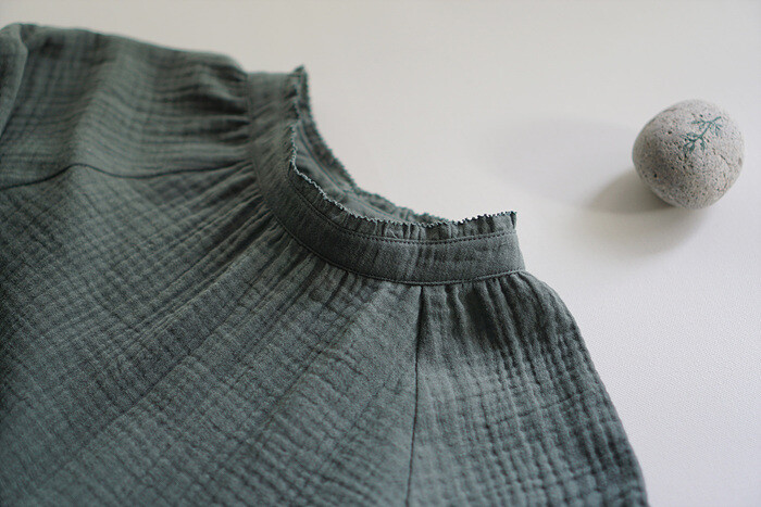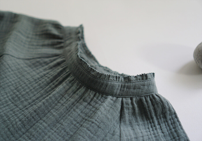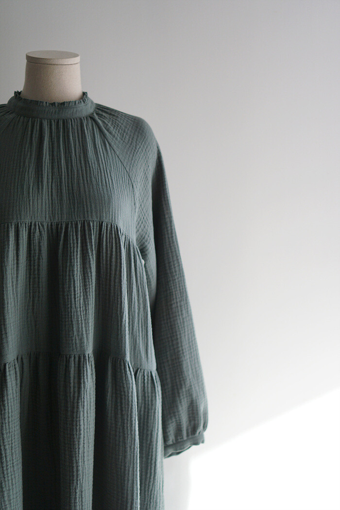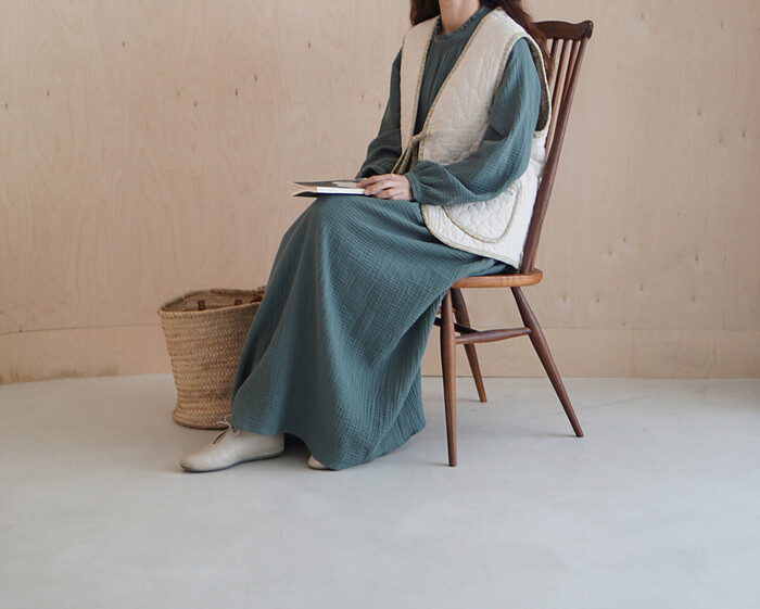 풍성한 셔링이 만드는 트라페즈 실루엣.