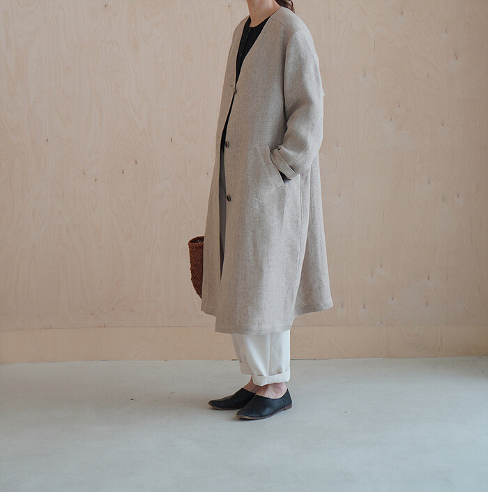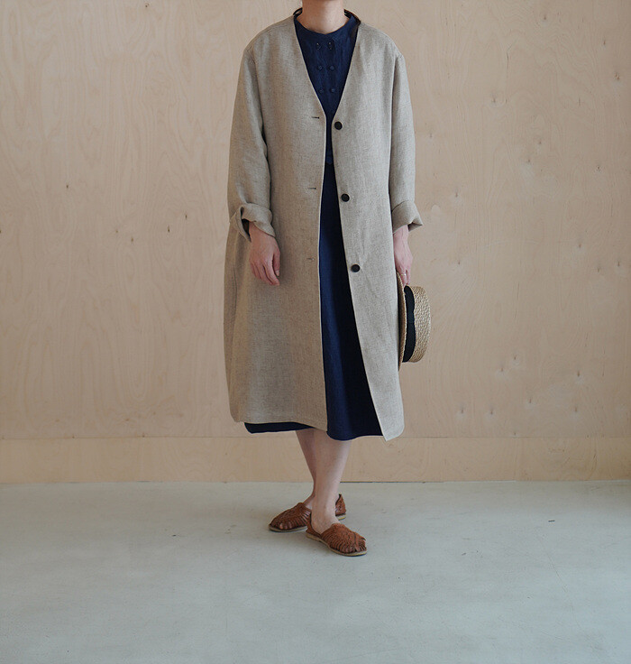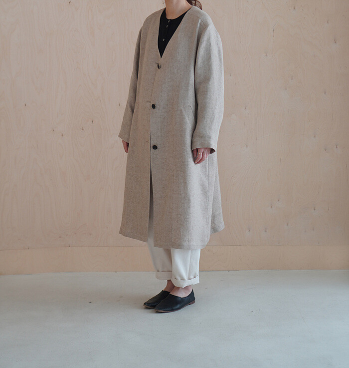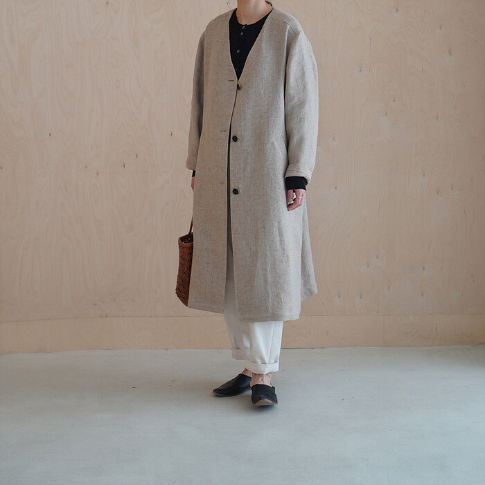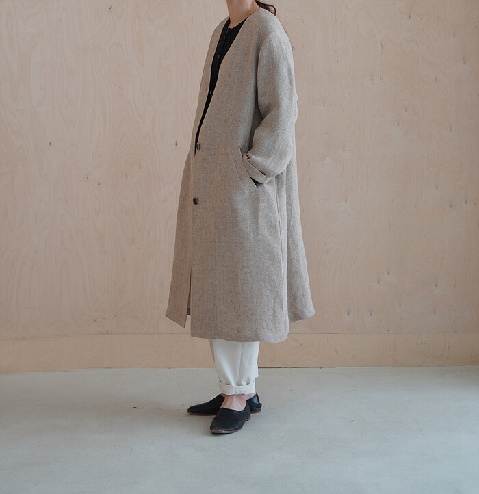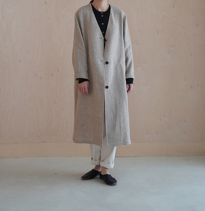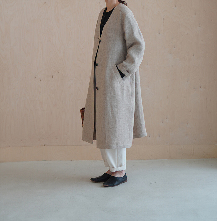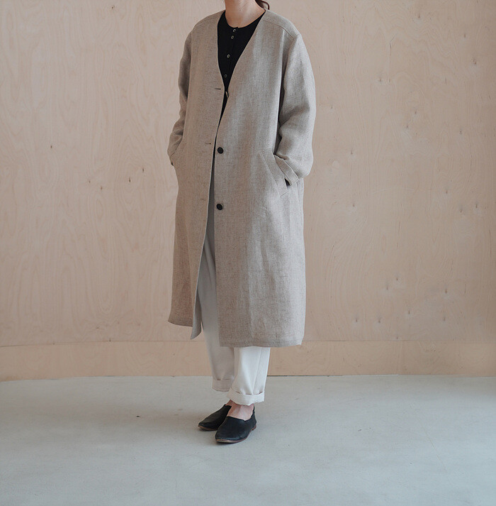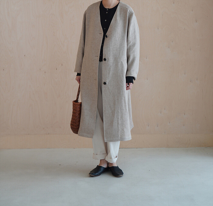 롱 보리 자켓은 카라 없이 편안하게 흐르는