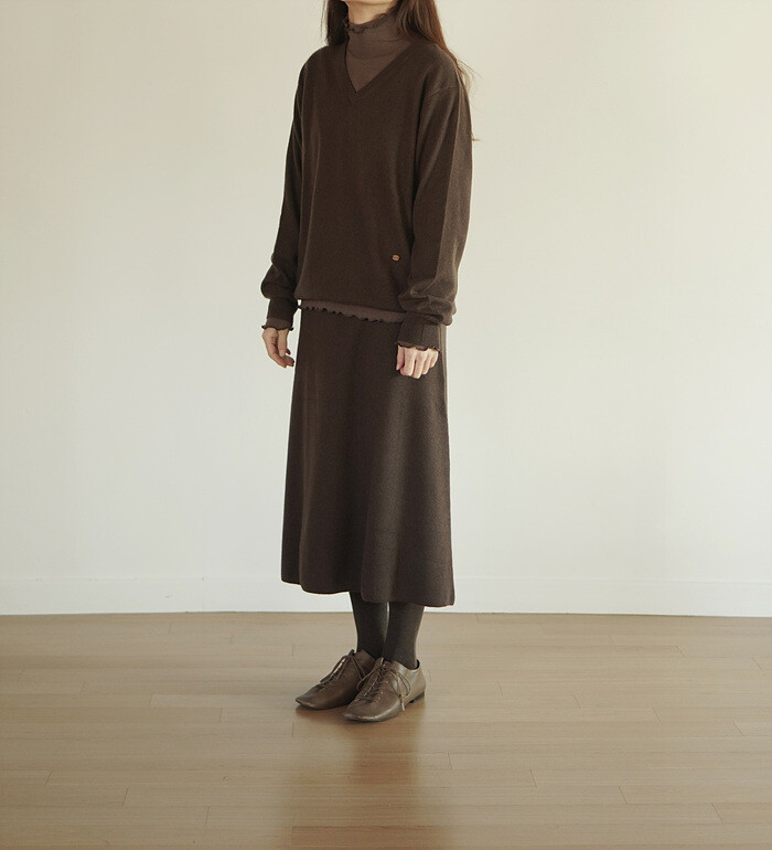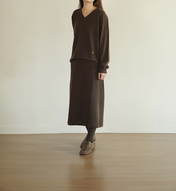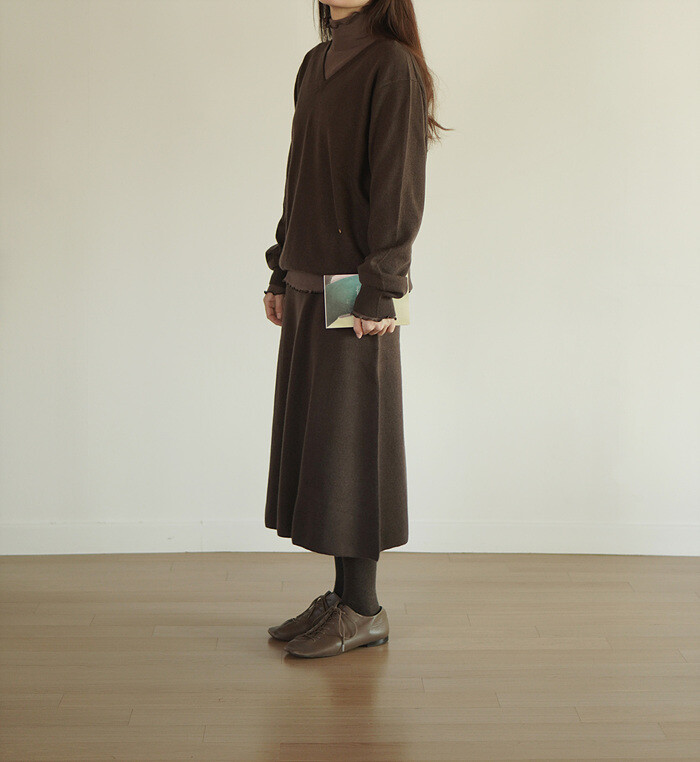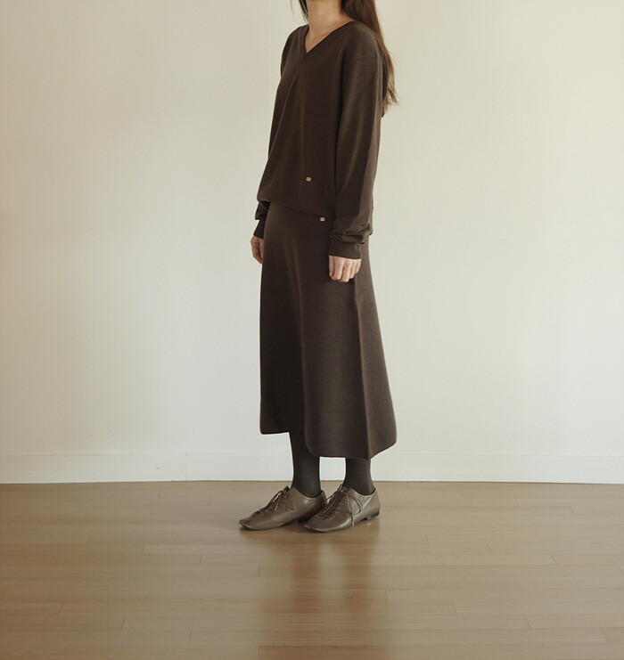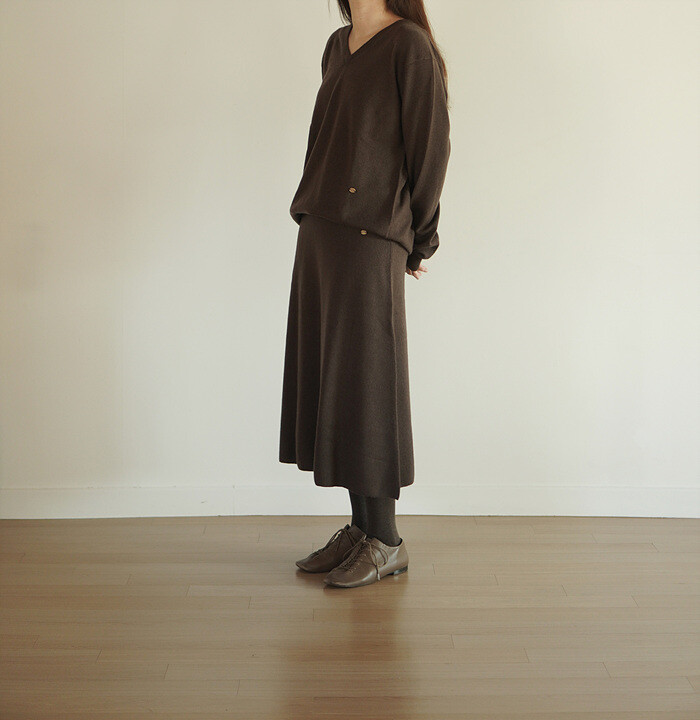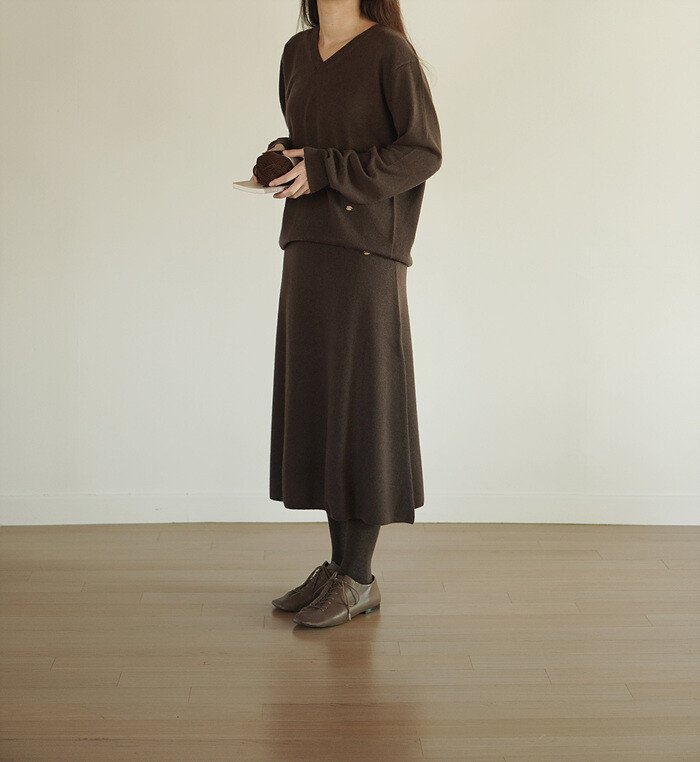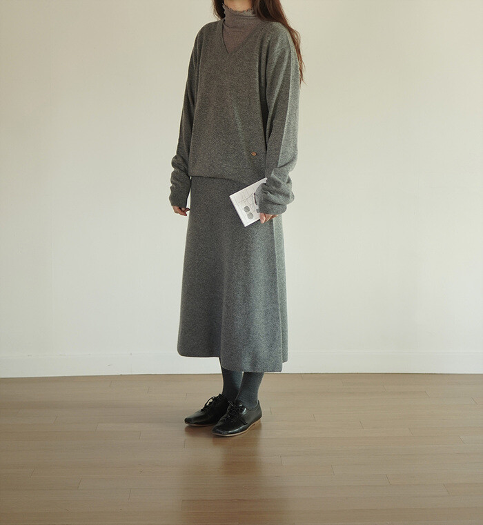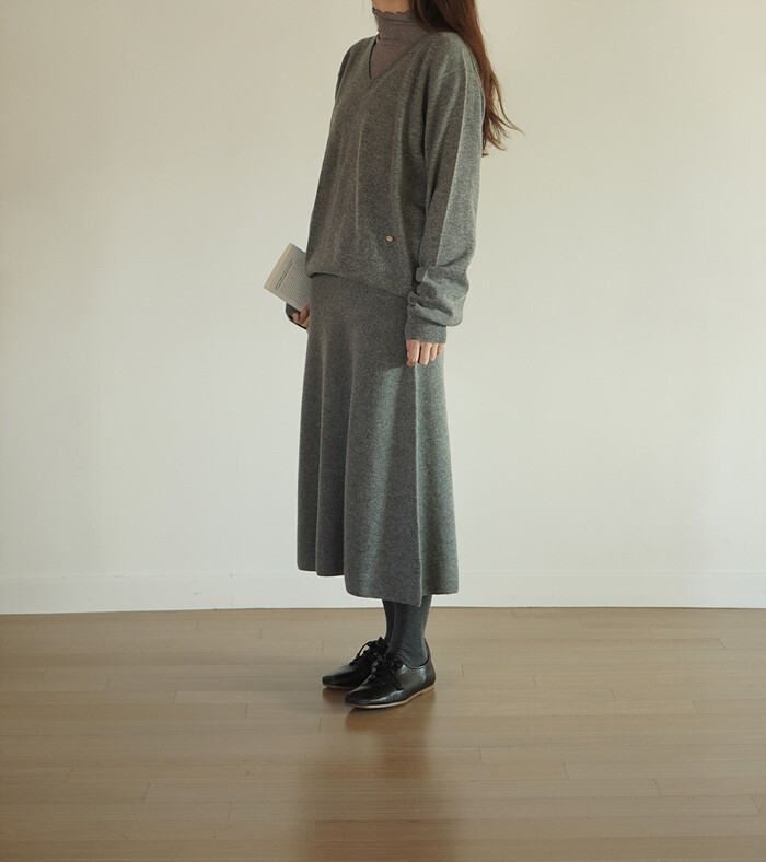 같은 원사 & 조직으로 만든 v넥 니트와 셋업으로도 연출이 가능합니다.