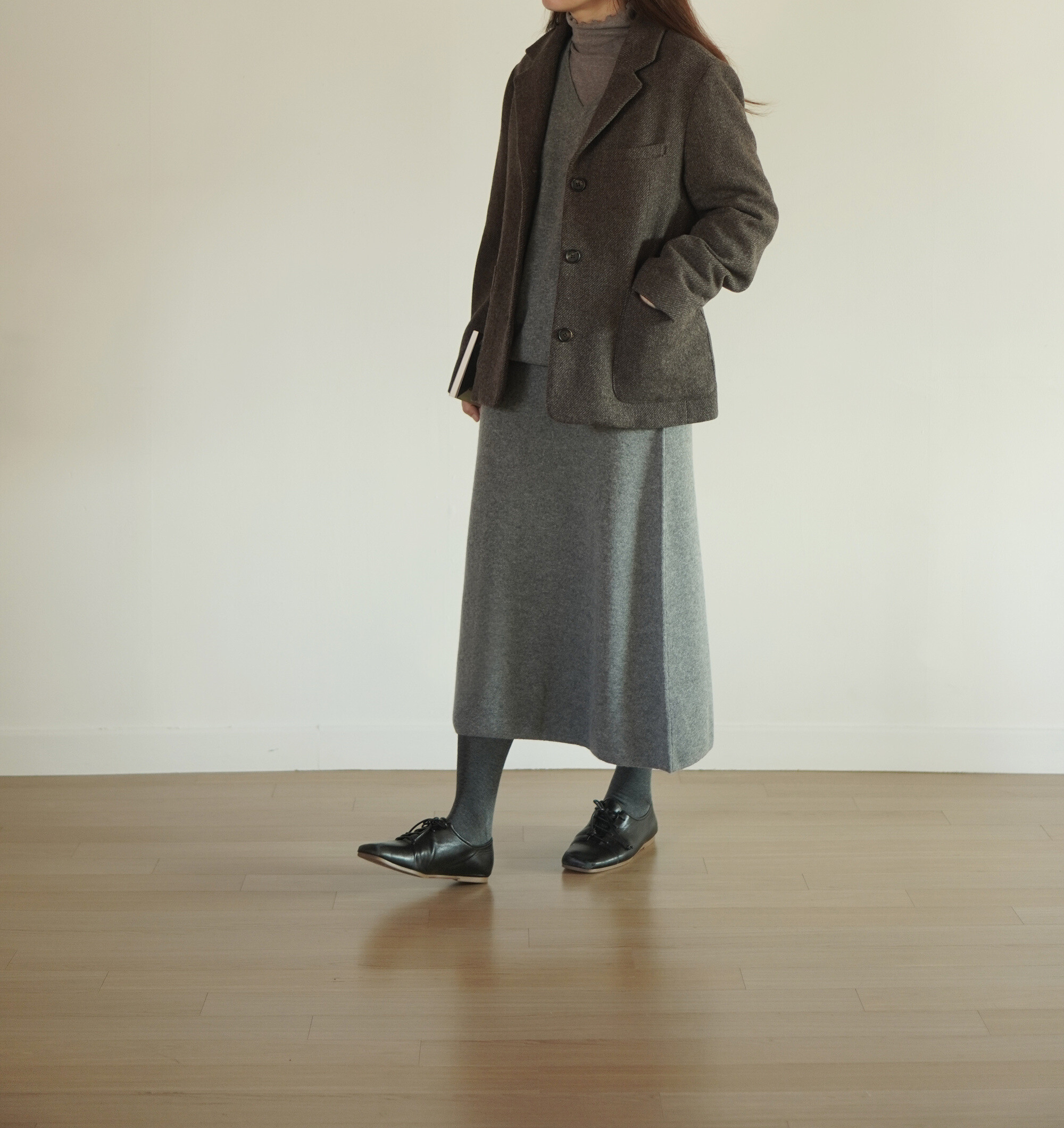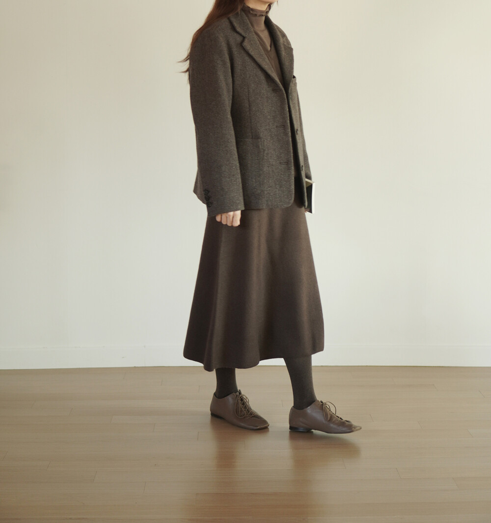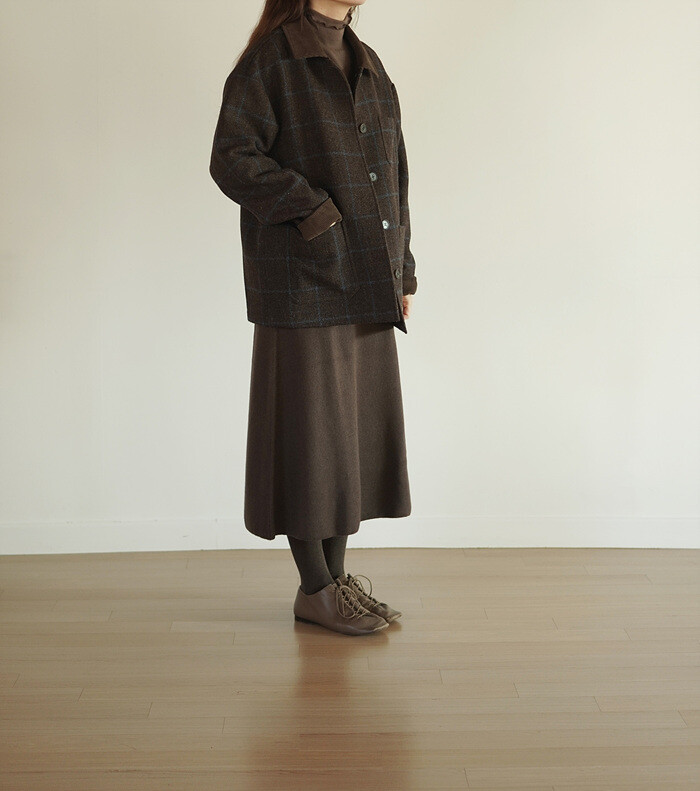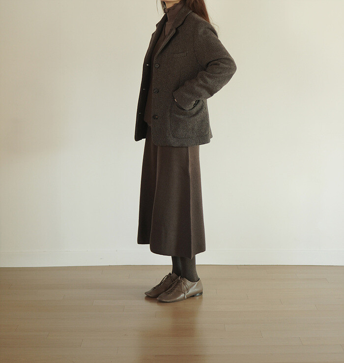 코튼 타이즈 브라운 색상과 함께 착용했습니다.