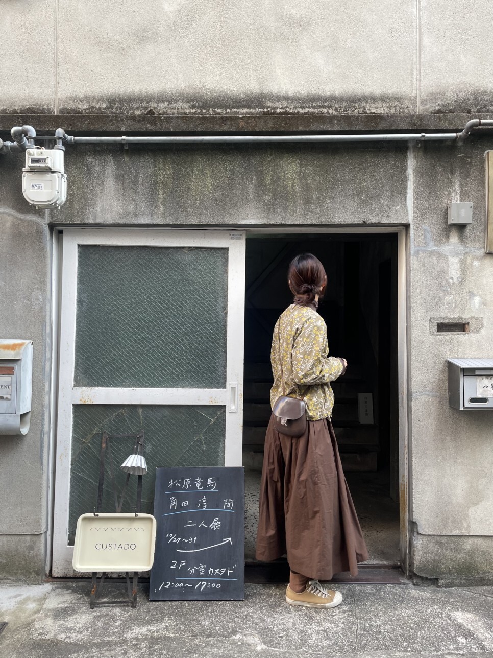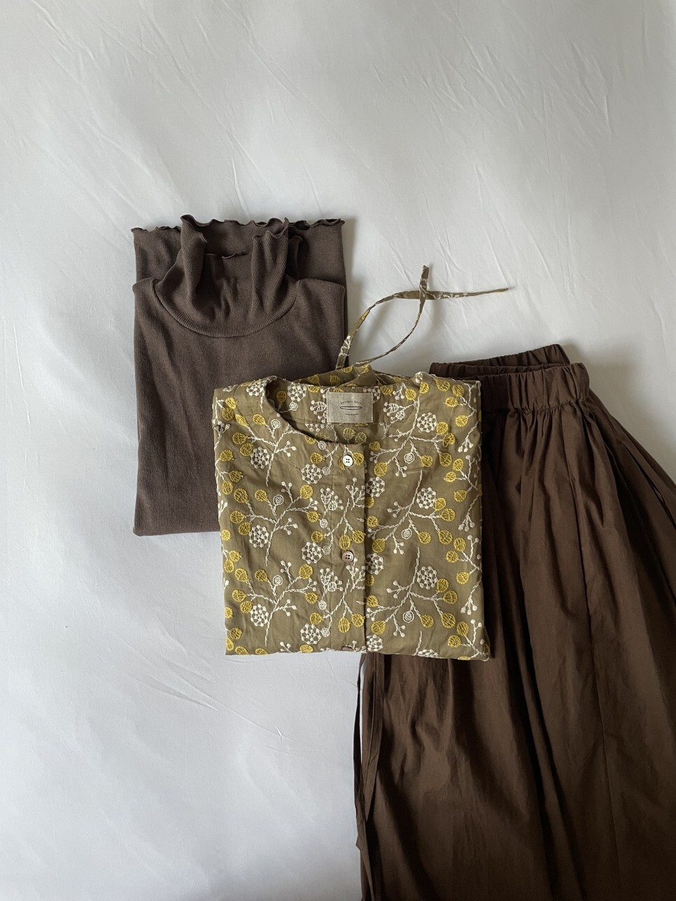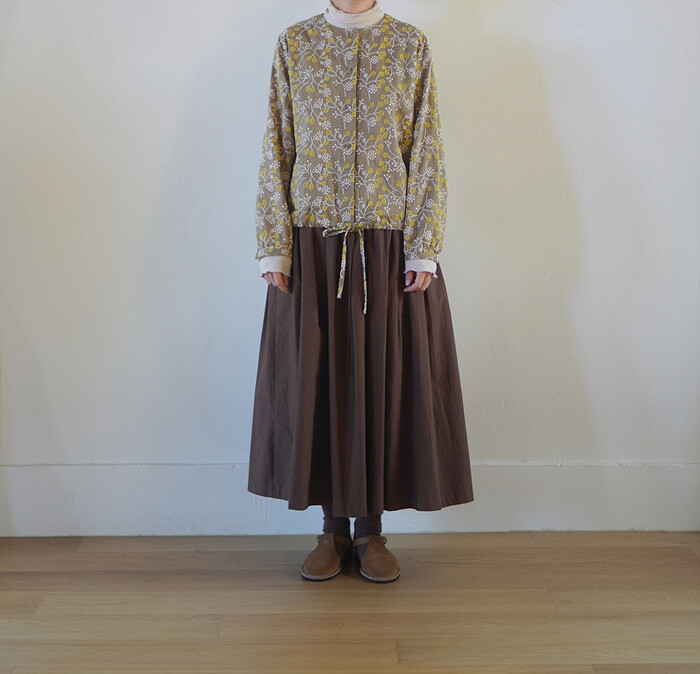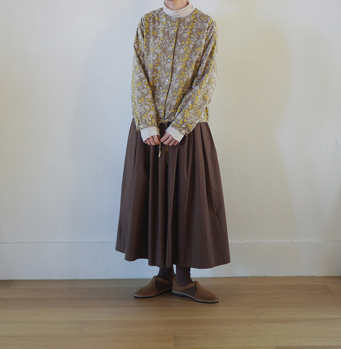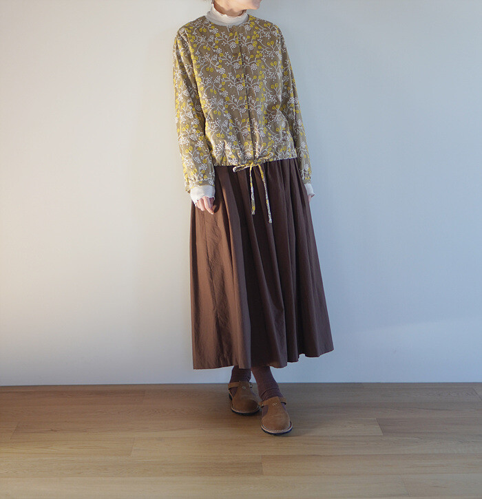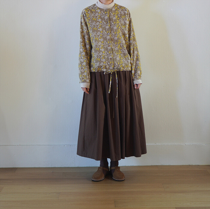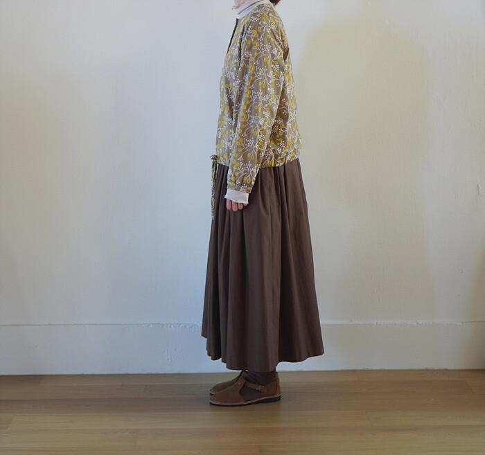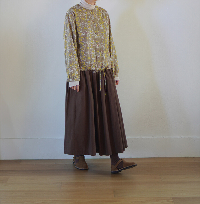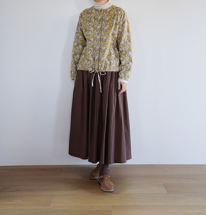 브라운 컬러의 풀 스커트와 함께