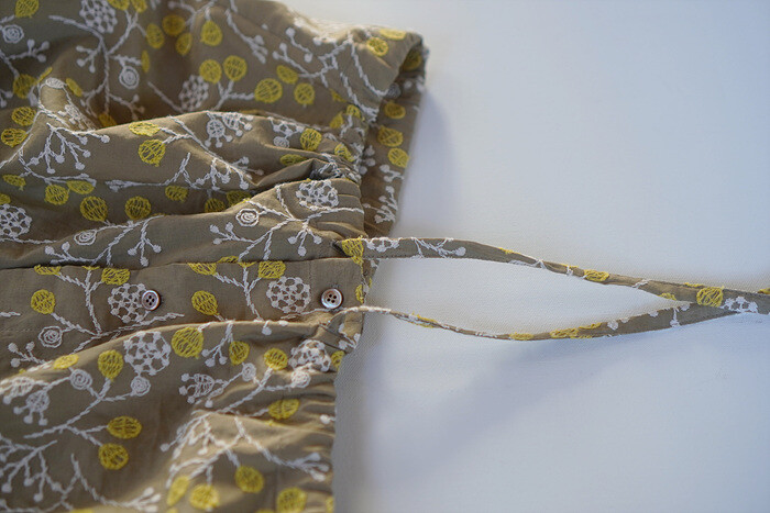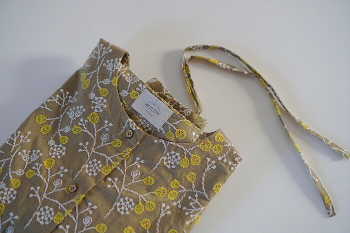 허리끈을 리본을 묶어 밑단이 살짝 블라우징되도록