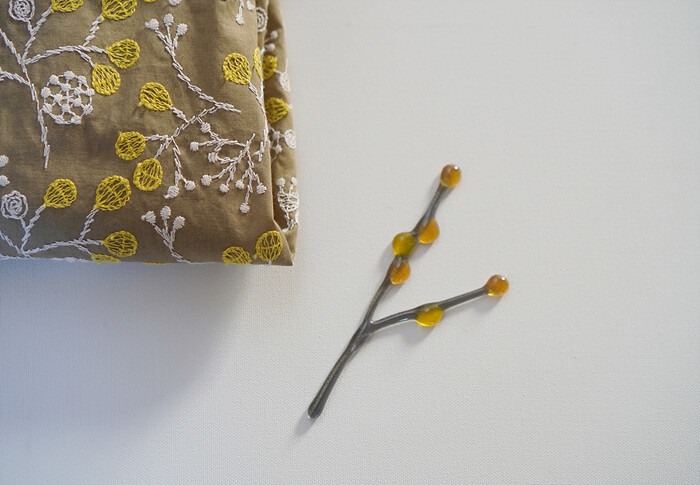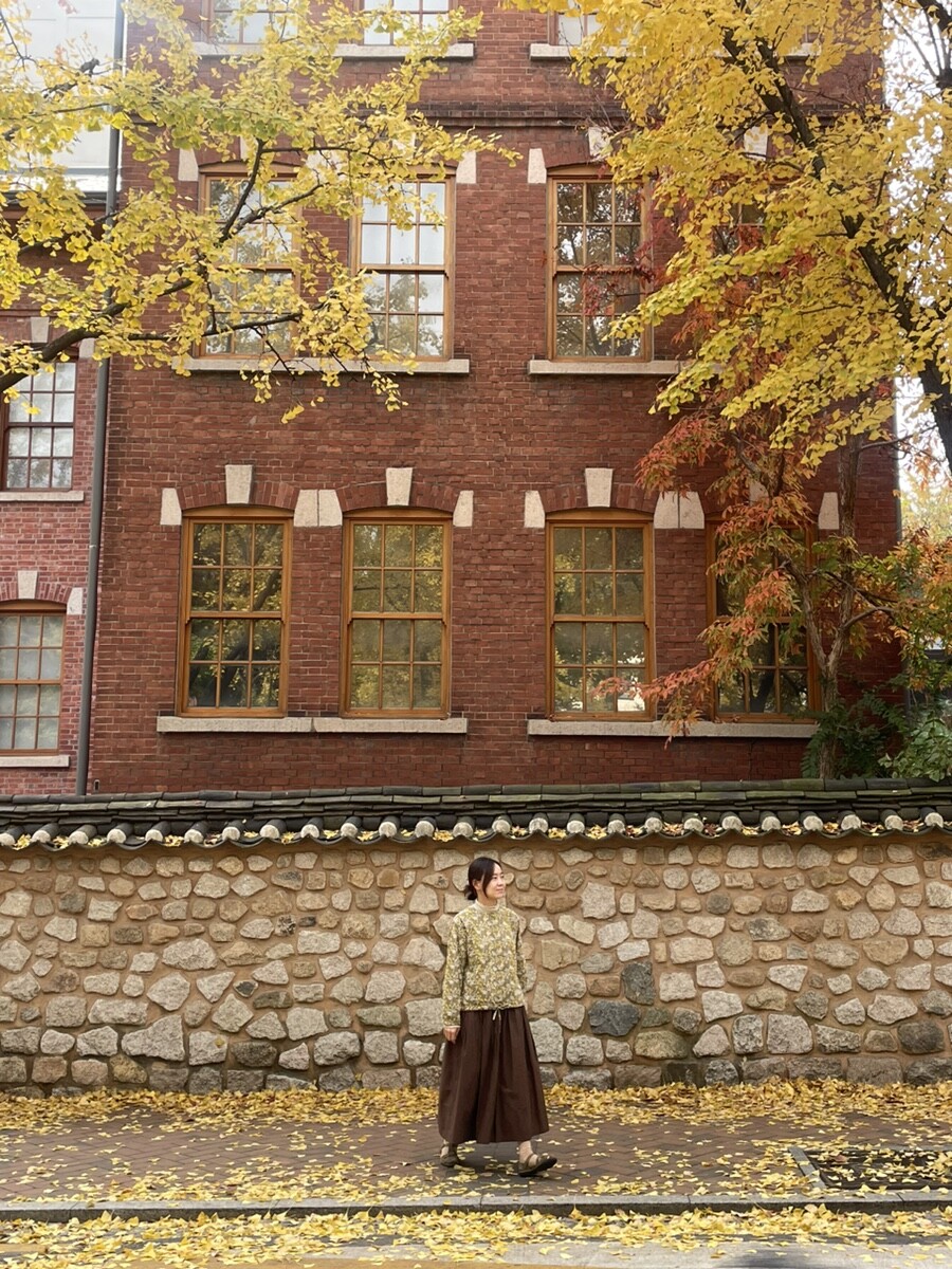겨자빛을 머금은 브라운 컬러 위에 놓여진