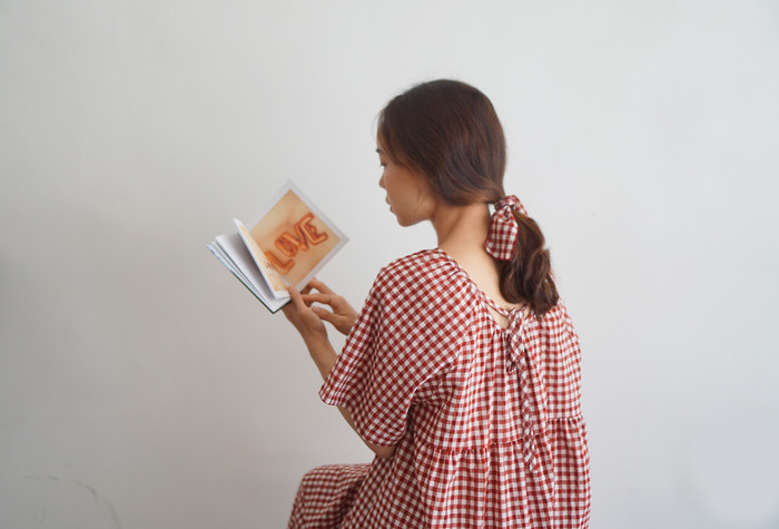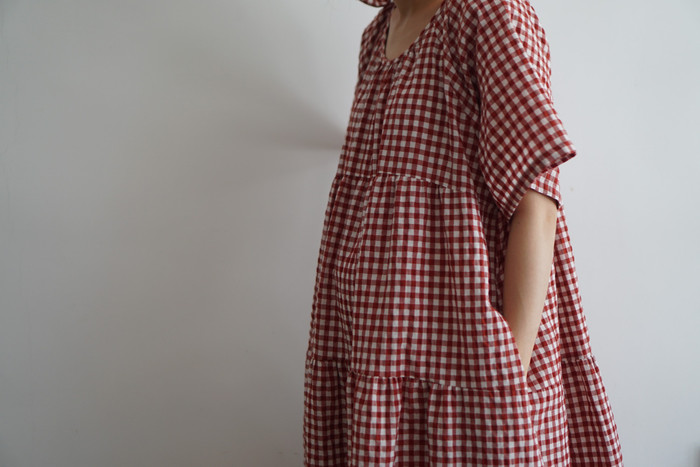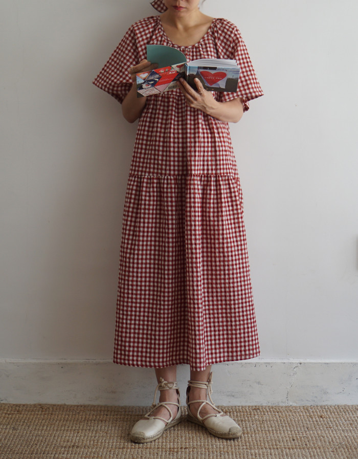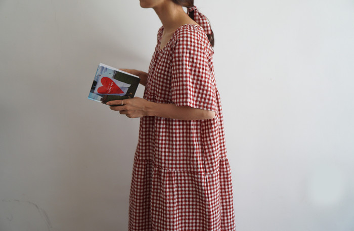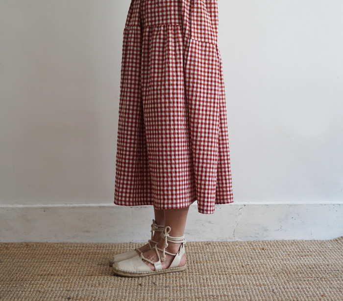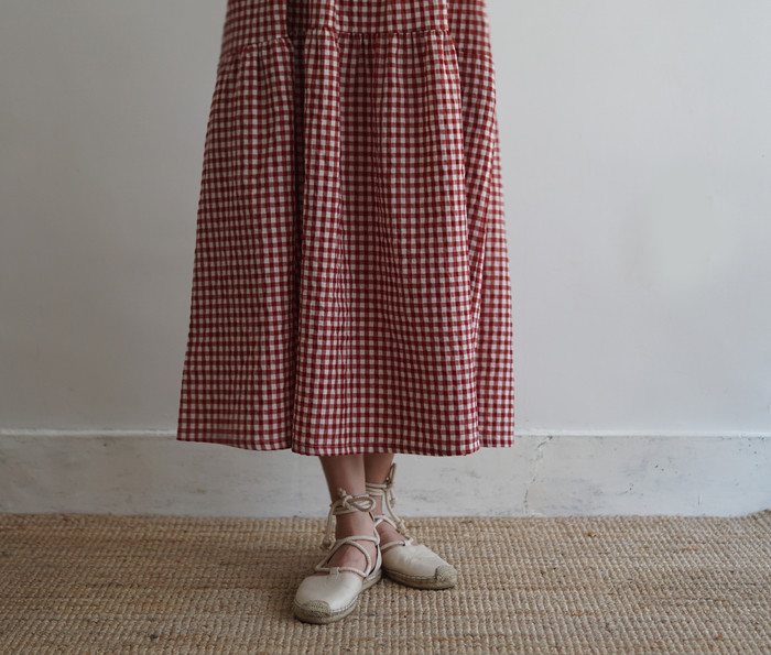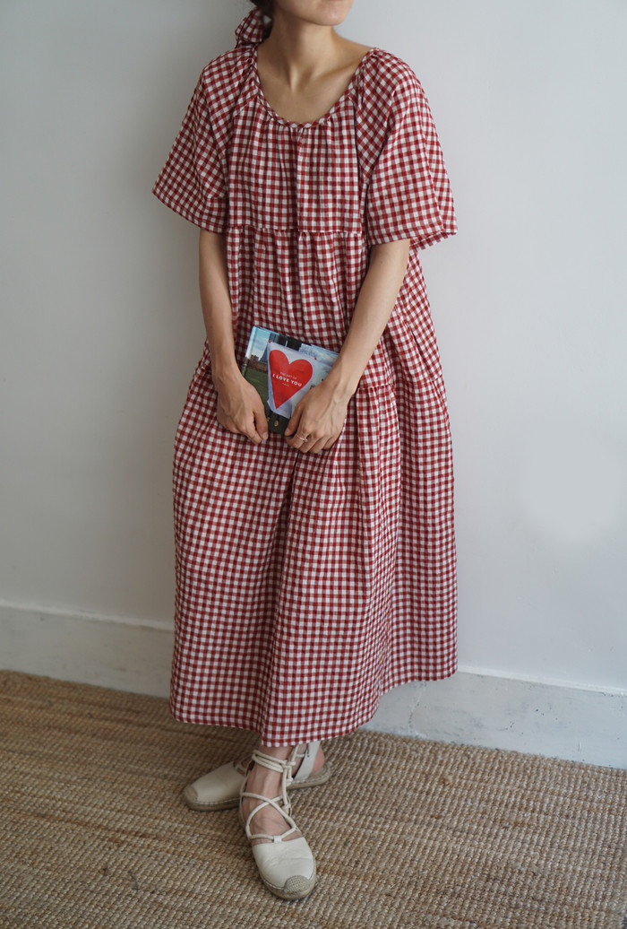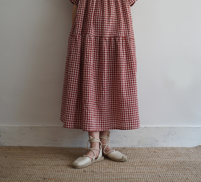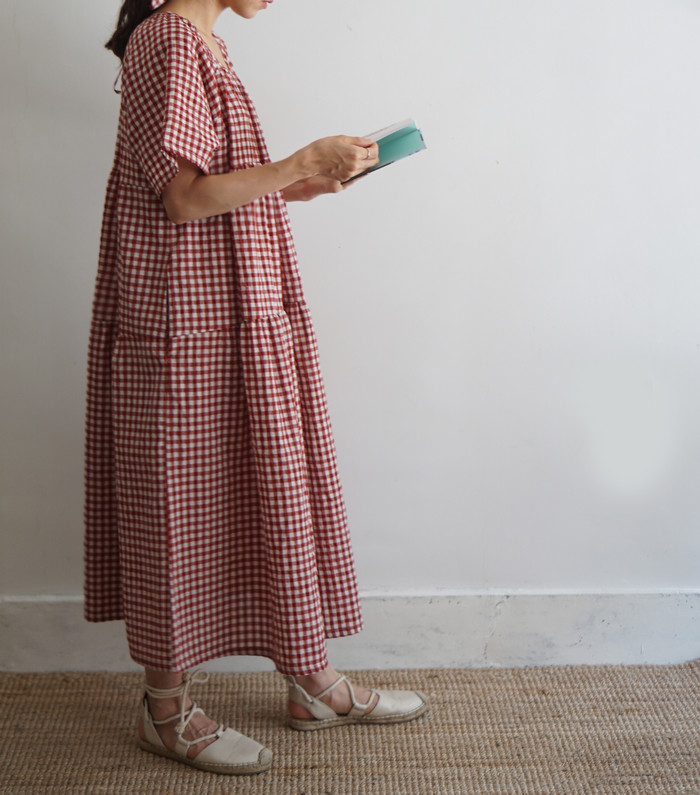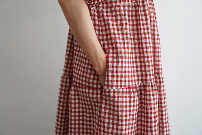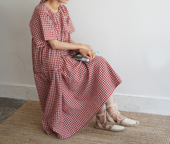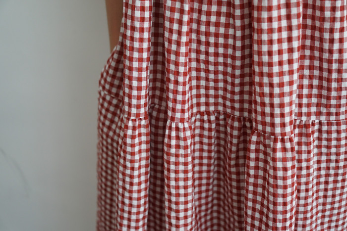 상큼한 빨간색 고방체크 (깅엄체크)패턴입니다.