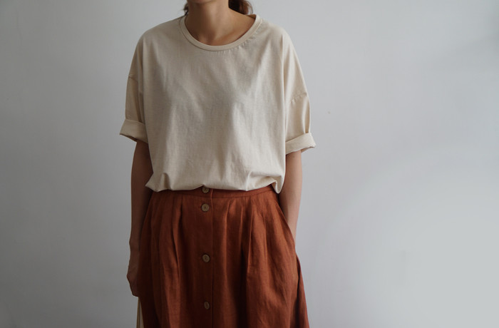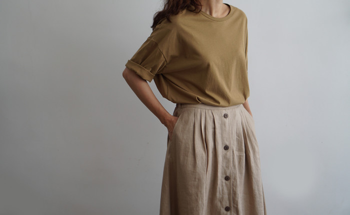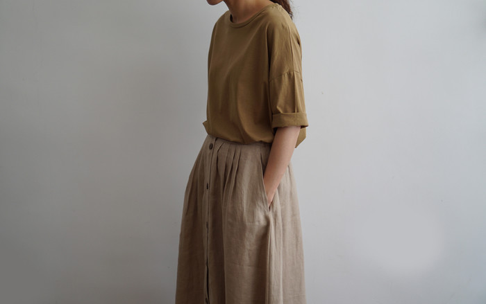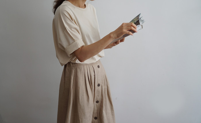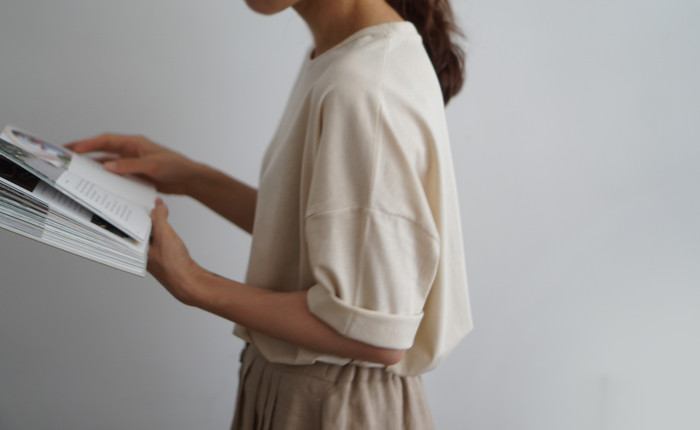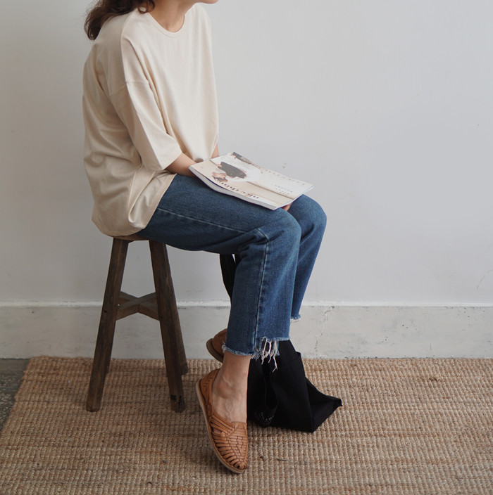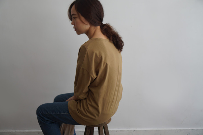 소매 길이는 팔꿈치를 감싸는 길이감으로