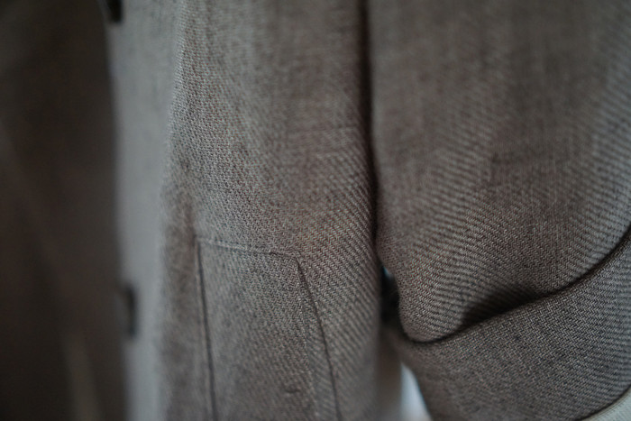 넓은 라펠, 깊은 옆 트임, 더블 버튼, 웰트포켓의