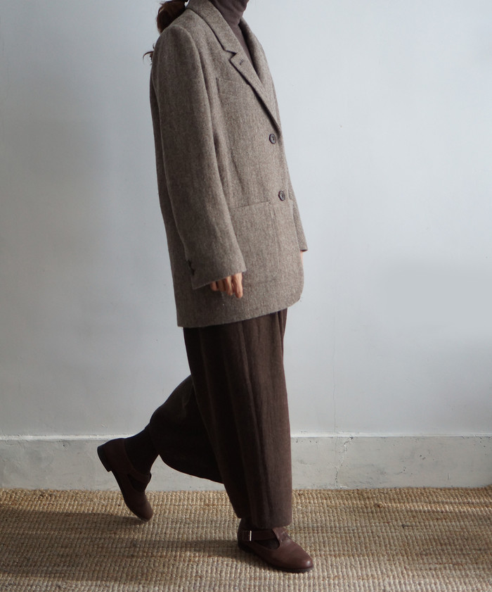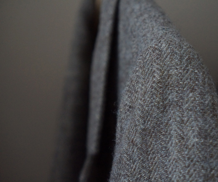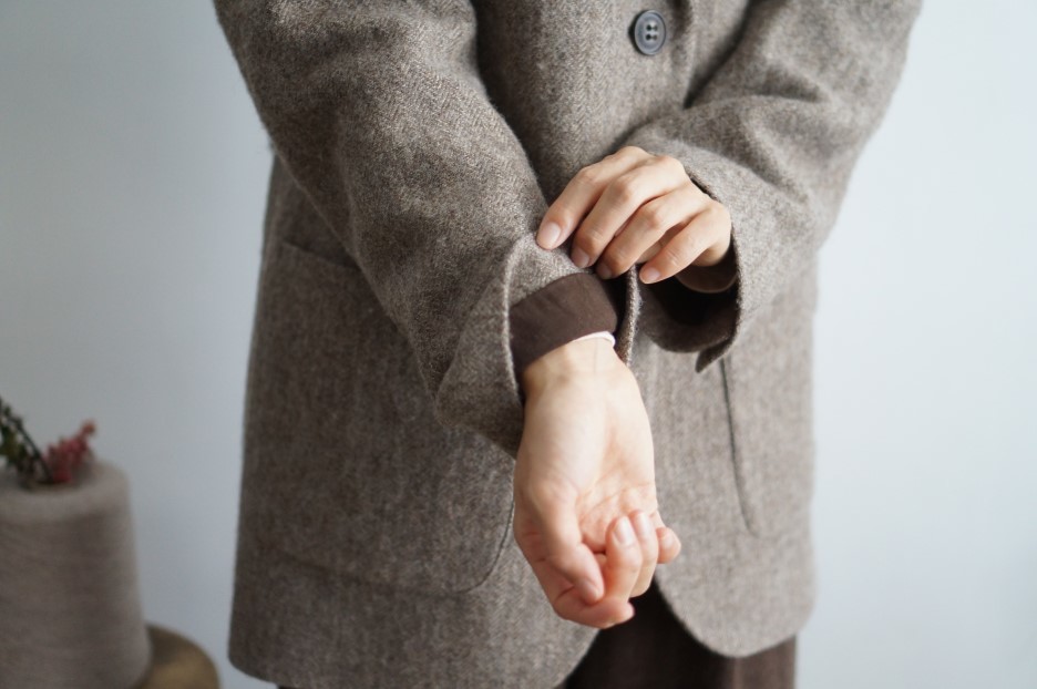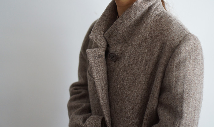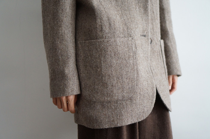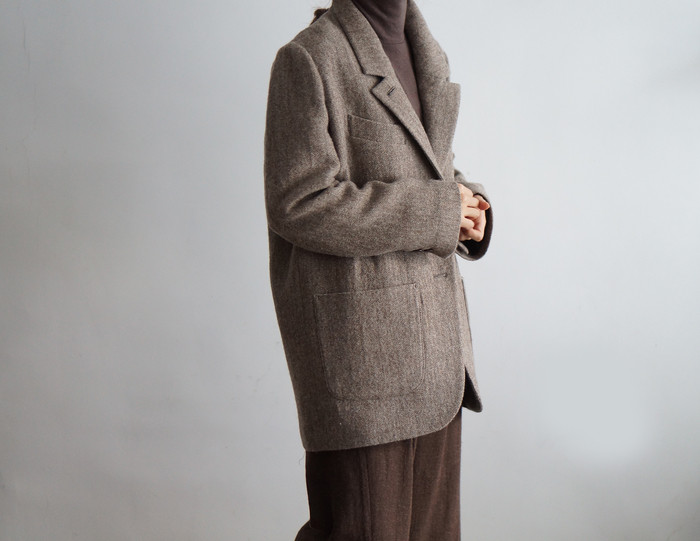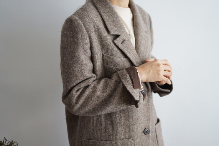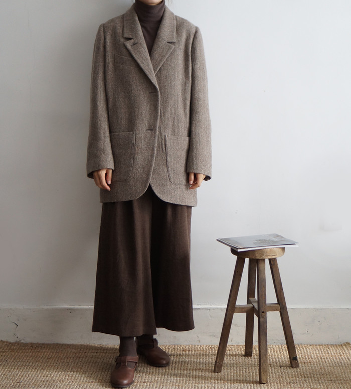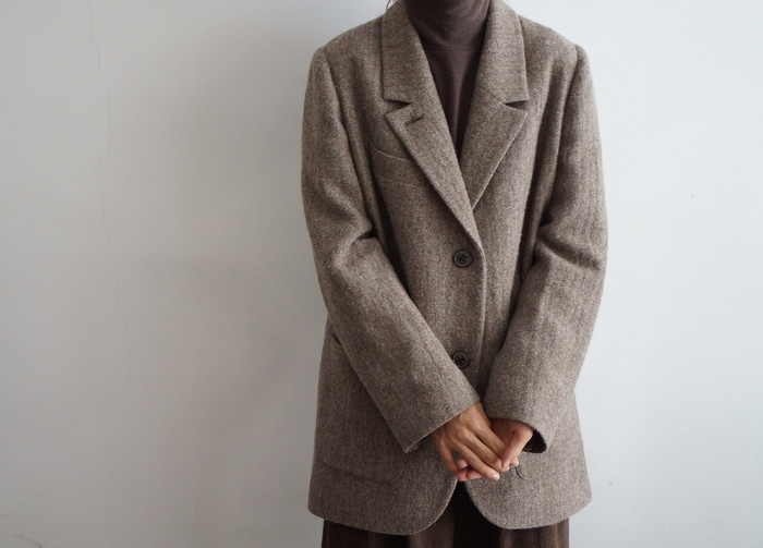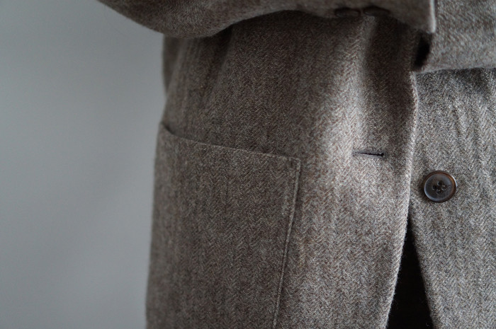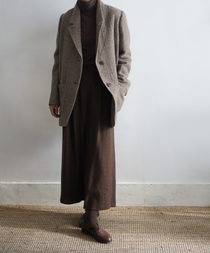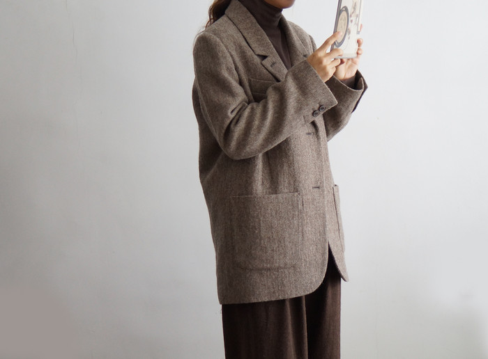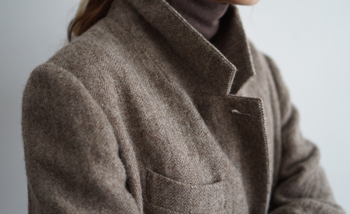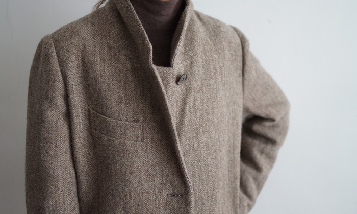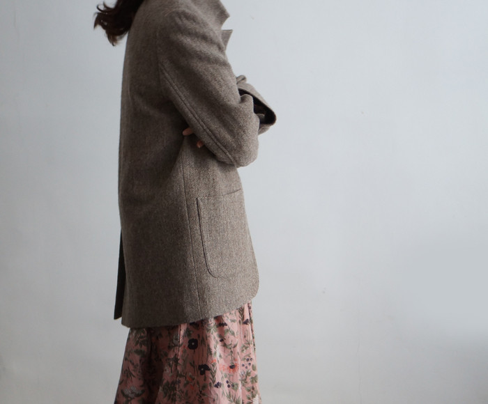 린넨과 울이 함께 짜여진 헤링본 울 소재입니다.