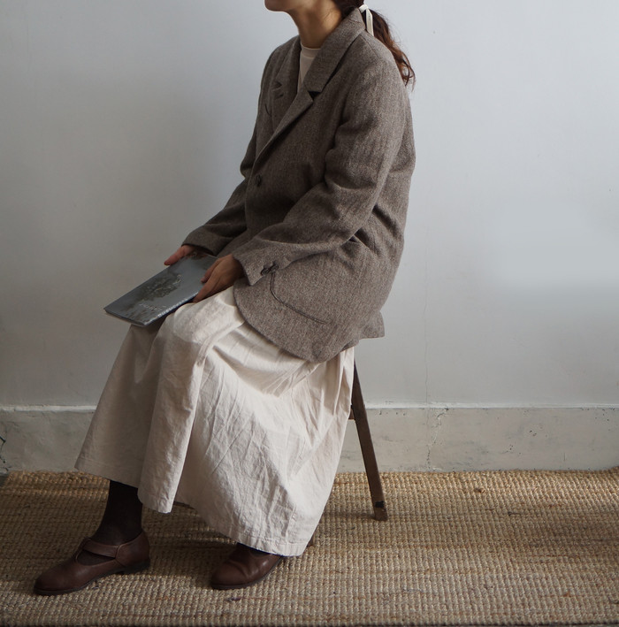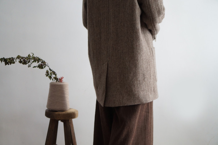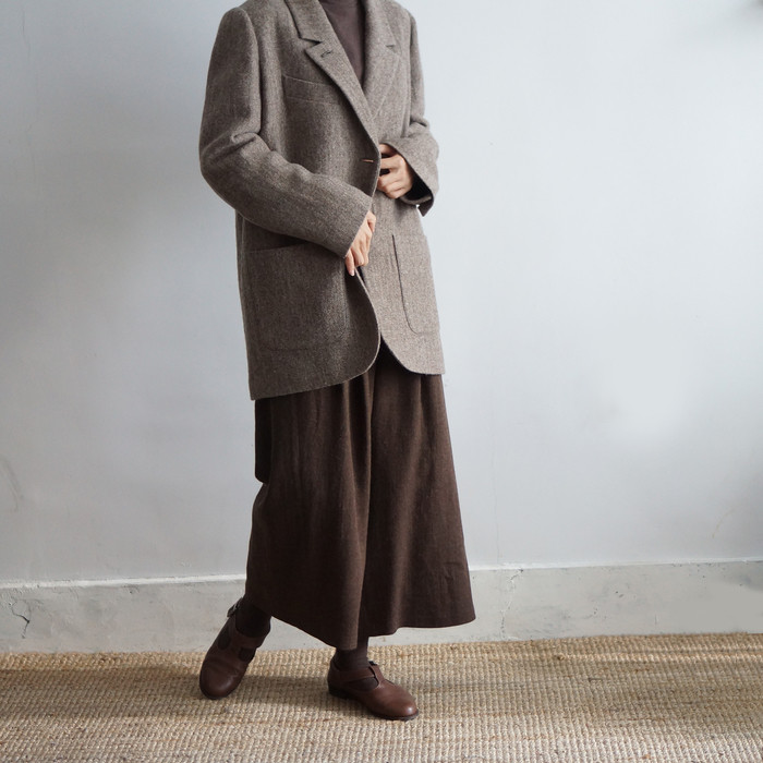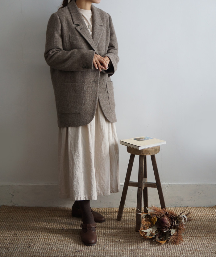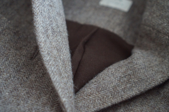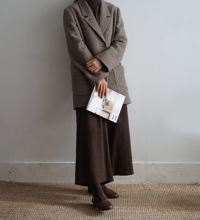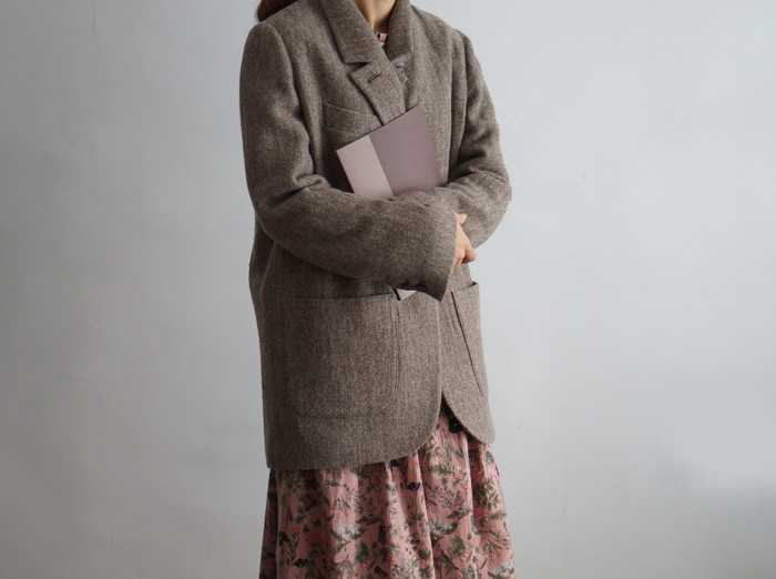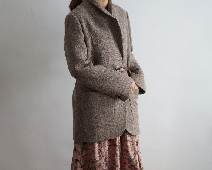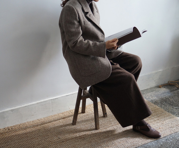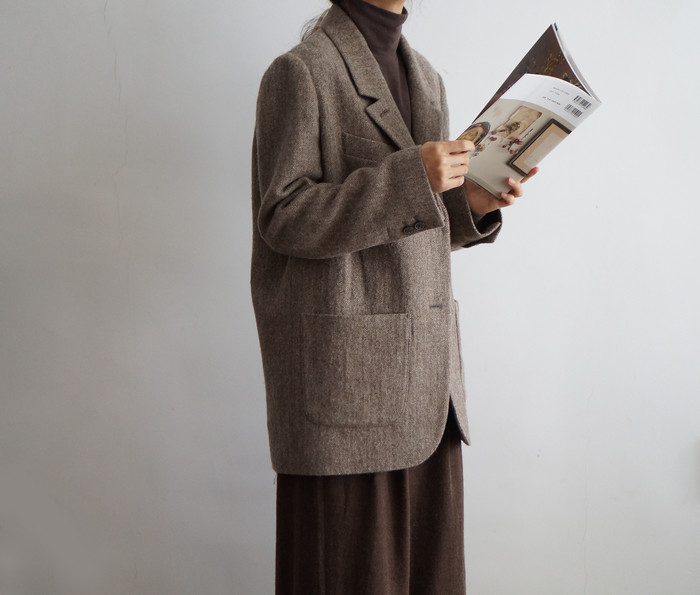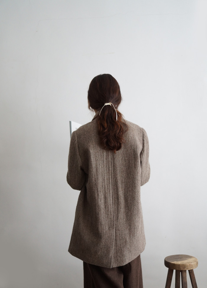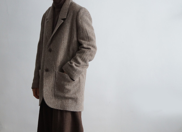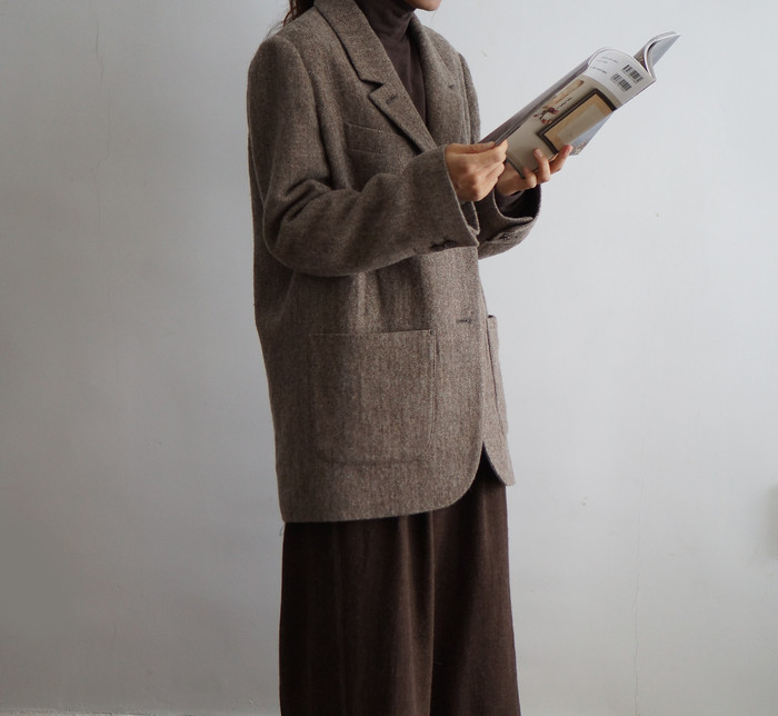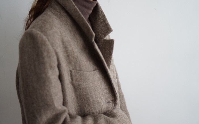 린넨과 울이 함께 짜여진 헤링본 울 소재입니다.