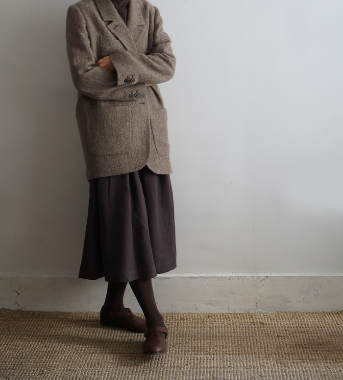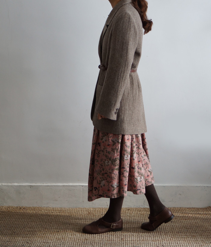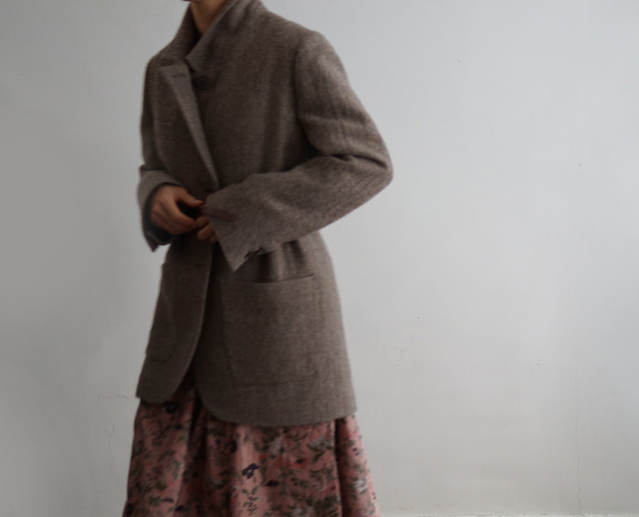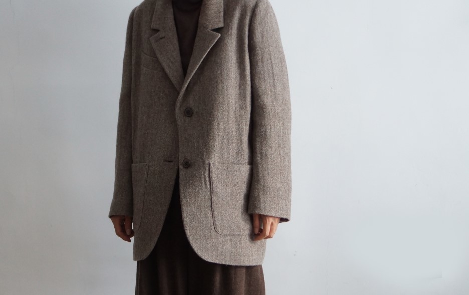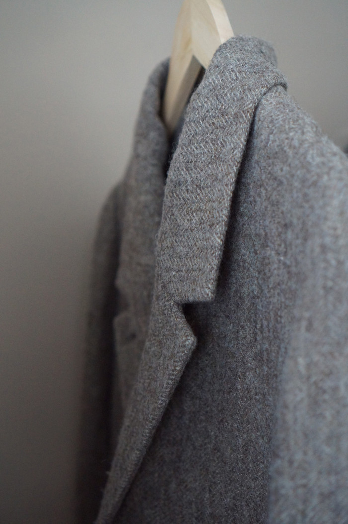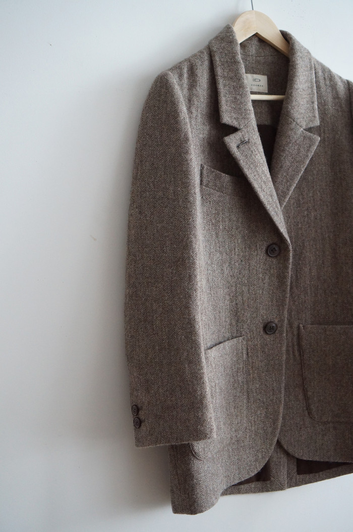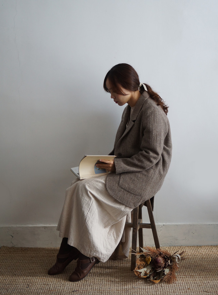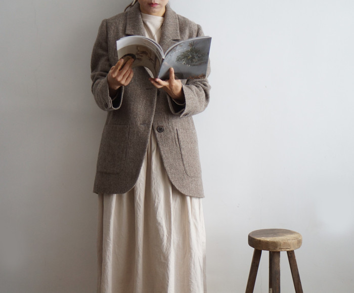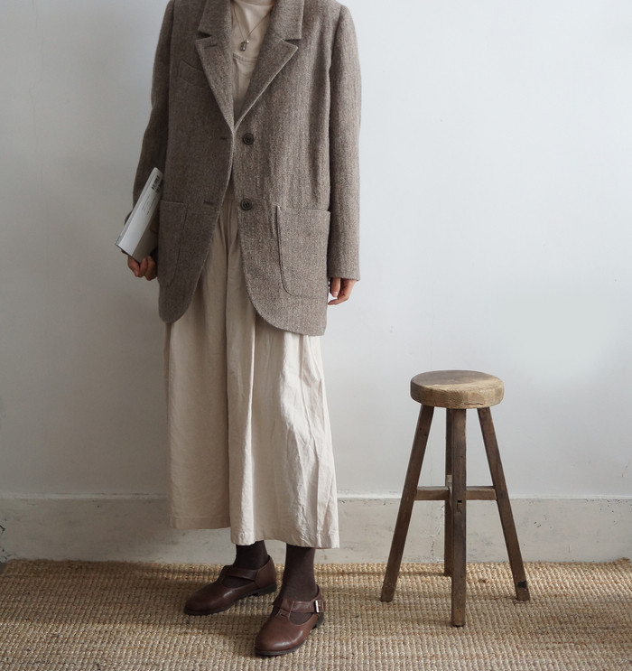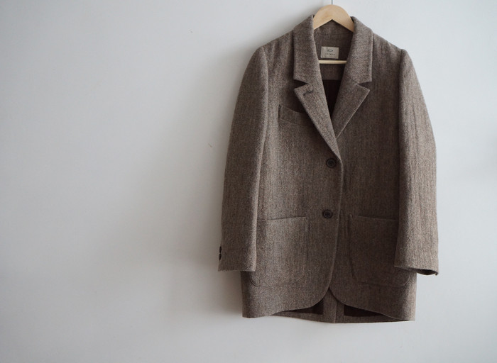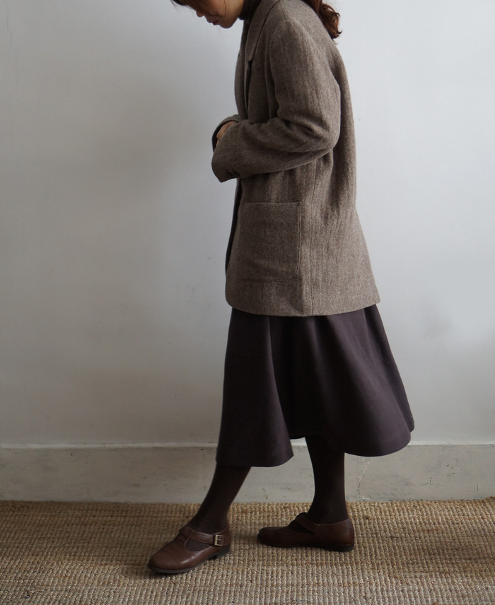 린넨과 울이 함께 짜여진 헤링본 울 소재입니다.