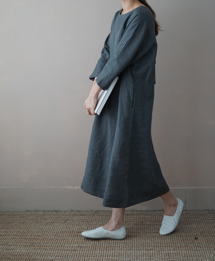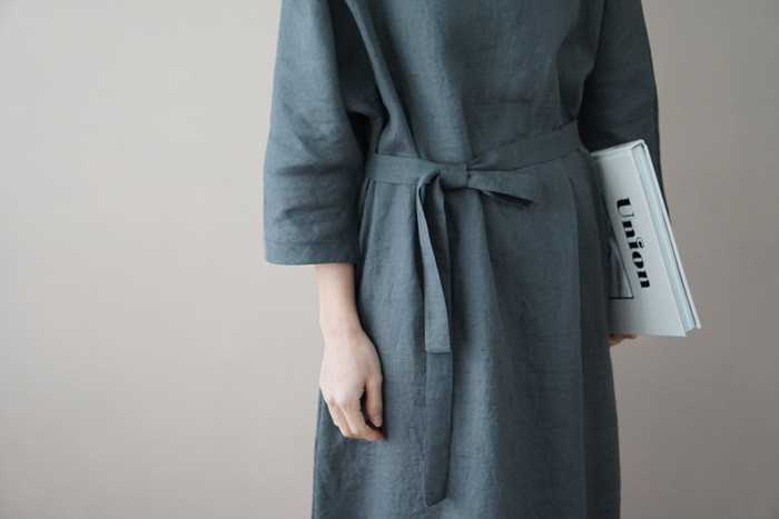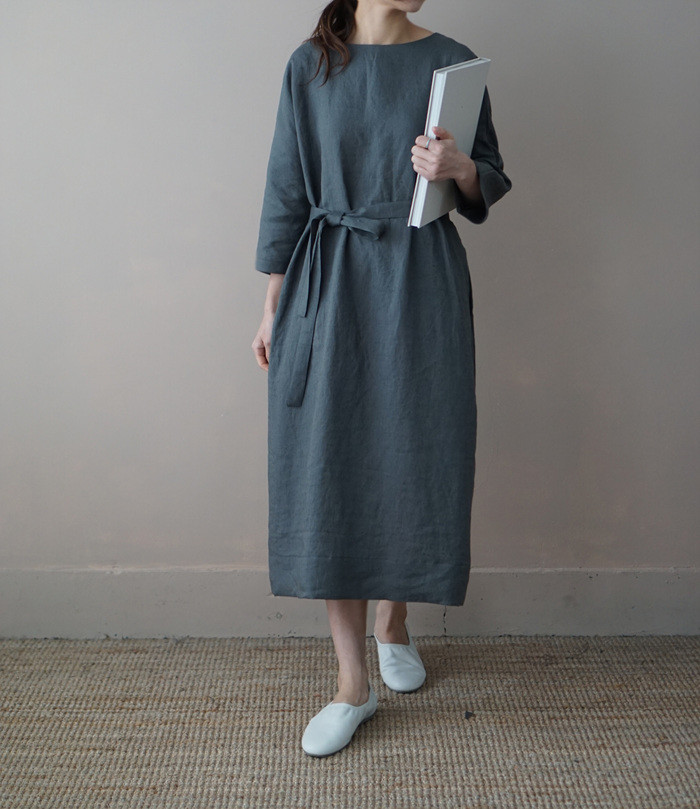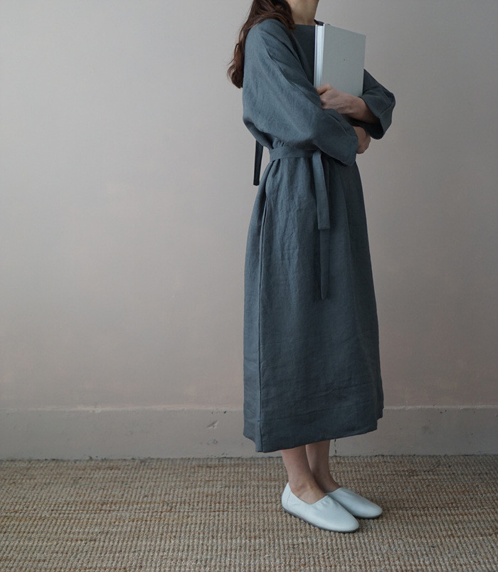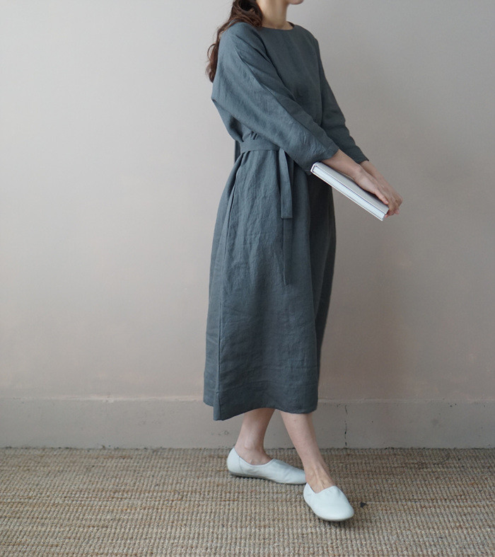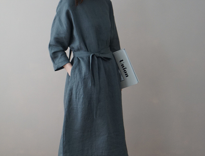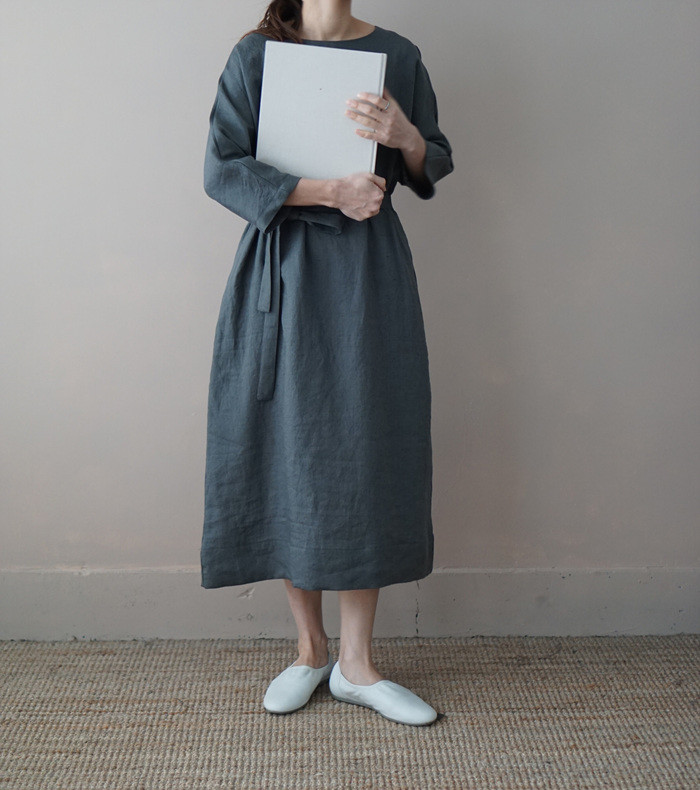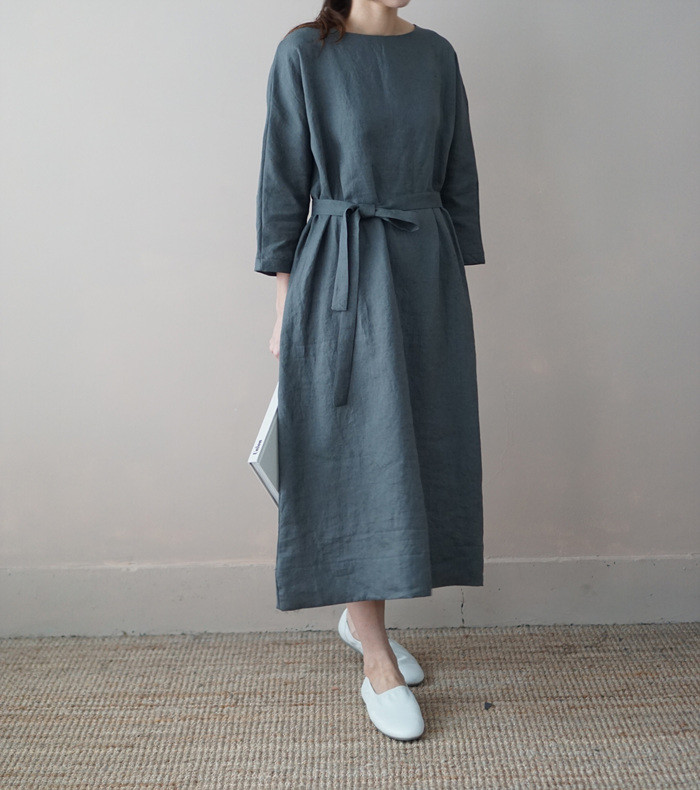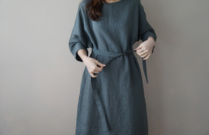 [재입고] 린넨 매듭 원피스, deep green