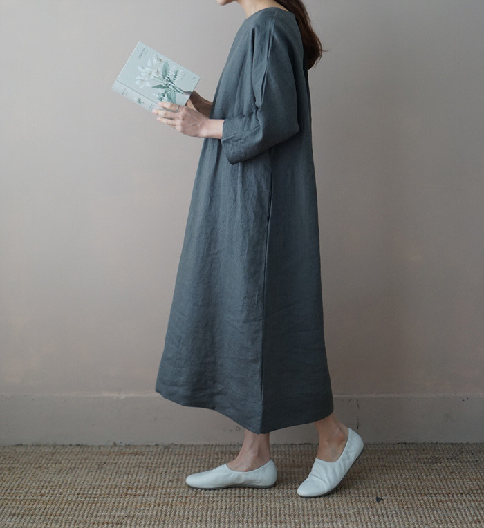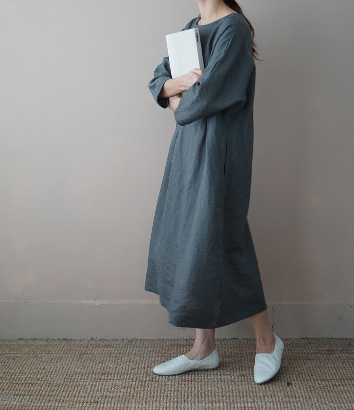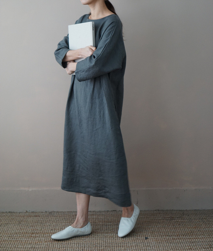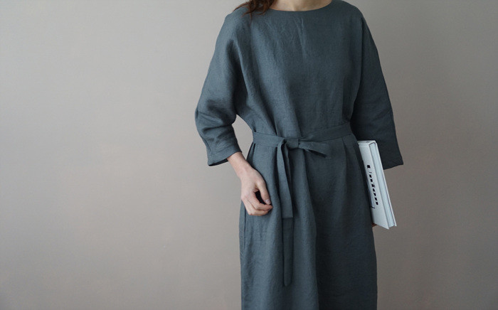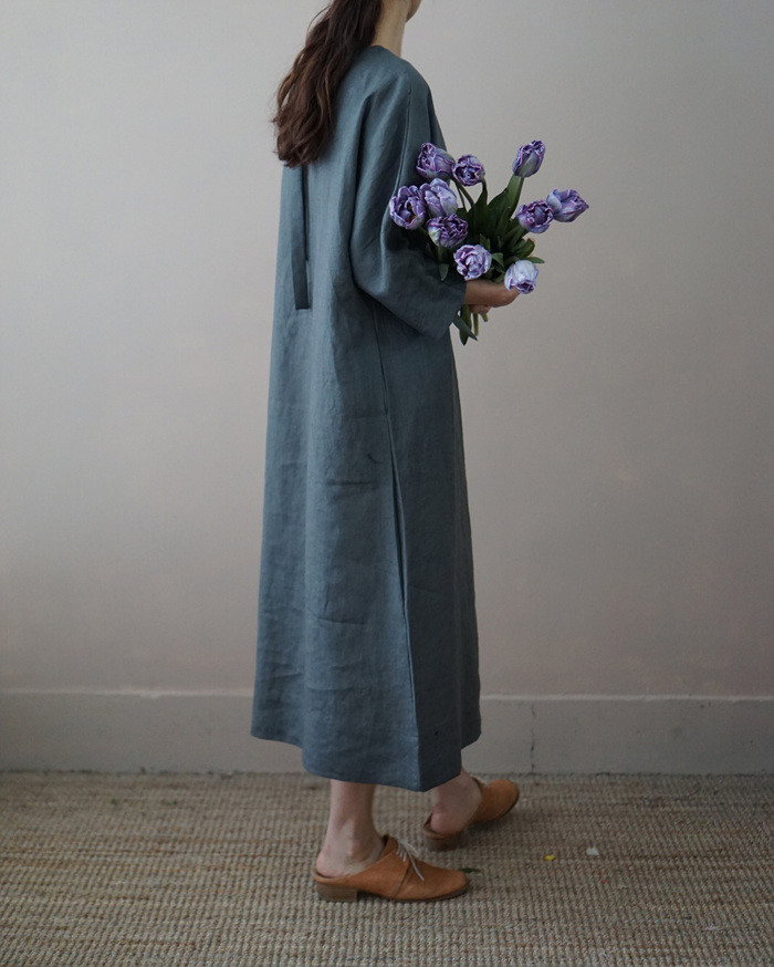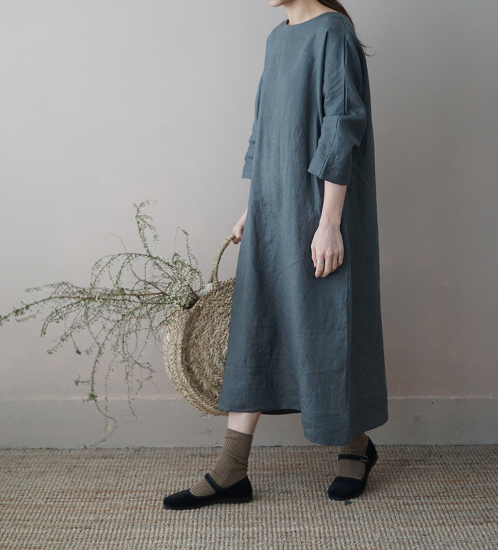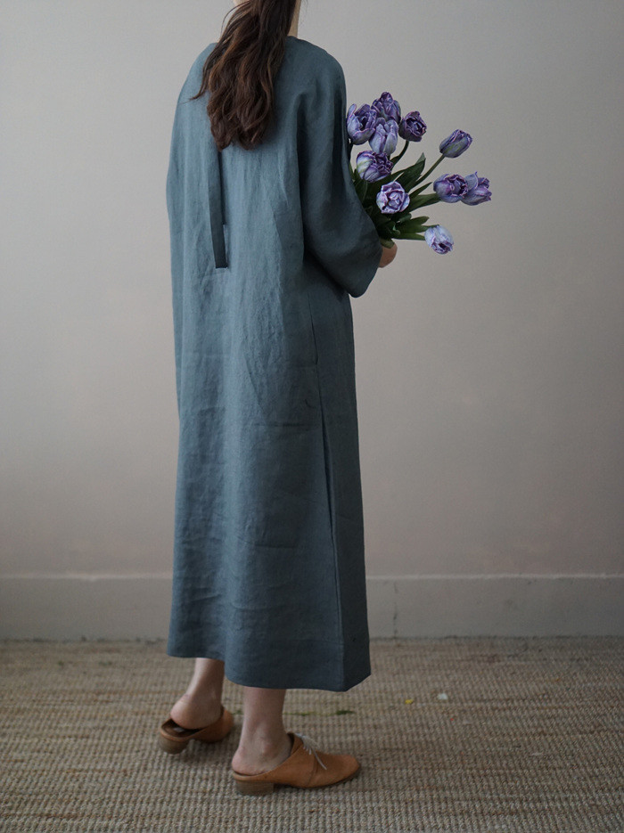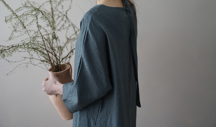 [재입고] 린넨 매듭 원피스, deep green