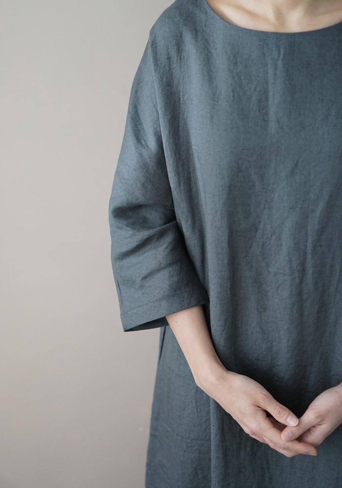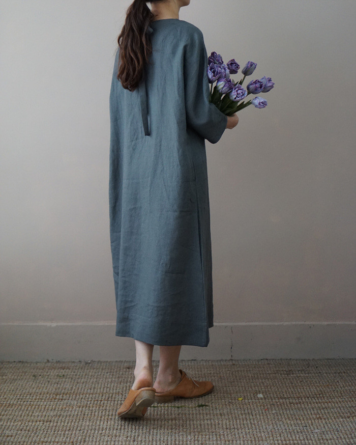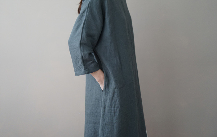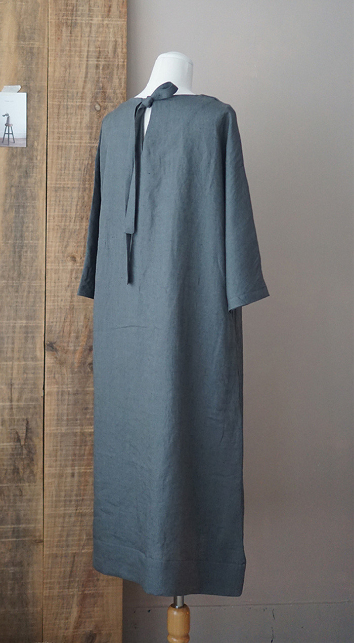 린넨 매듭 원피스, deep green