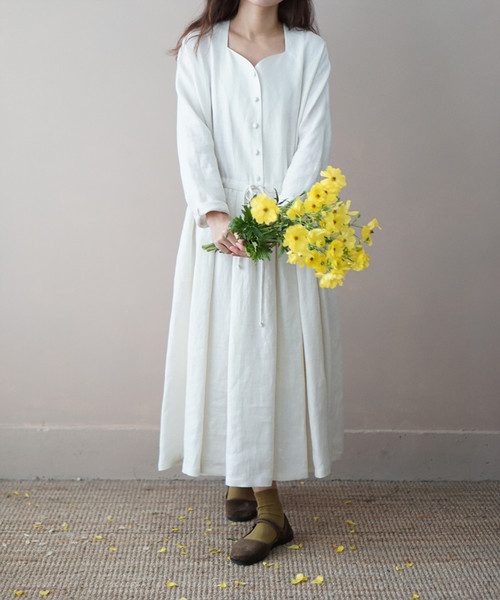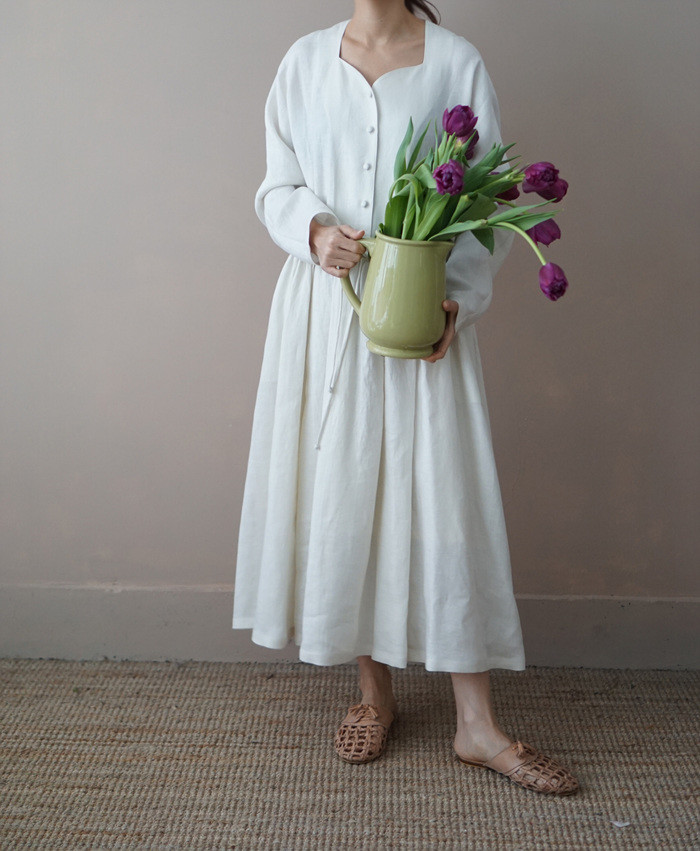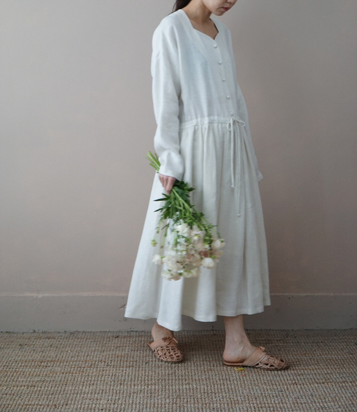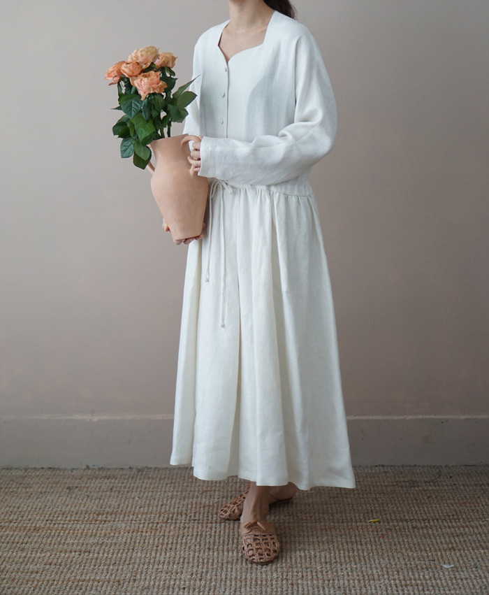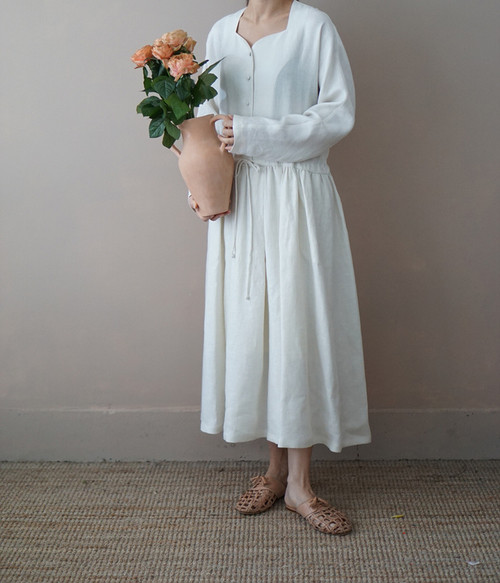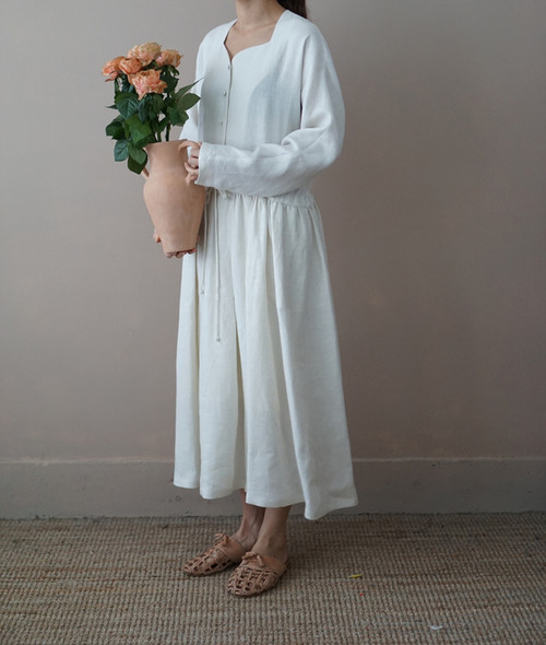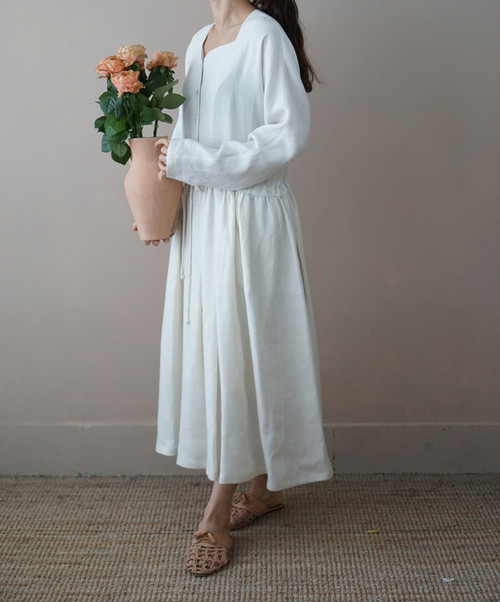 쉘 린넨 원피스, ivory