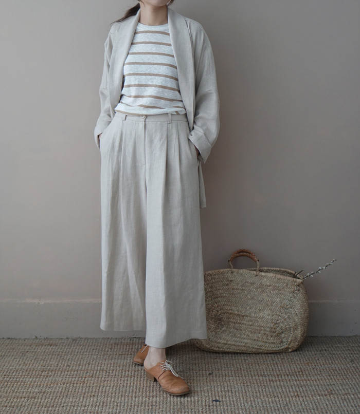 린넨 와이드 팬츠, light beige 와 함께.