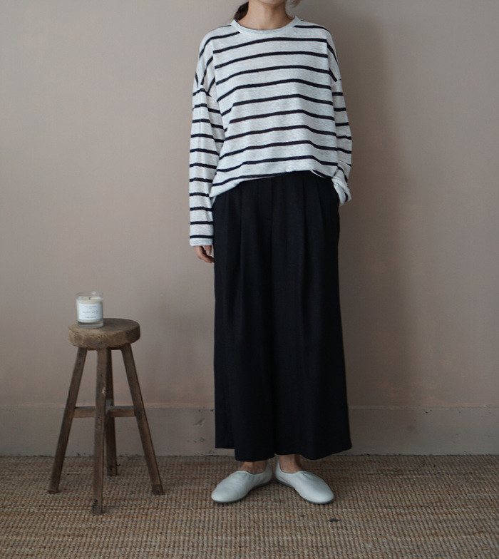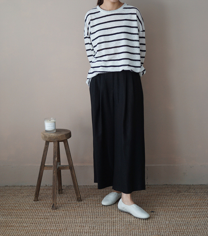 린넨 와이드 팬츠, black 과 함께.