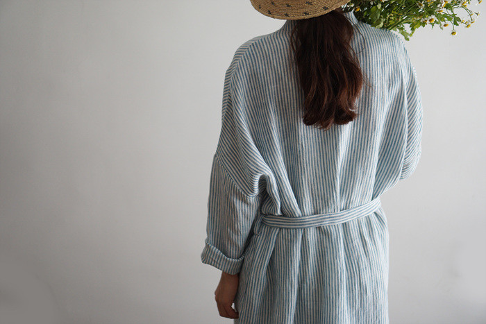 단정히 허리를 묶어 원피스로도,