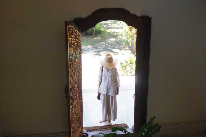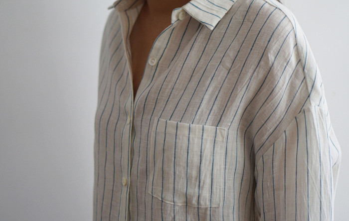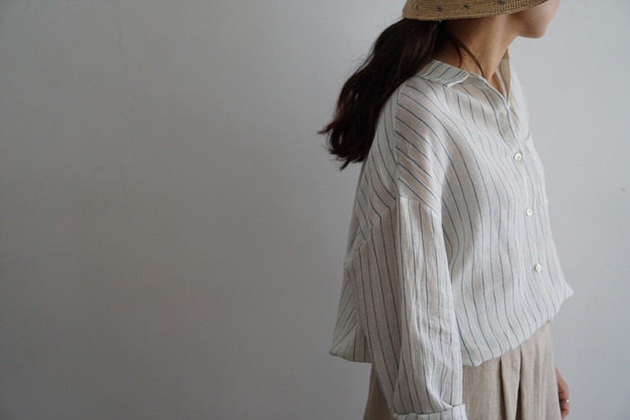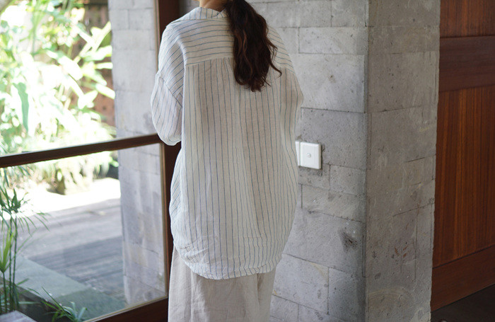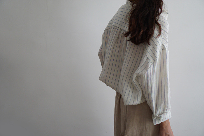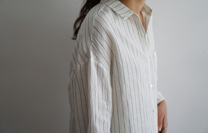 어깨선은 살짝 뒤로 넘겨서 입으시면