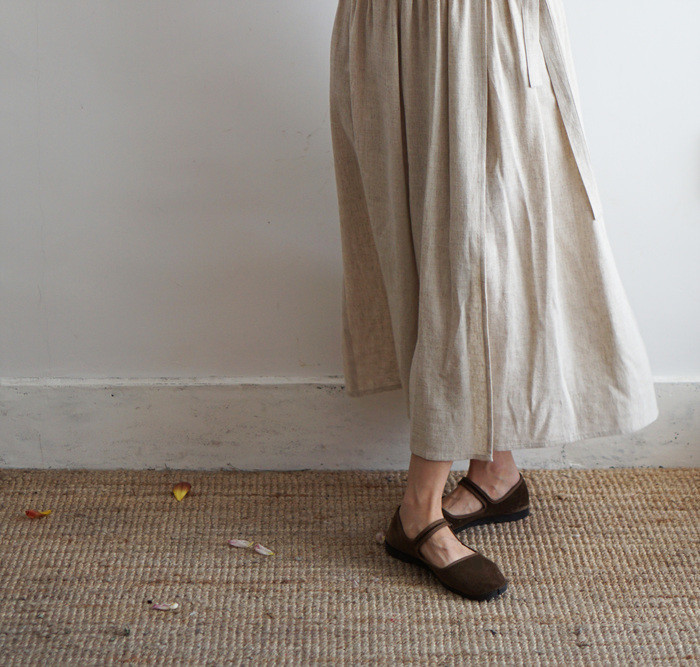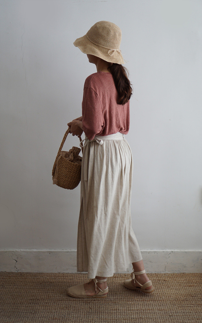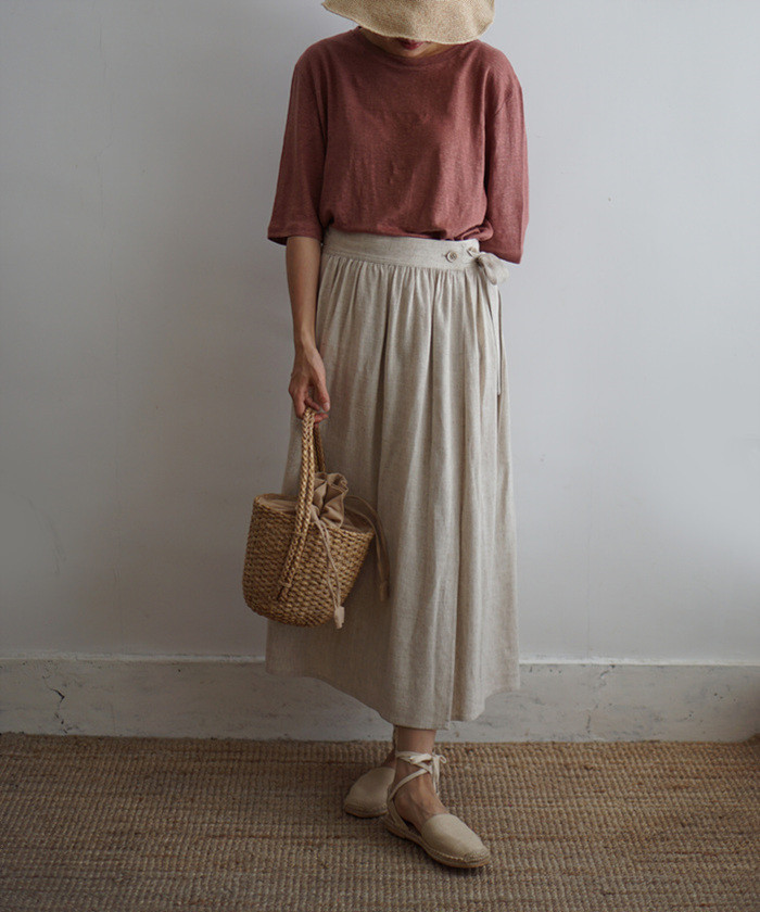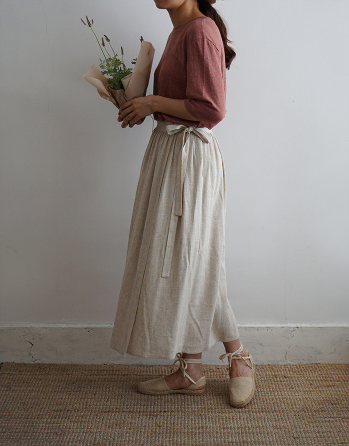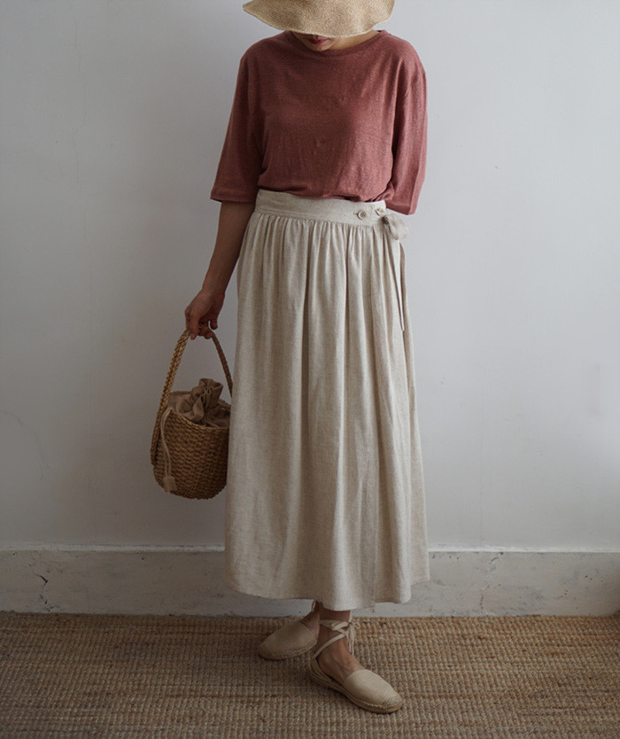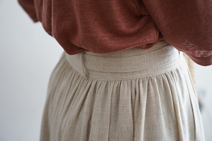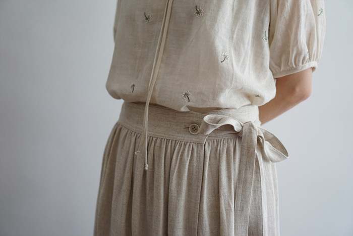 안쪽 옆선과 안쪽으로 여며지는 스커트에