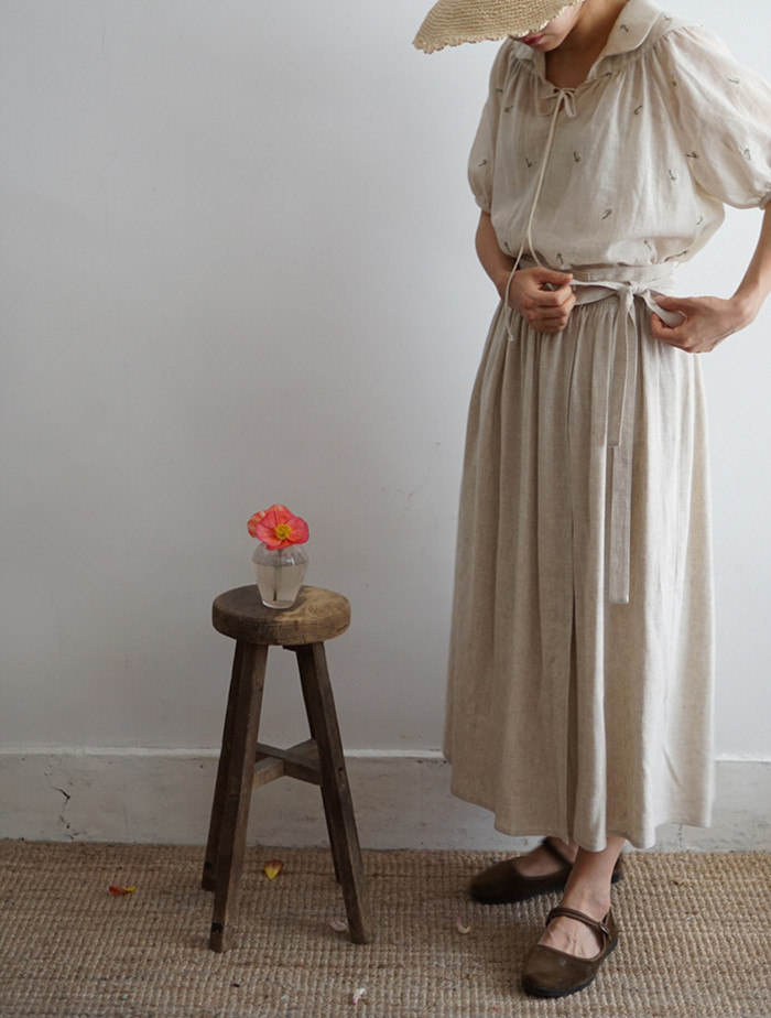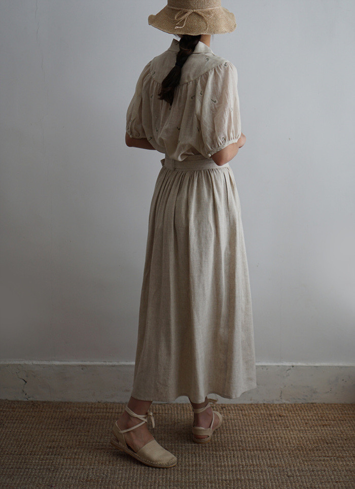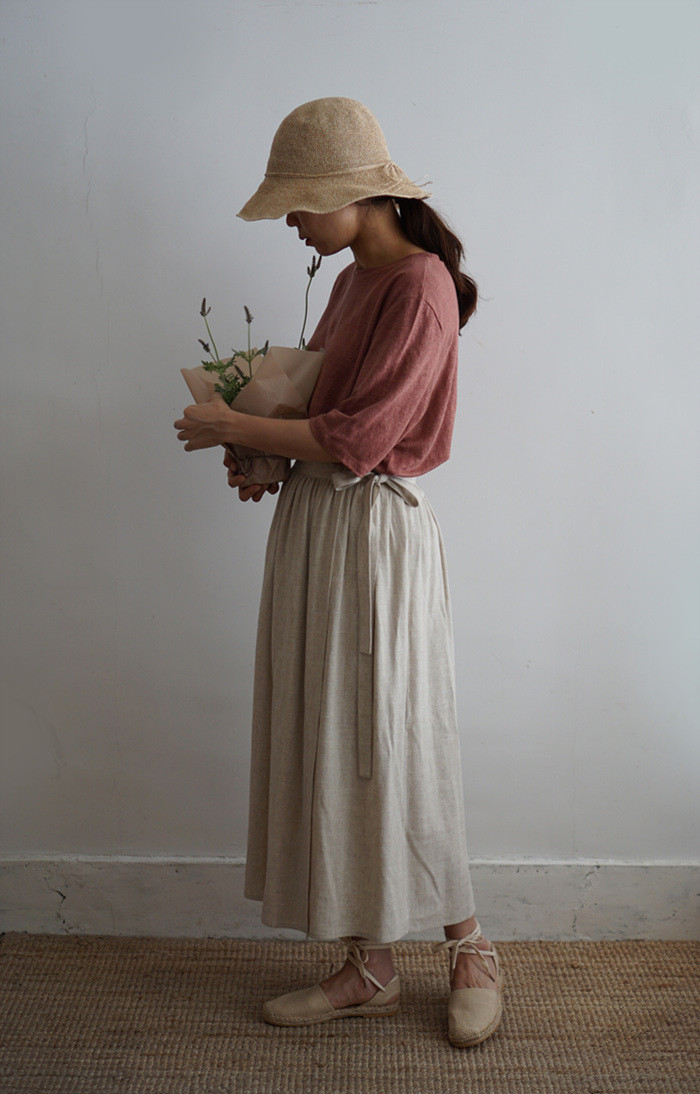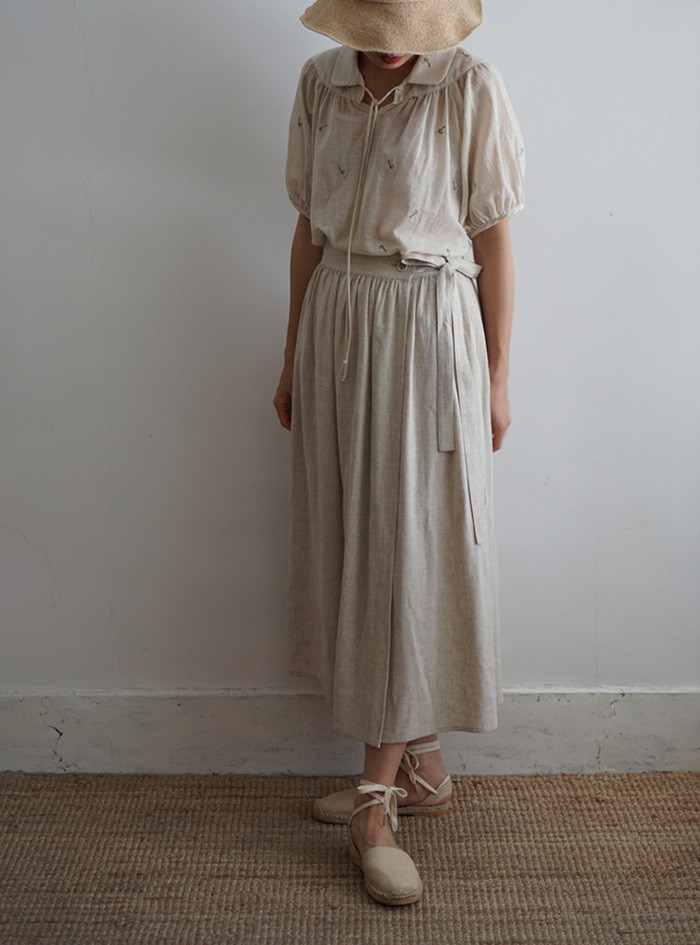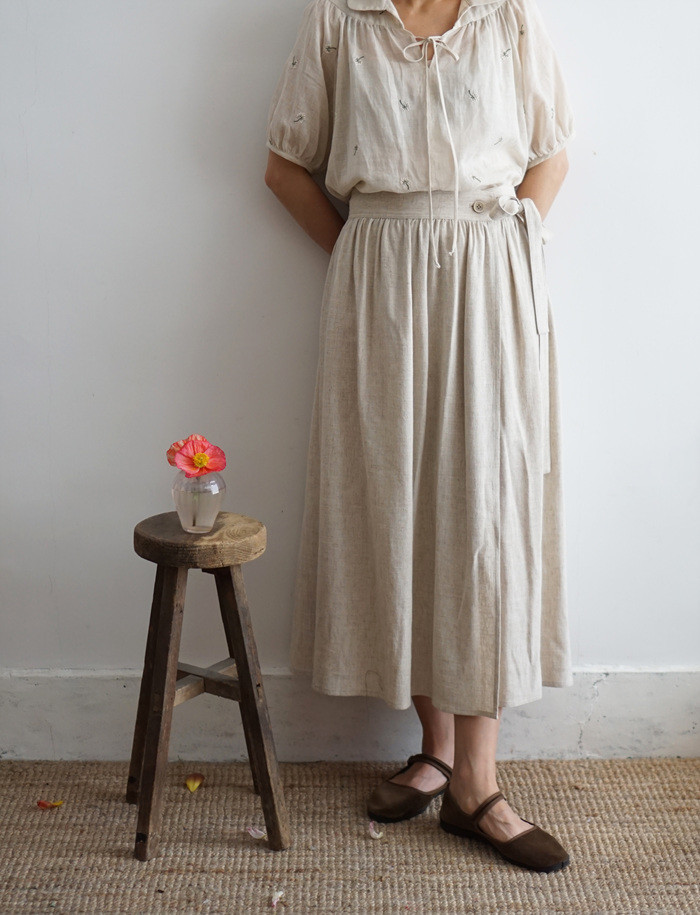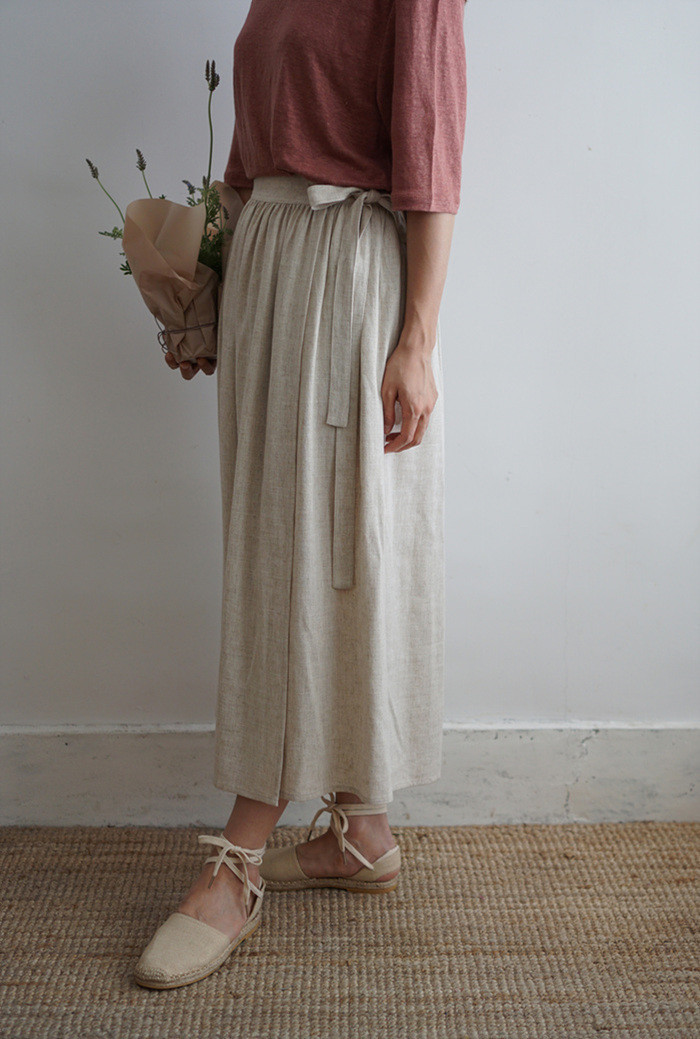 안쪽 옆선과 안쪽으로 여며지는 스커트에