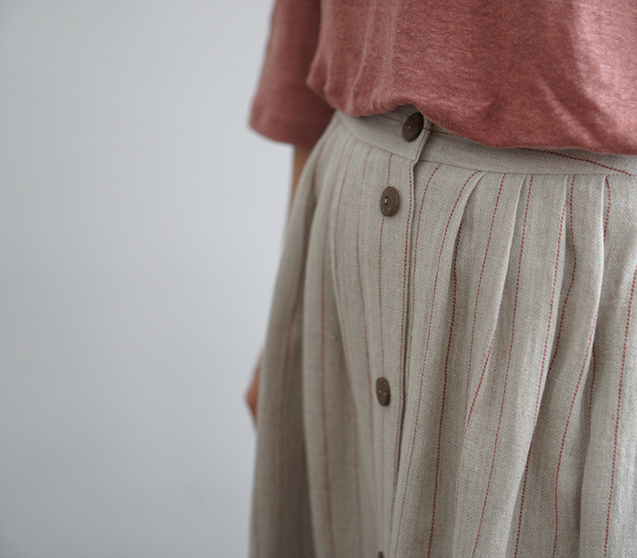 앞은 깔끔한 허리밴드에 단추여밈으로,