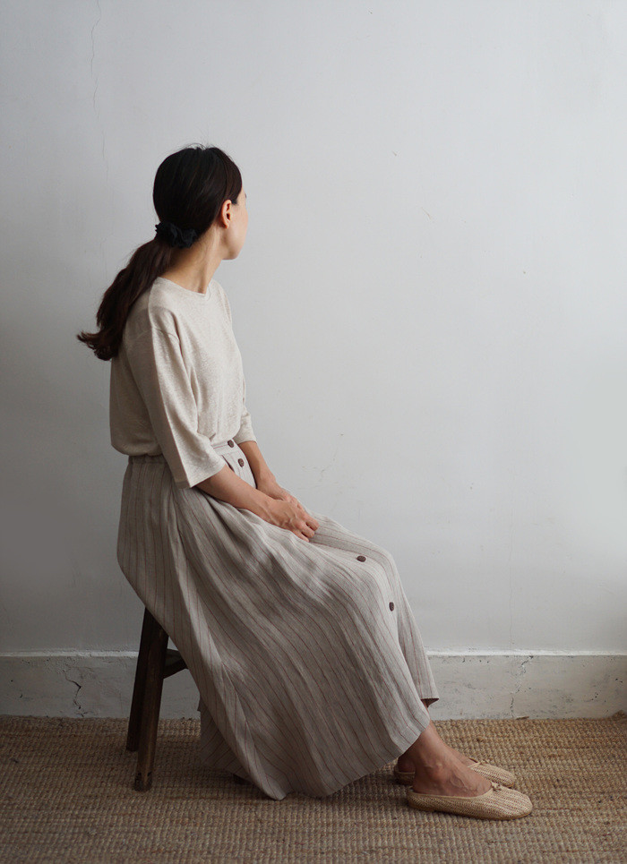 걸을 때에 밑단이 살랑 살랑 움직일 거에요.