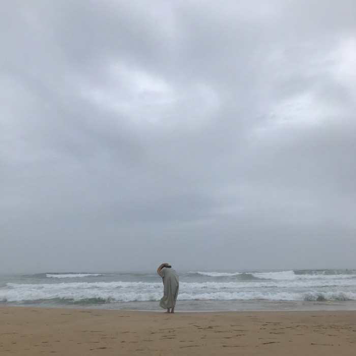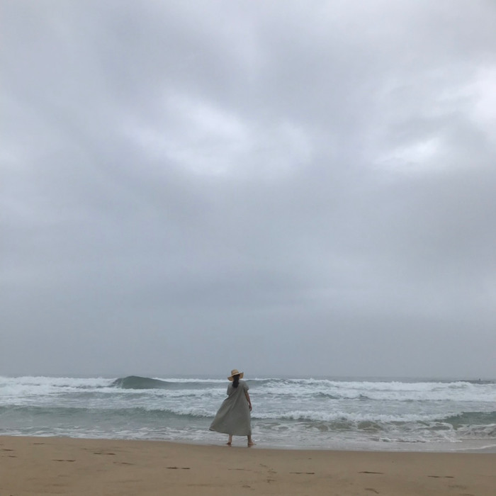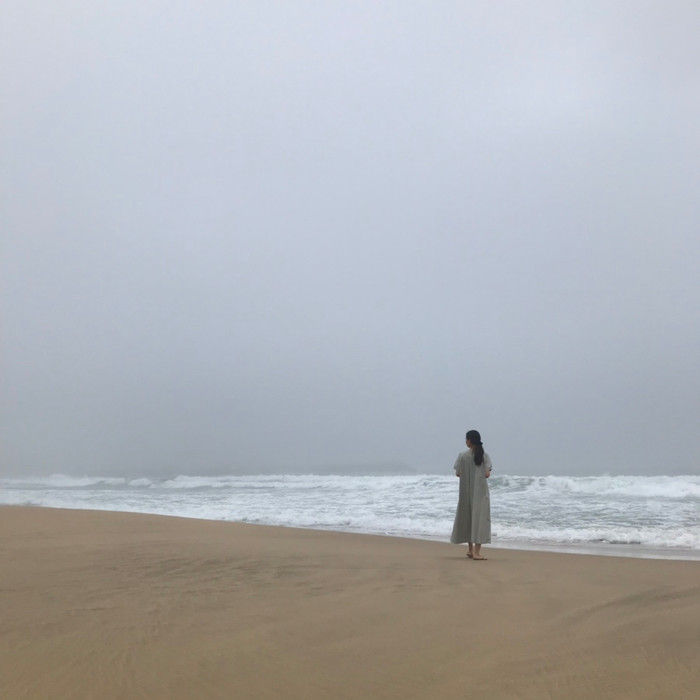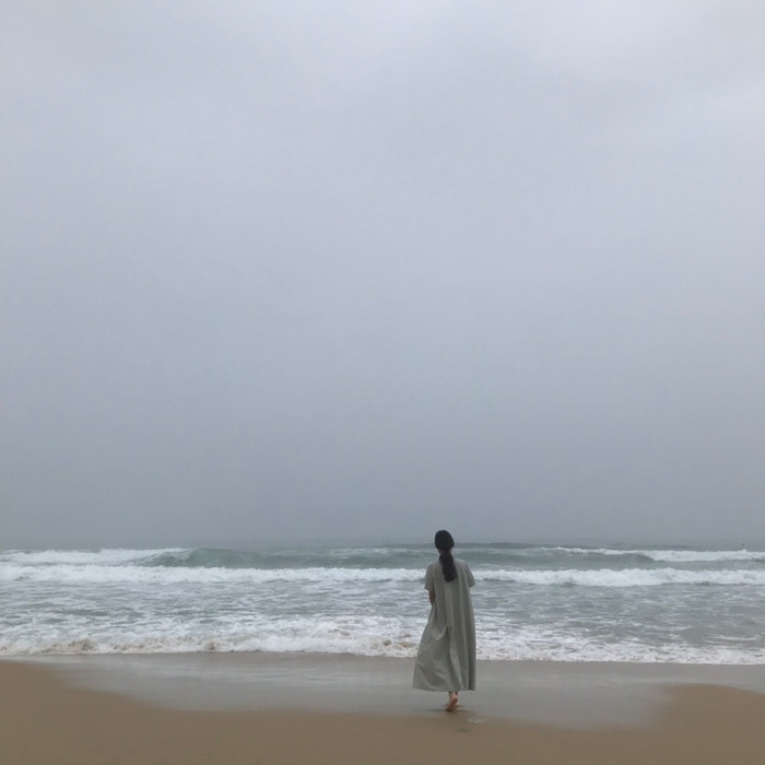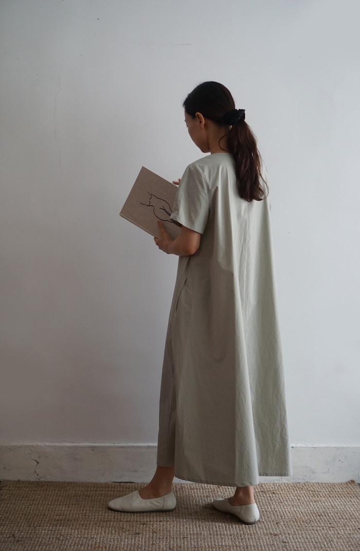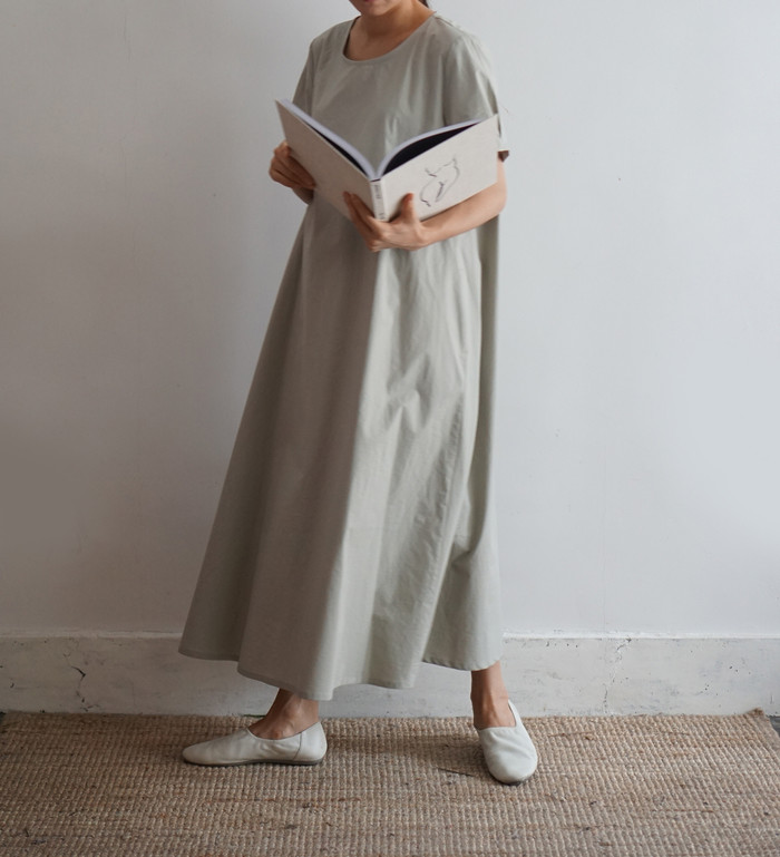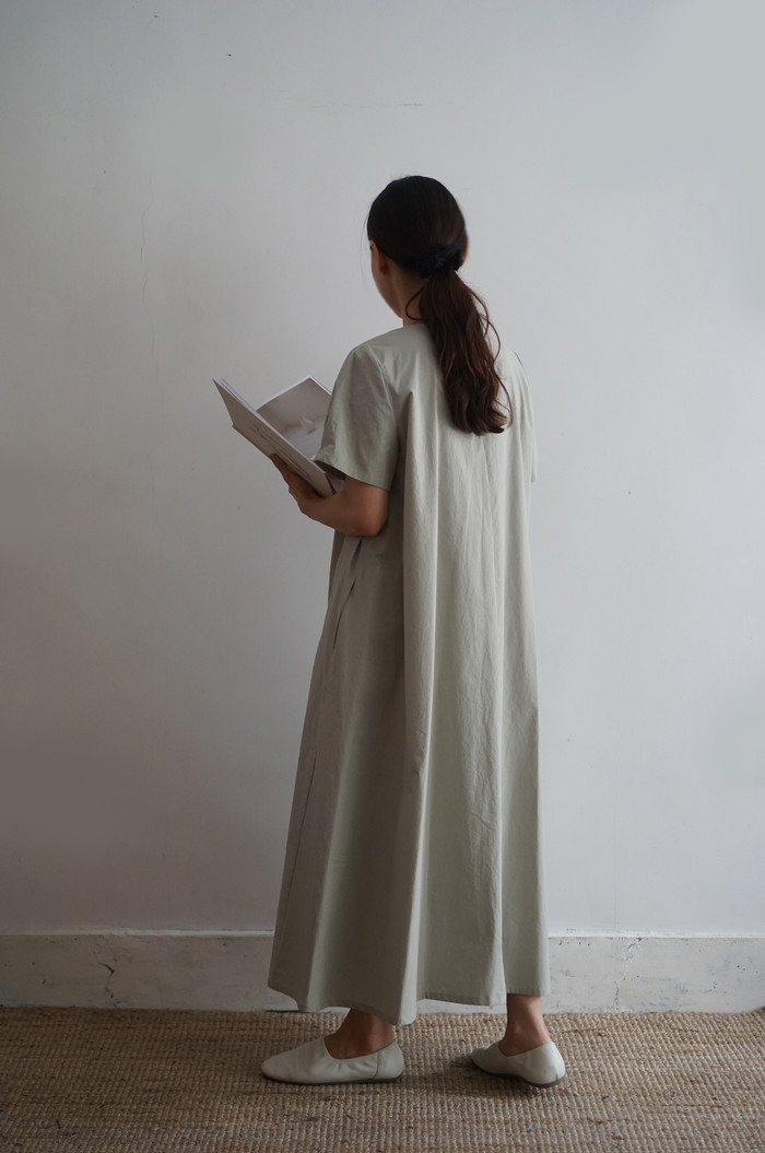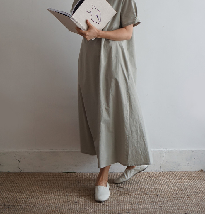 잘 어울리는 옅은 민트빛 여백 원피스.