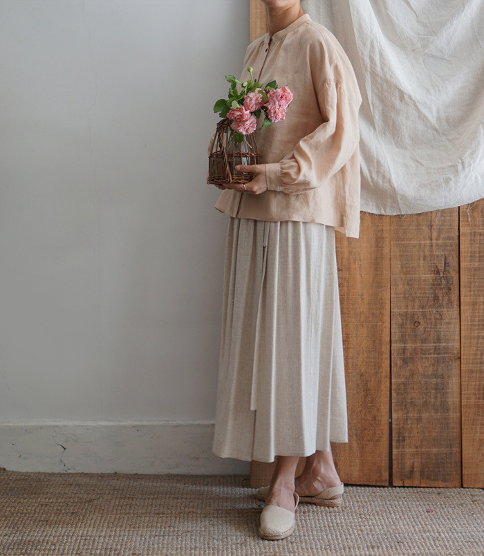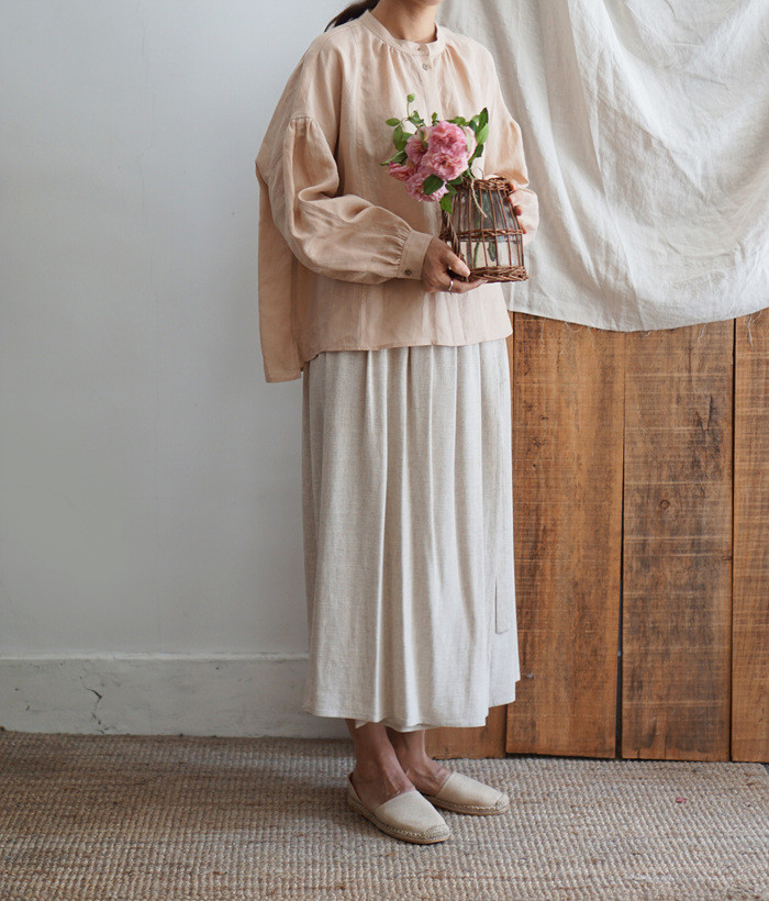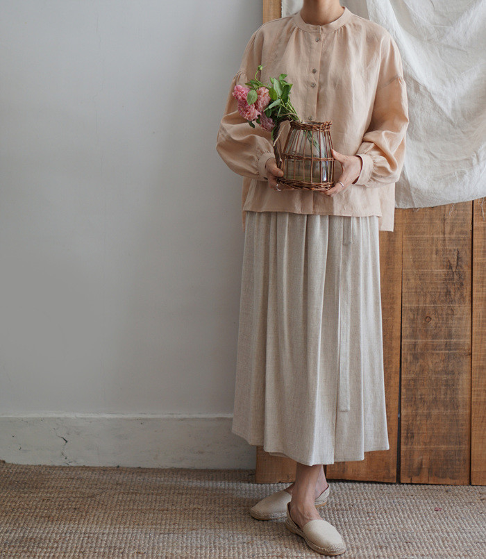 플레어 랩스커트,oatmeal 컬러와 함께.