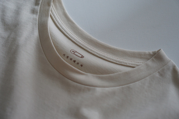 목을 감싸주는 라운드 넥이에요.
