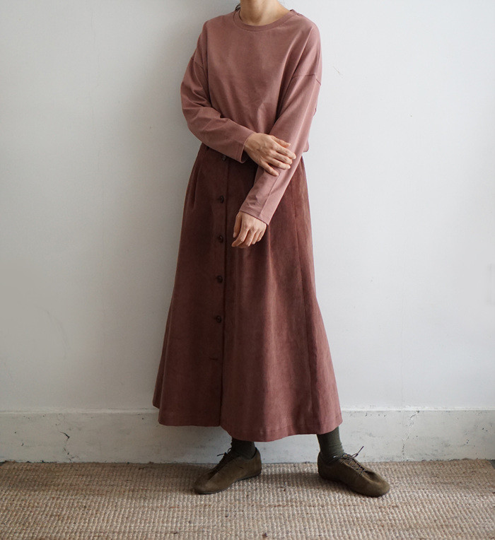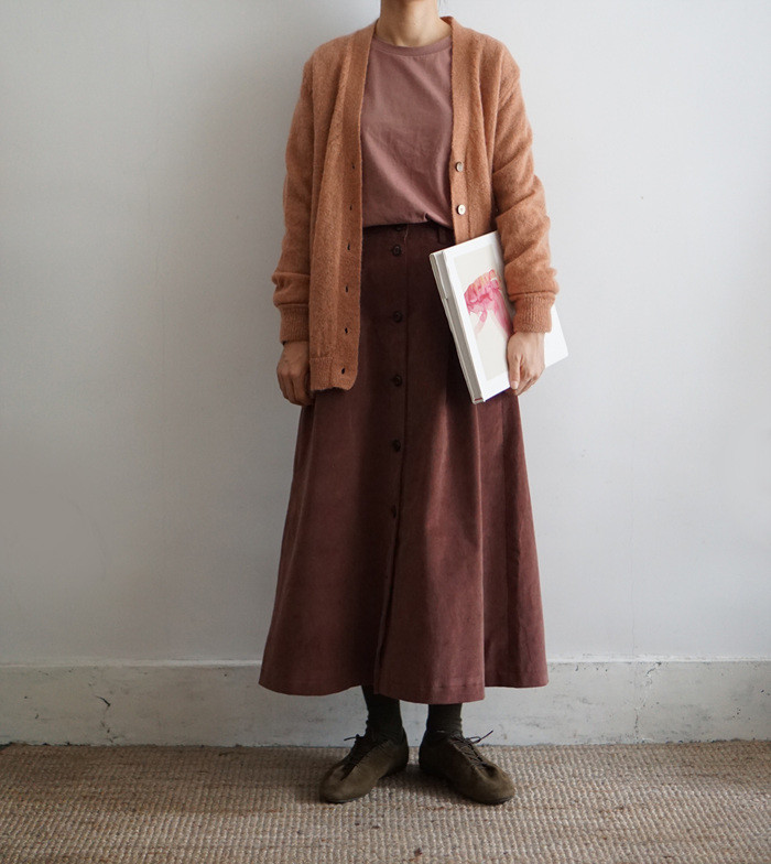 조금 짙은 브릭 컬러의 스커트와.