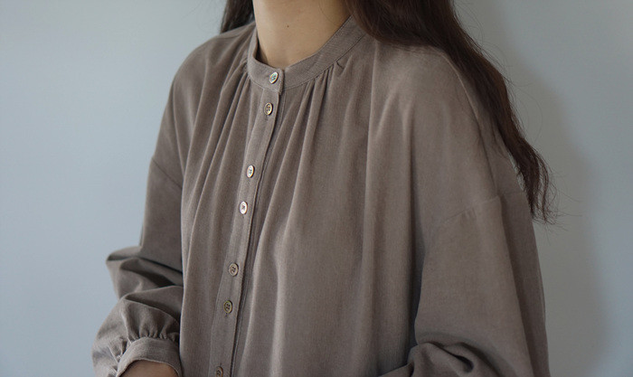 넥라인, 소매, 허리선에 잔잔한 셔링이