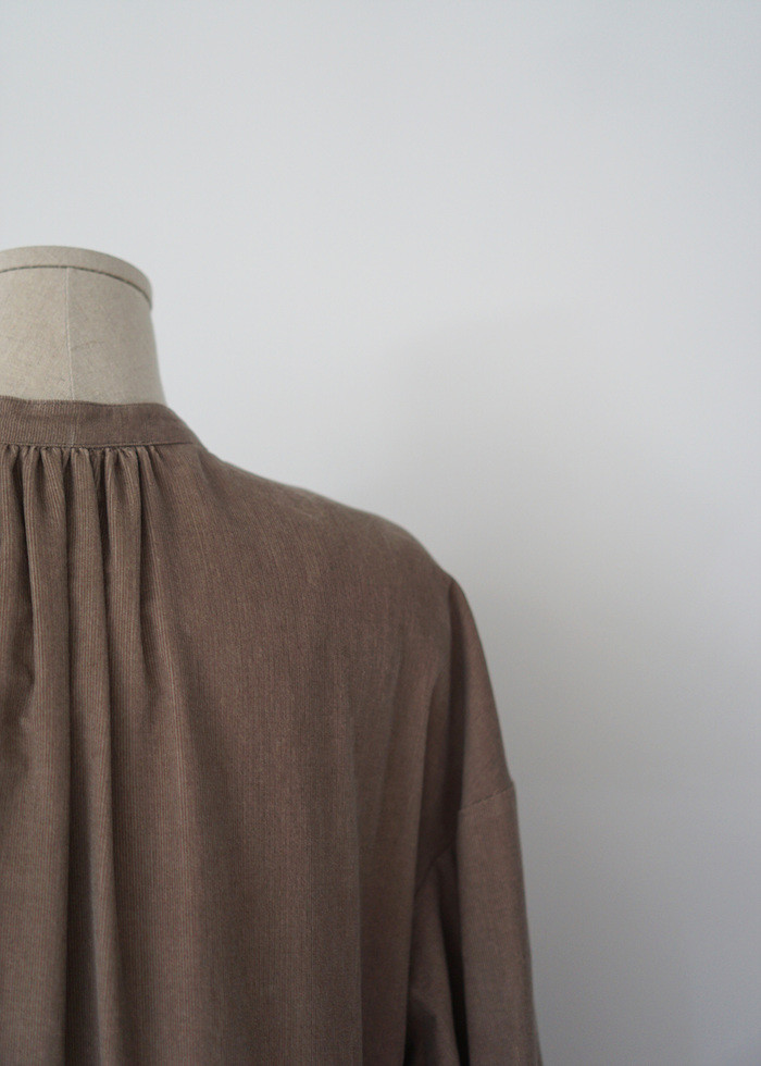 목선을 따라 앞/ 뒤에 셔링이 잡혀있습니다.