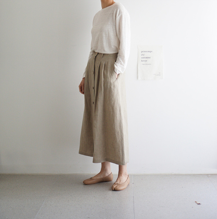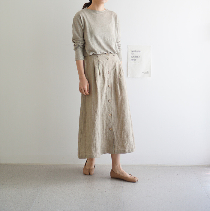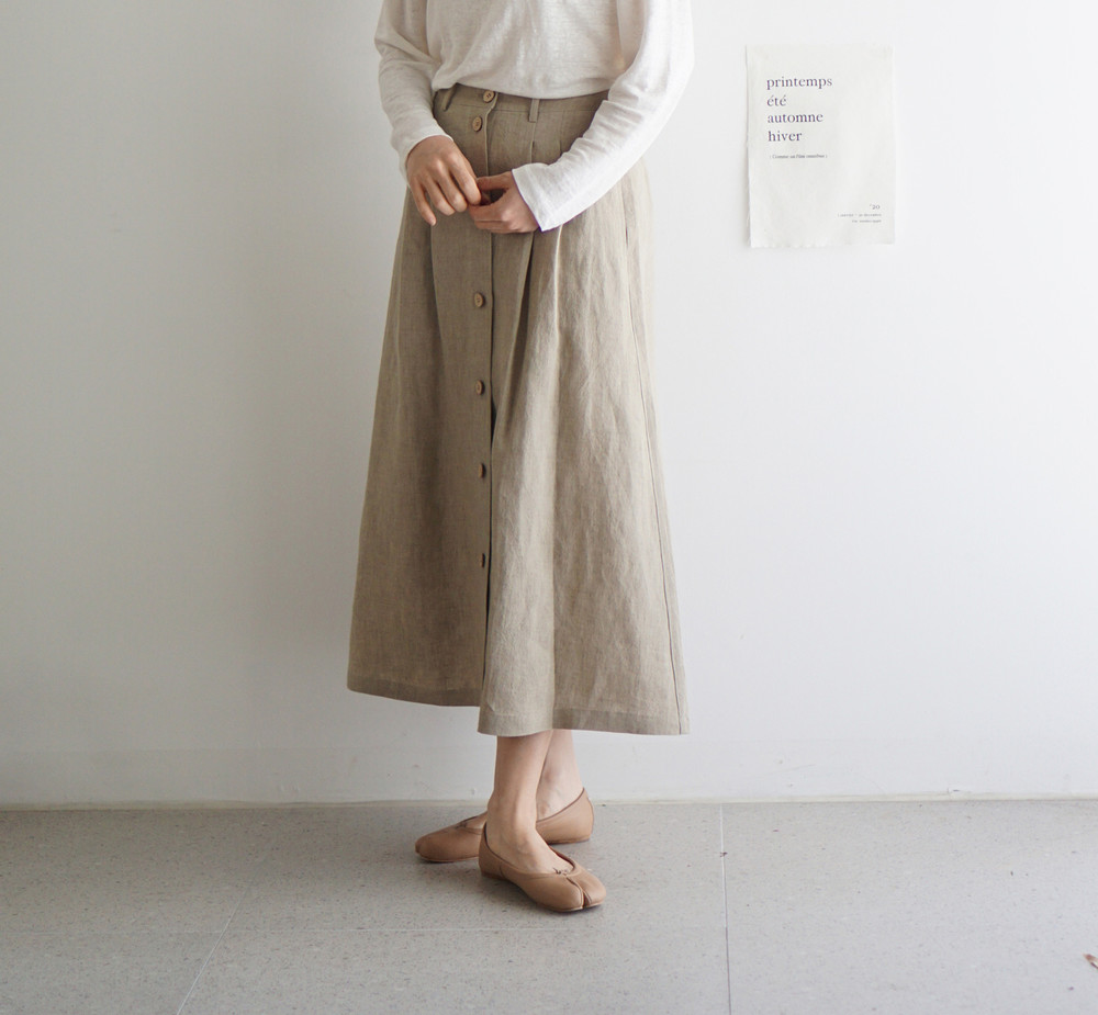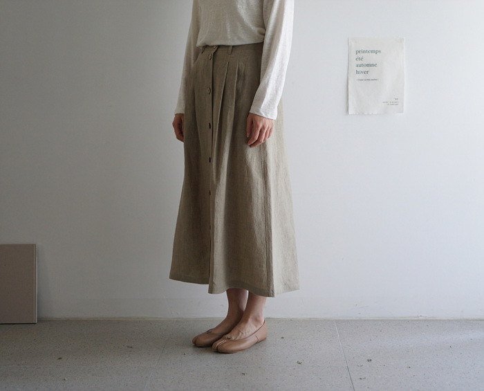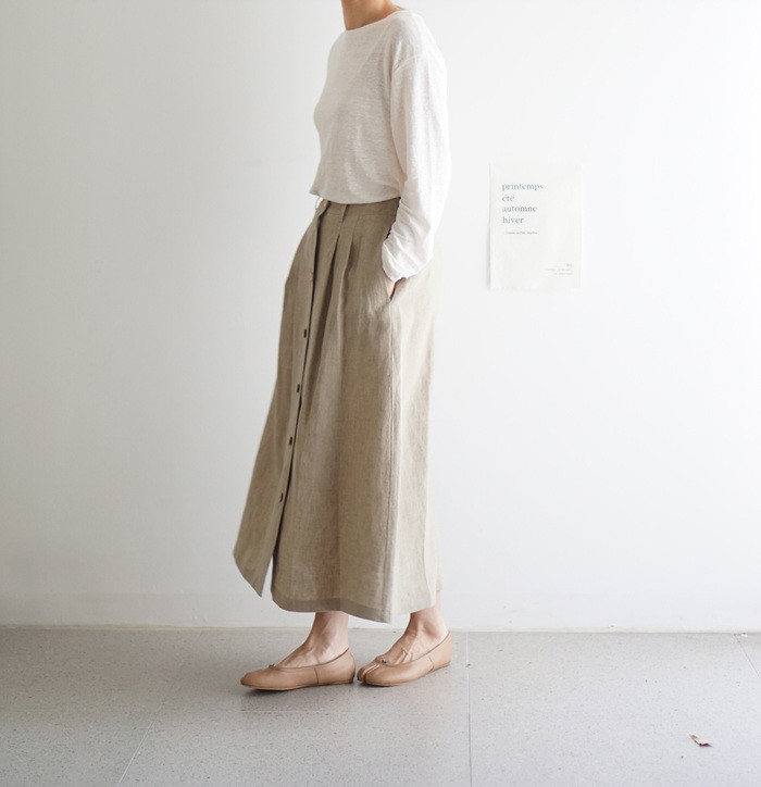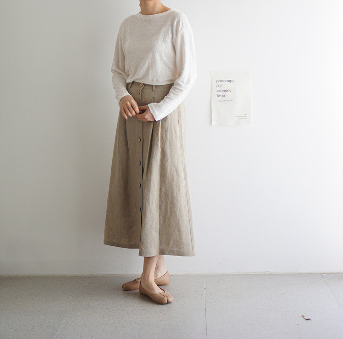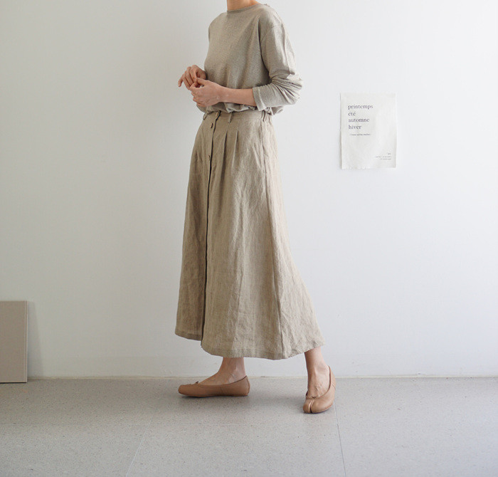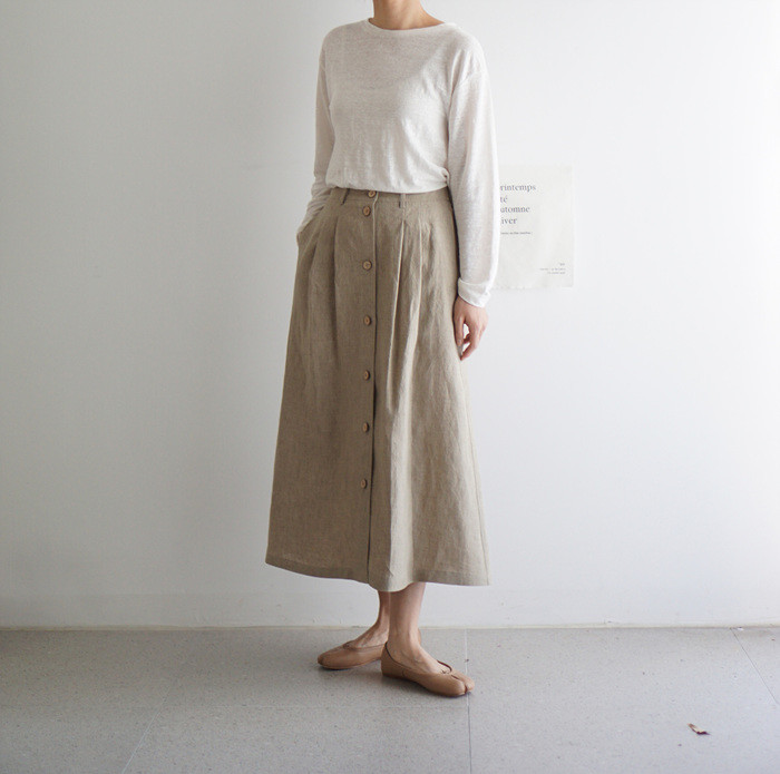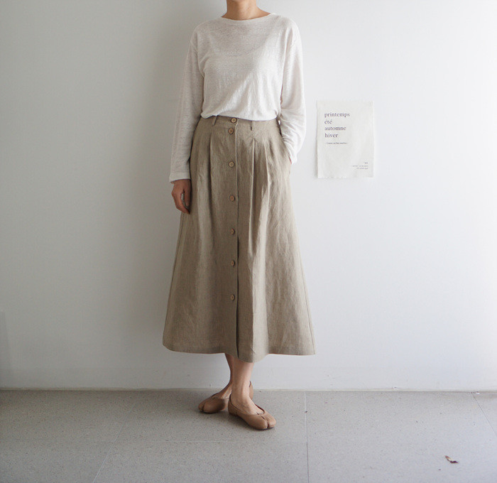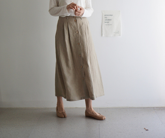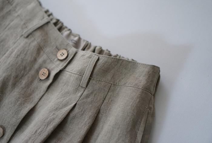 앞은 깔끔한 허리밴드에 단추여밈으로,