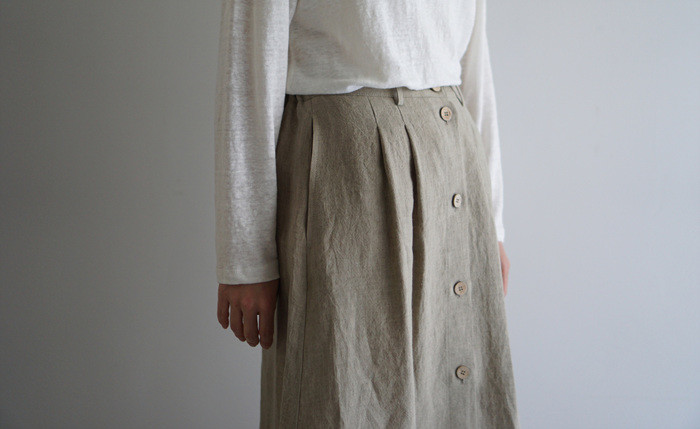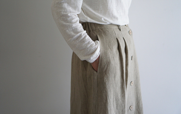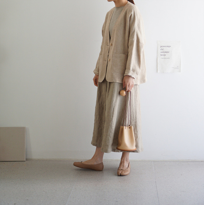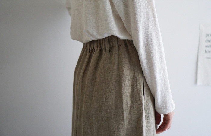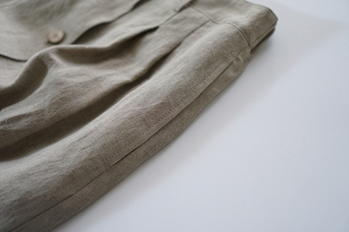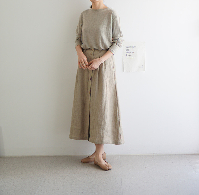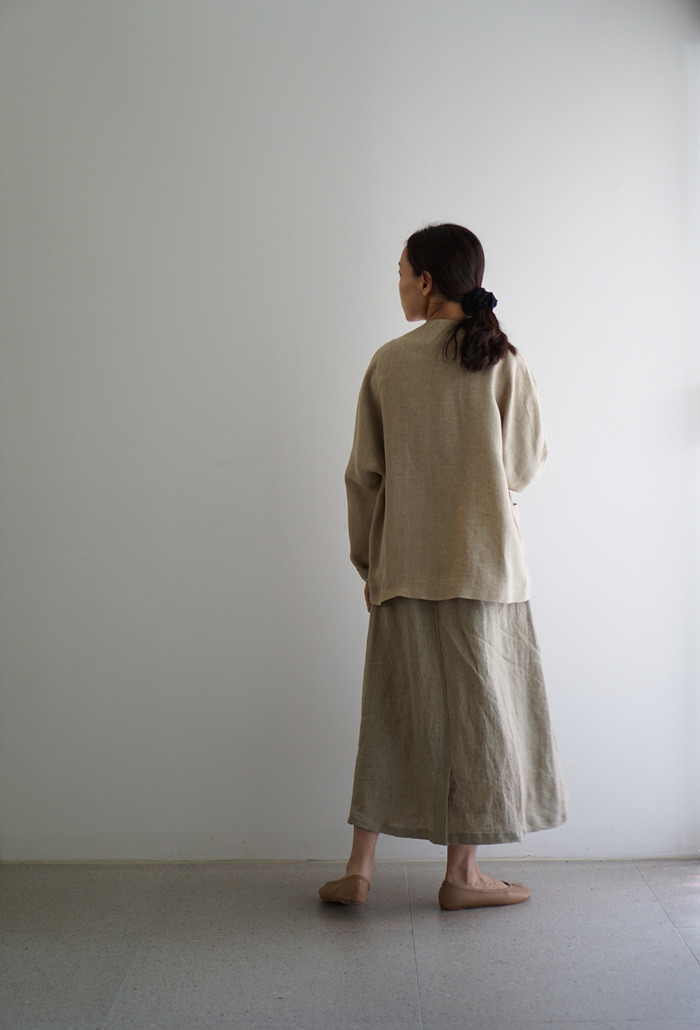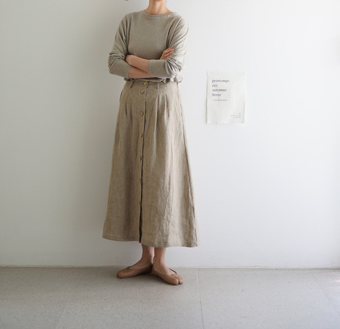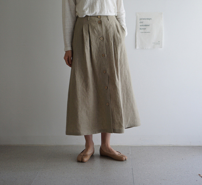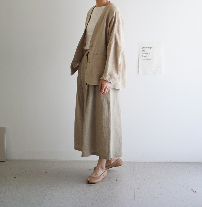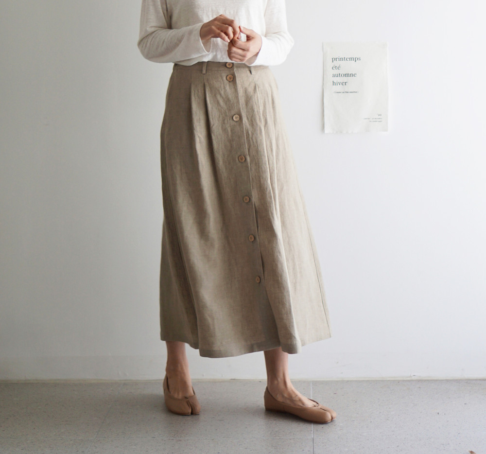 앞은 깔끔한 허리밴드에 단추여밈으로,