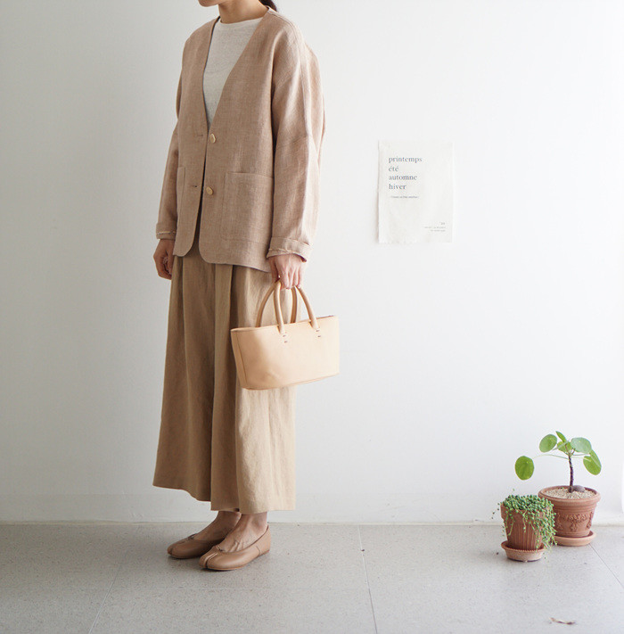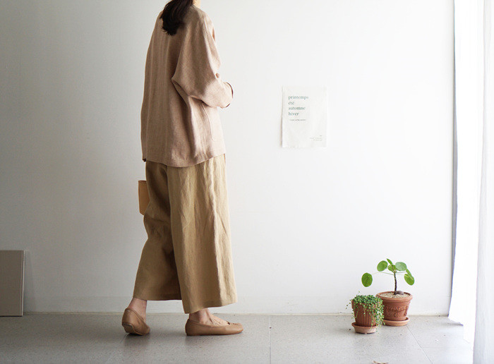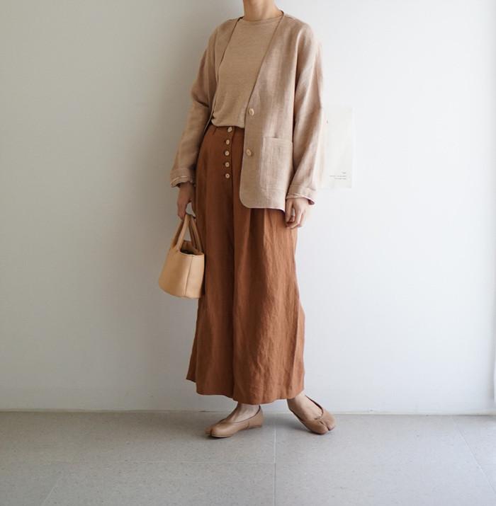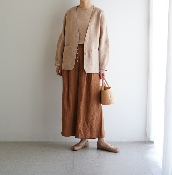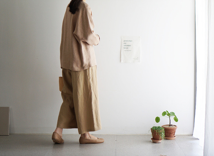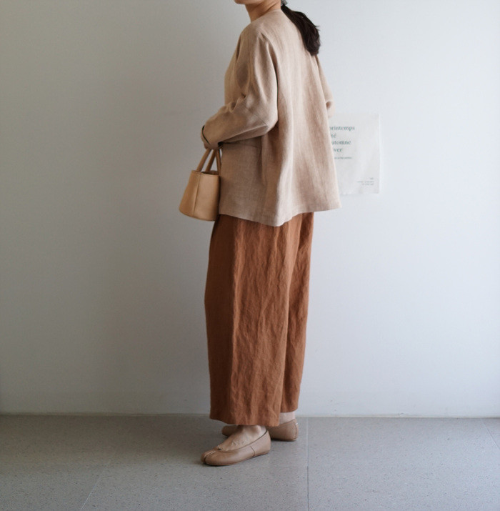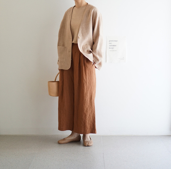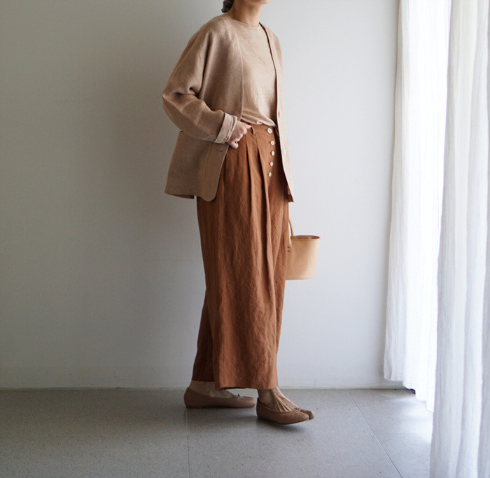 린넨와이드팬츠, brick 과 함께.