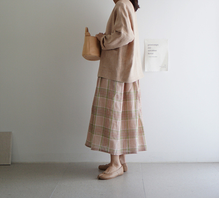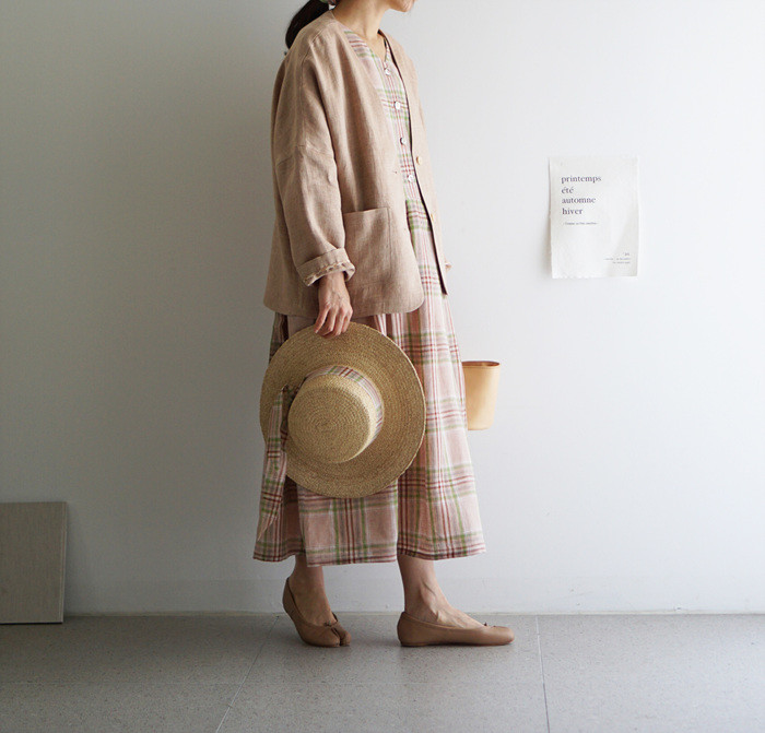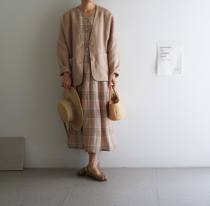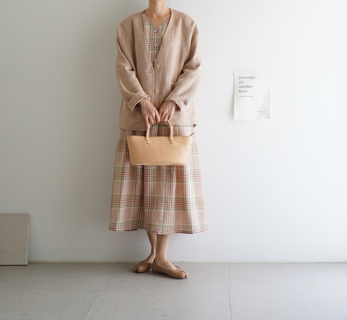 앤 린넨 원피스, rose check와 함께.