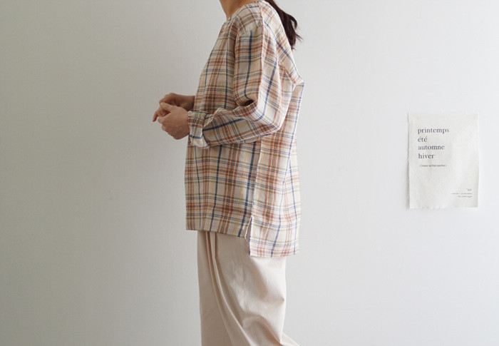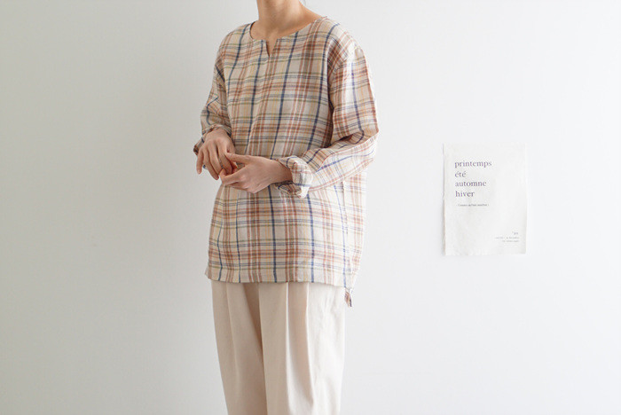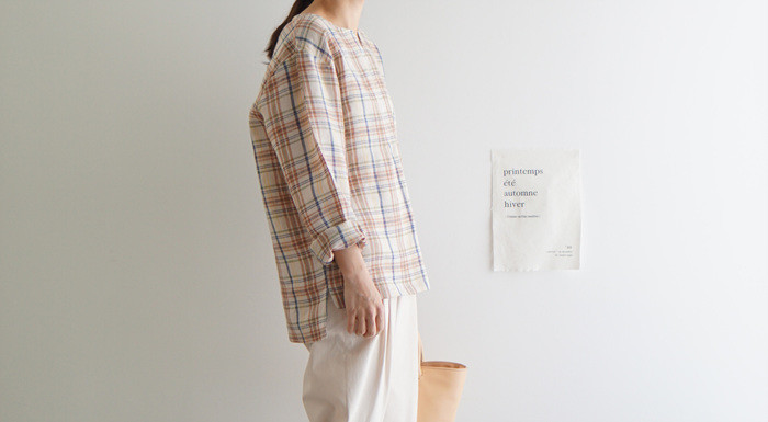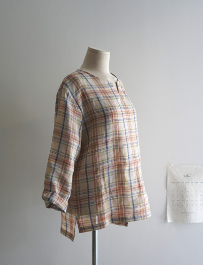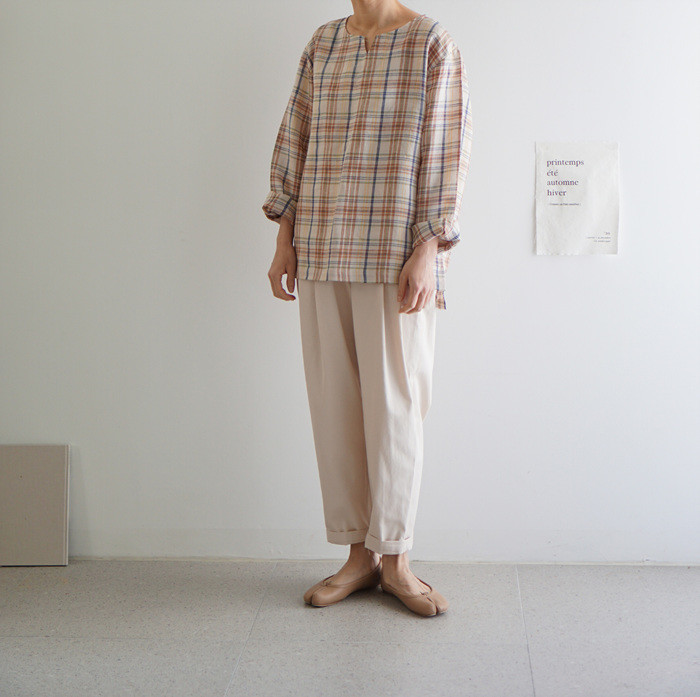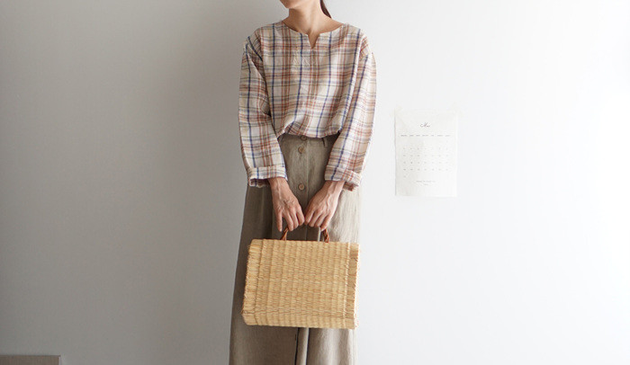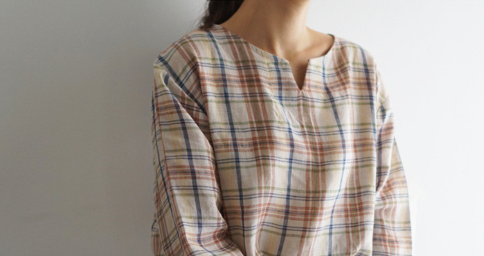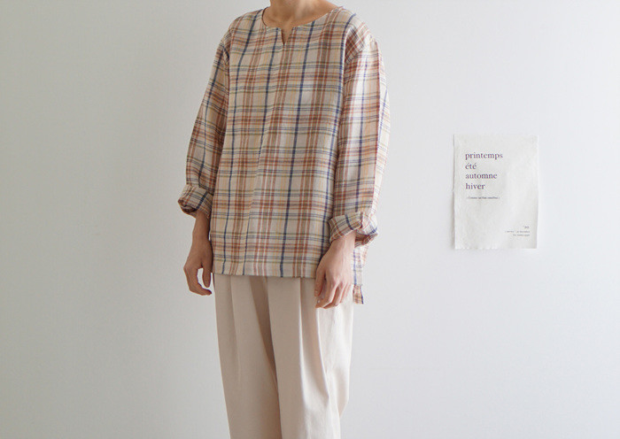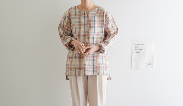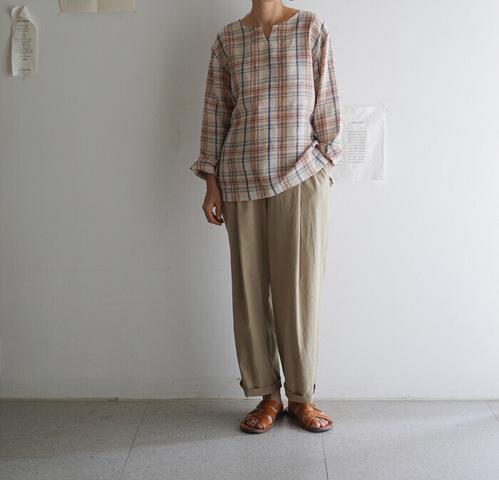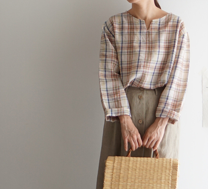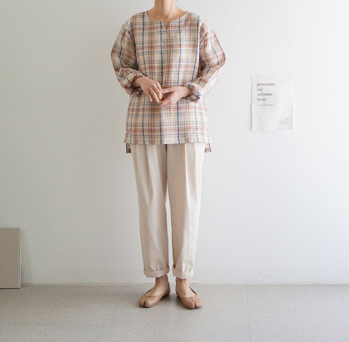[ 재입고] 린넨 슬릿 블라우스, multi check
