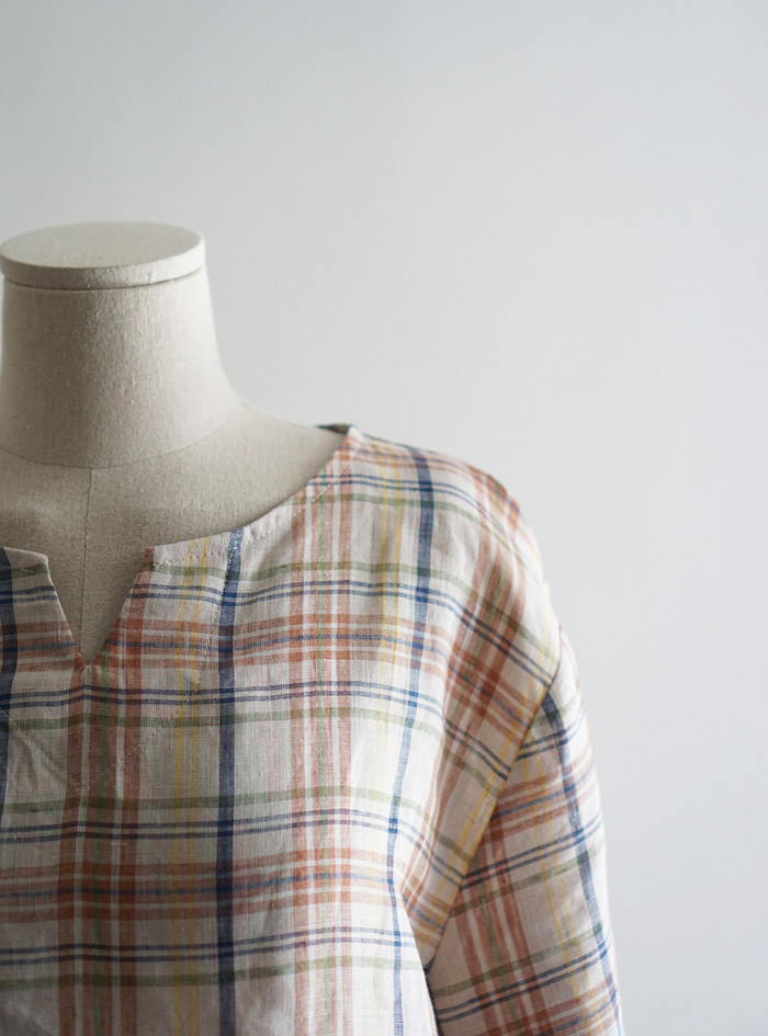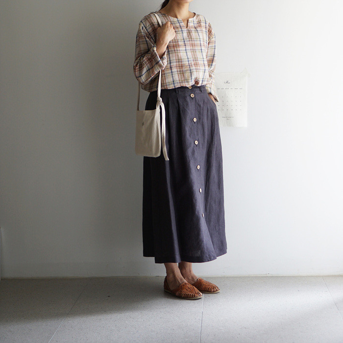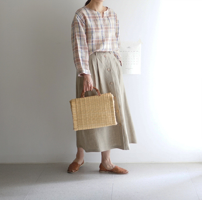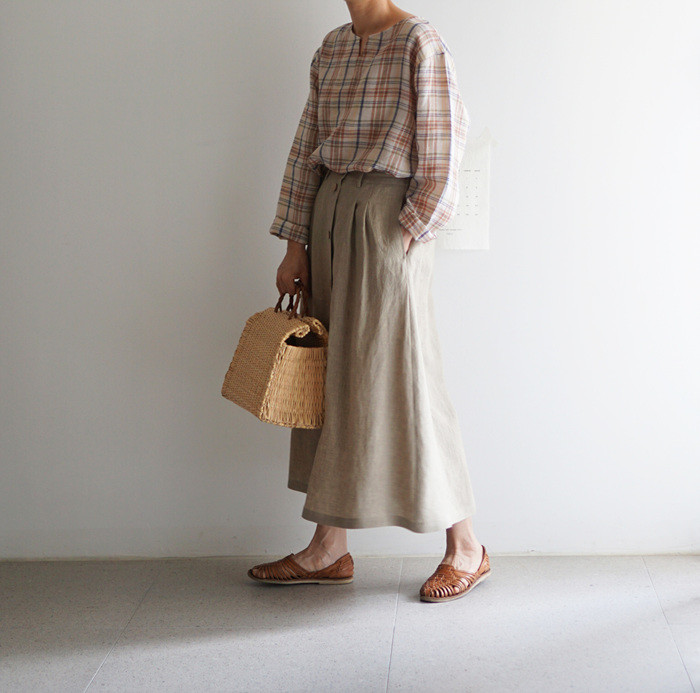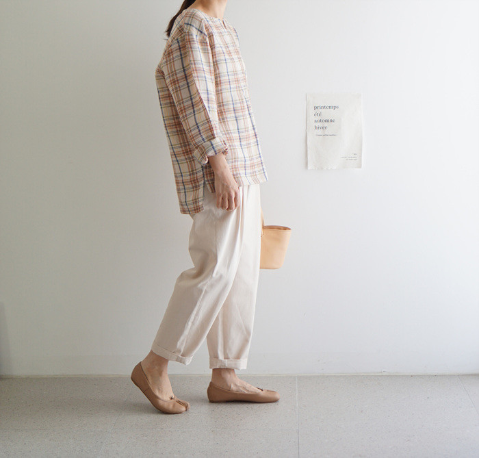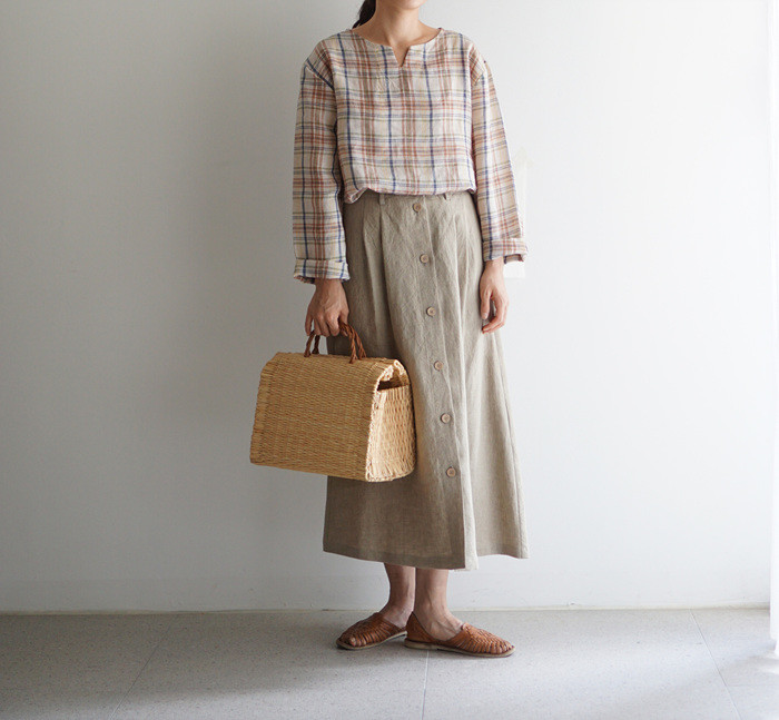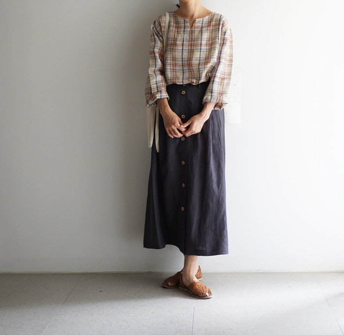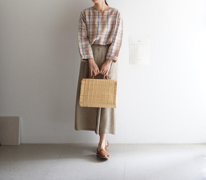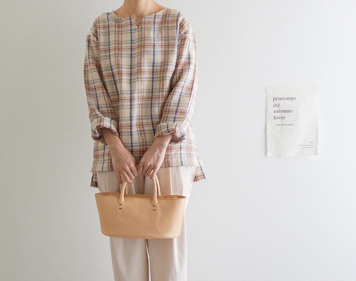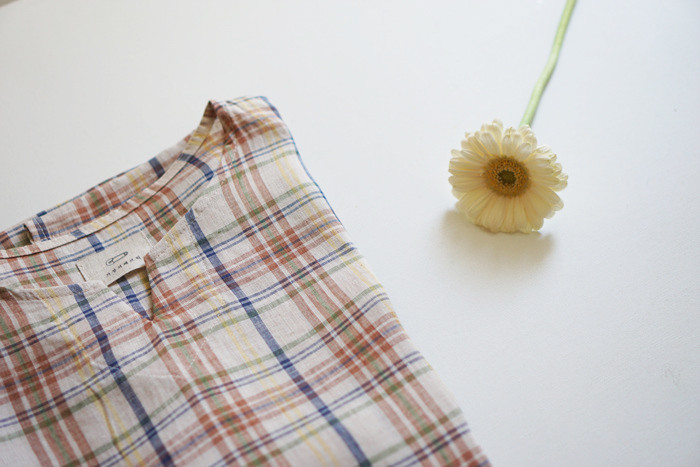 [ 재입고] 린넨 슬릿 블라우스, multi check