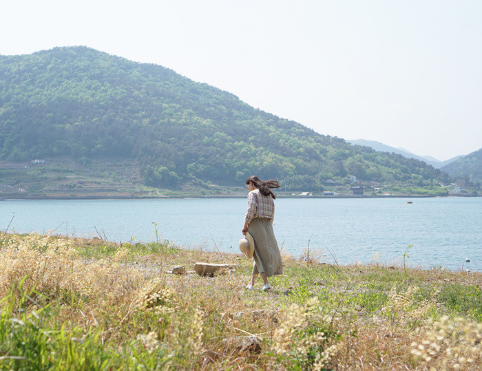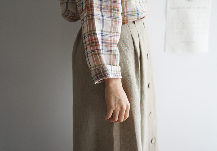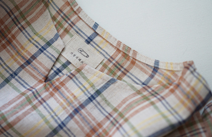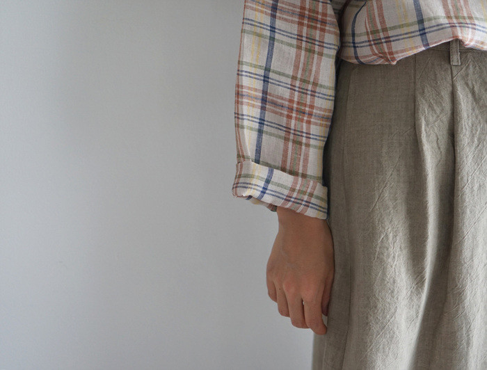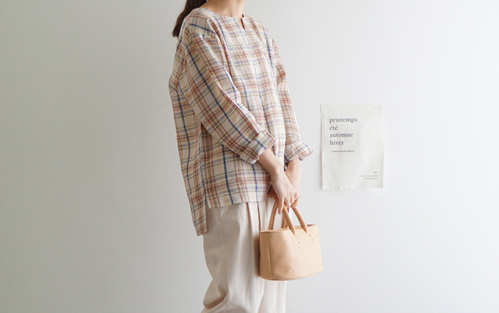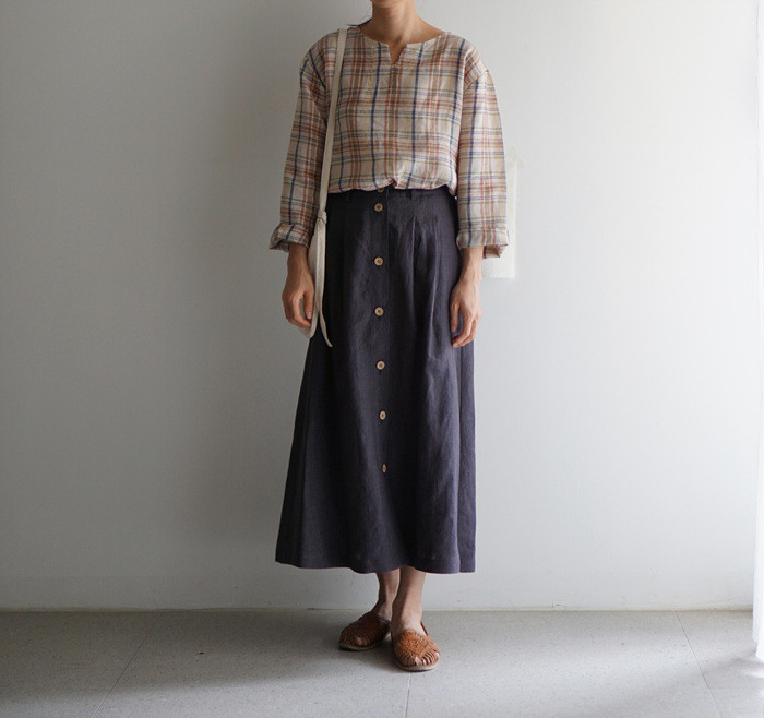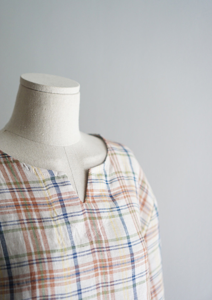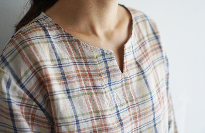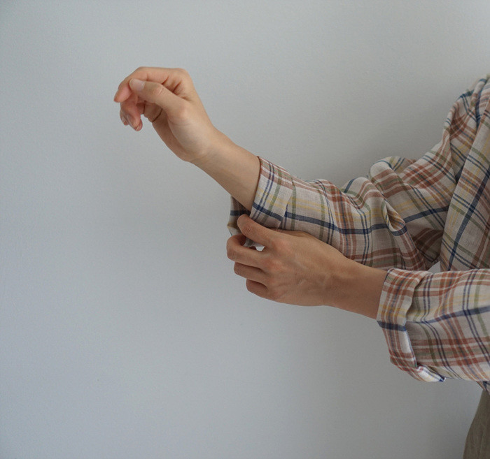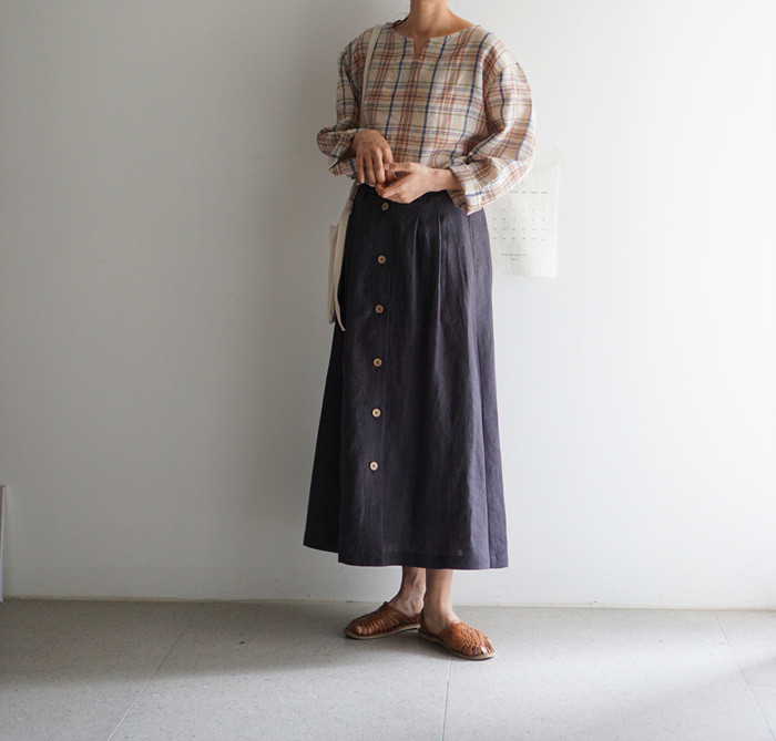 [ 재입고] 린넨 슬릿 블라우스, multi check