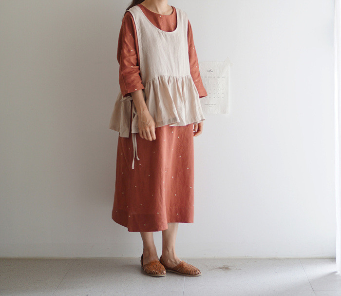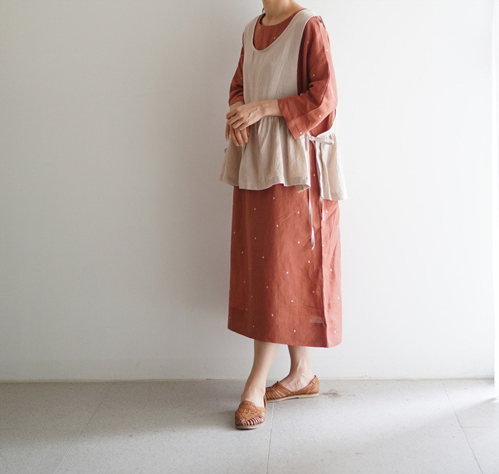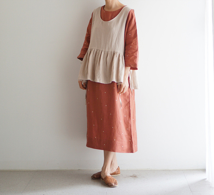 비슷한 컬러로 밑단에 자수로 놓여져 있습니다.